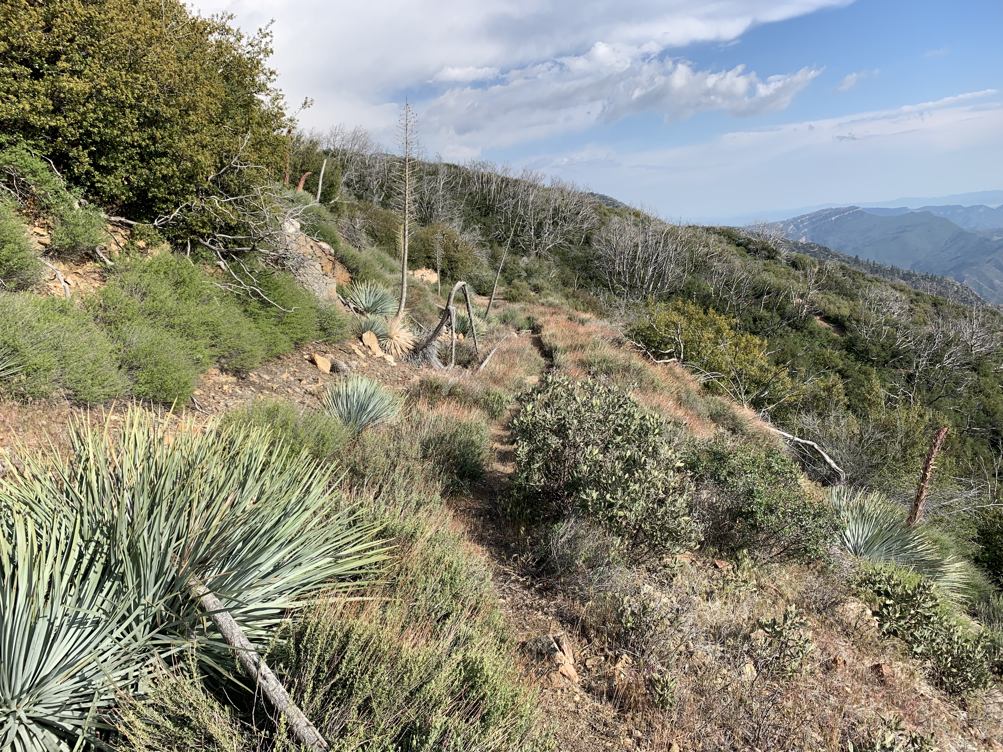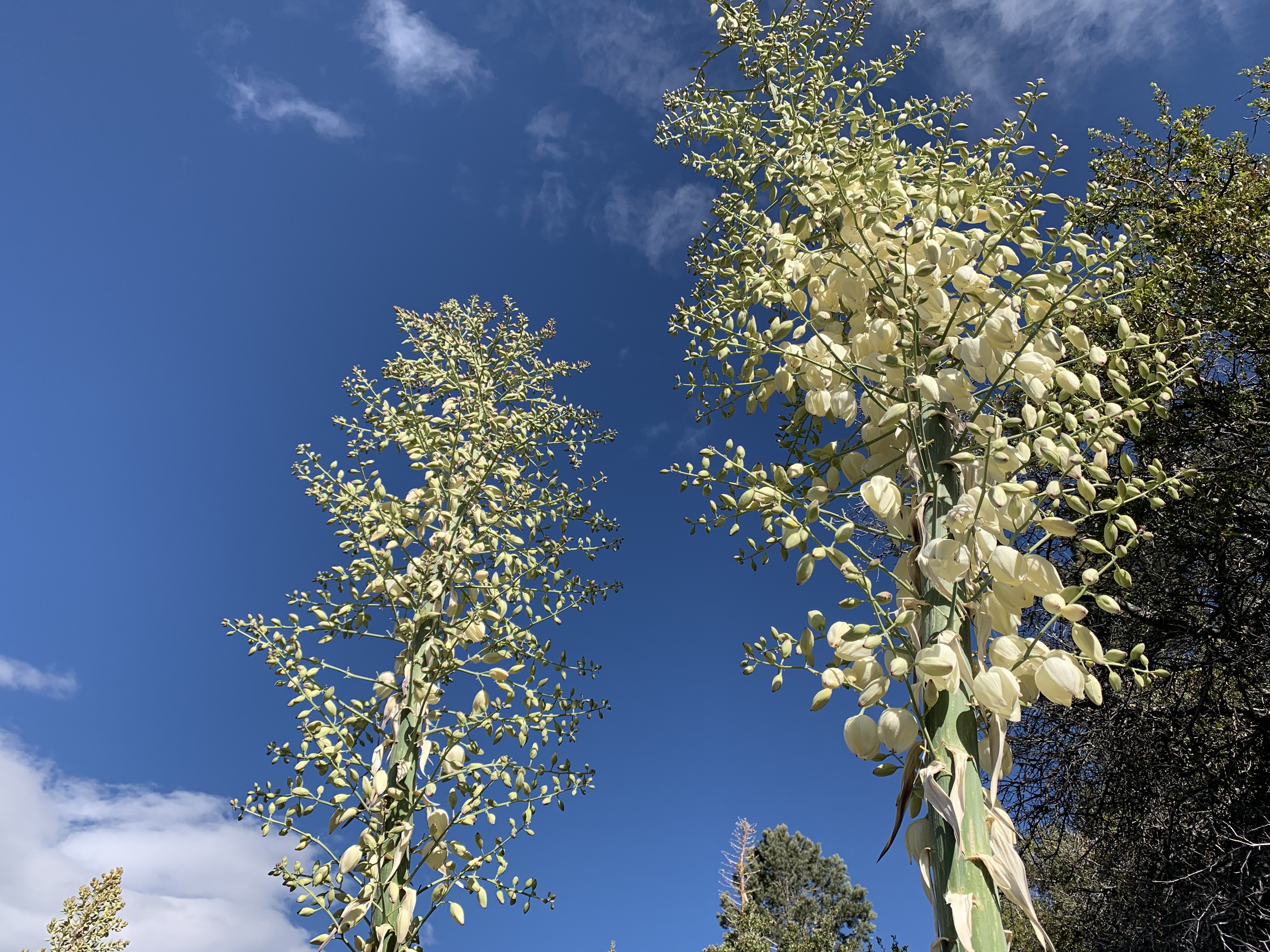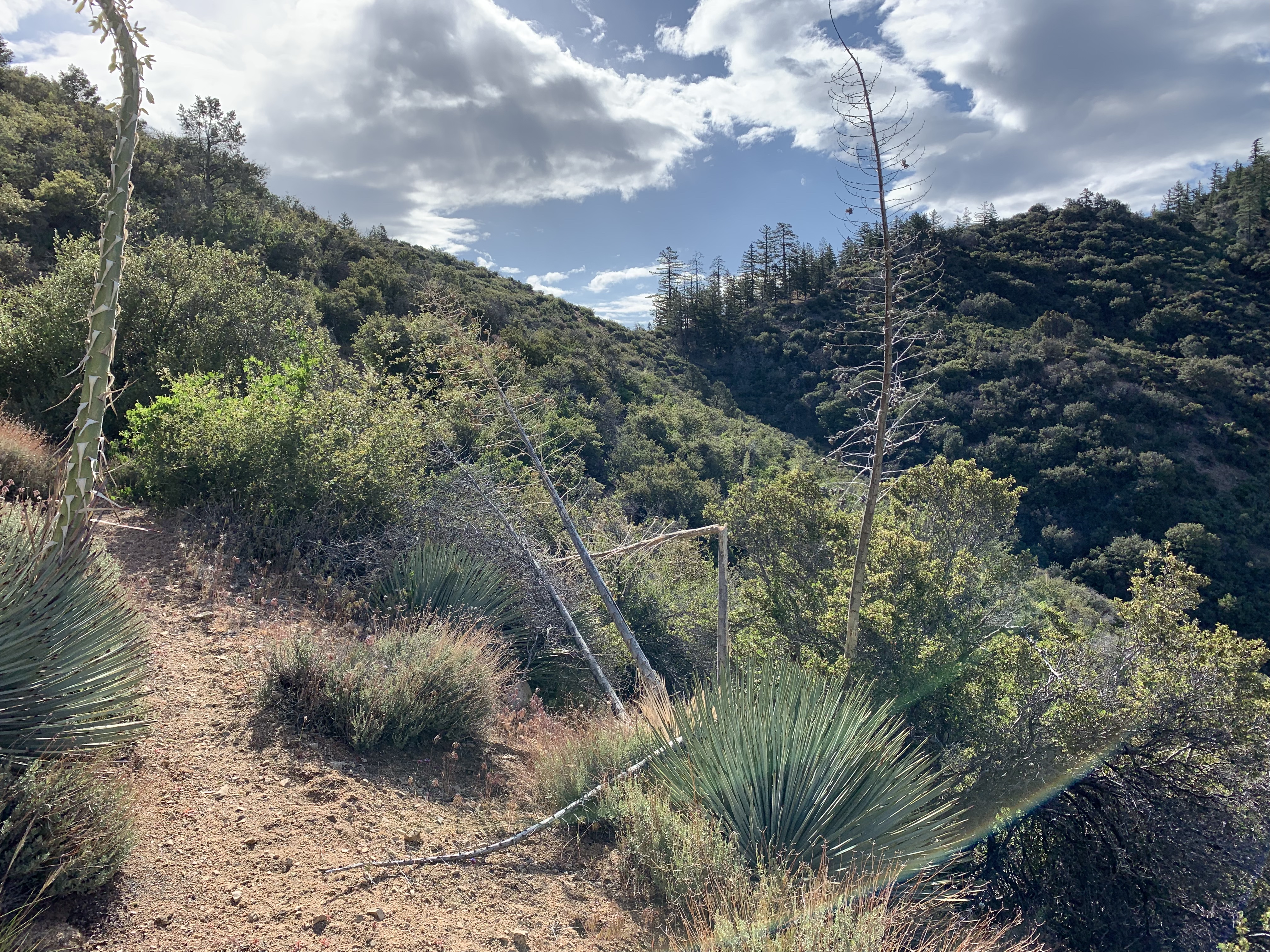 Yuccas in bloom the last bit before I met Tony. After I met Tony, we camped in our camper at the Los Alamos campground. Then he drove me to Sandberg and I continued my hike southbound on the PCT to Agua Dulce.