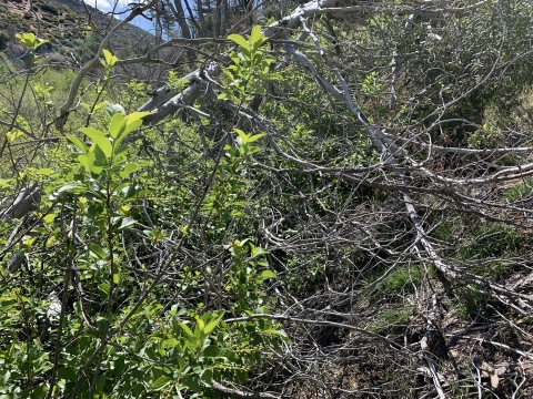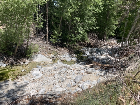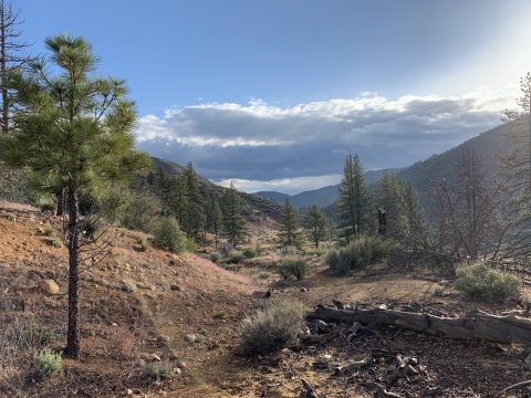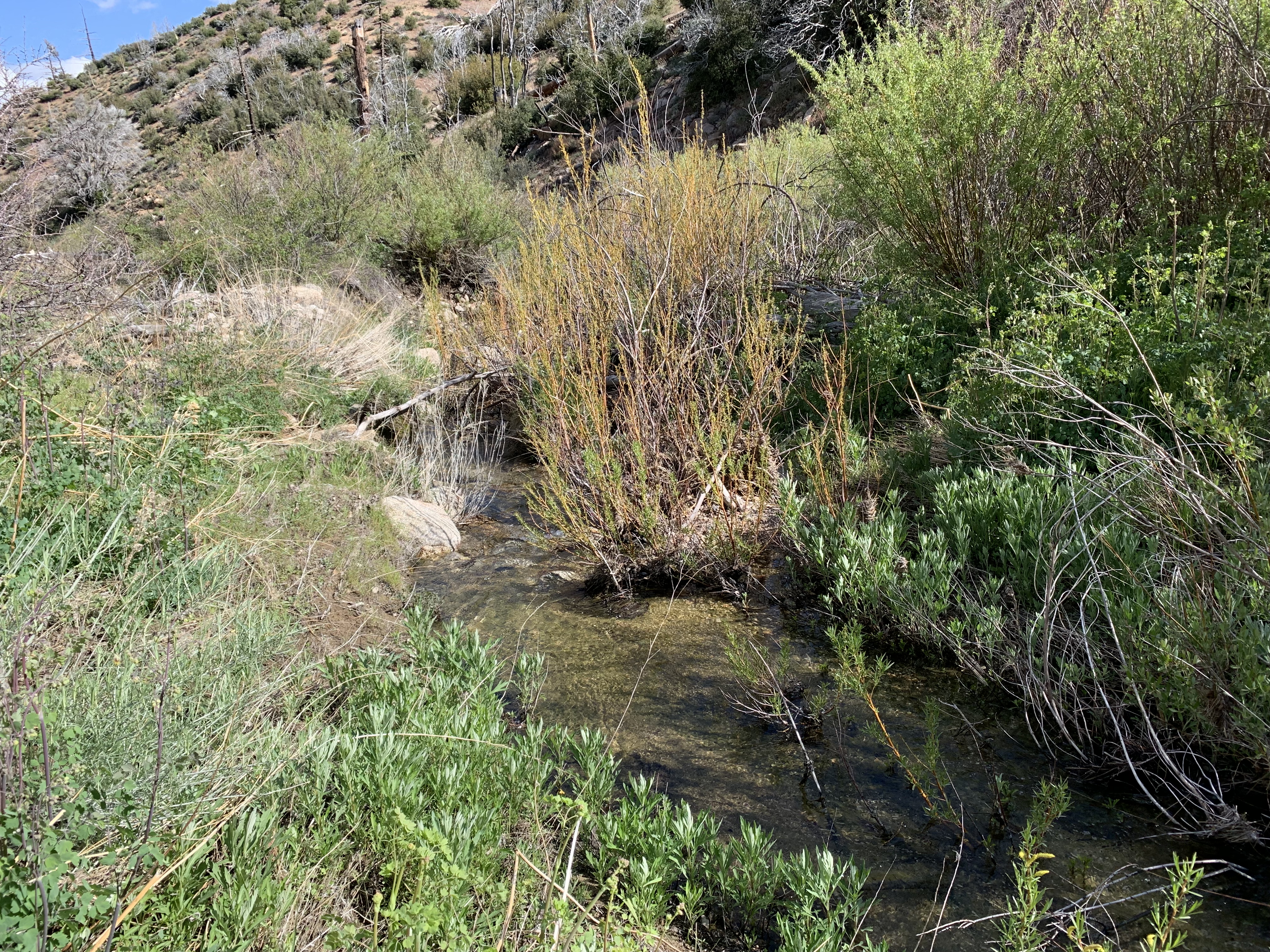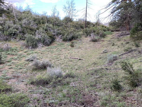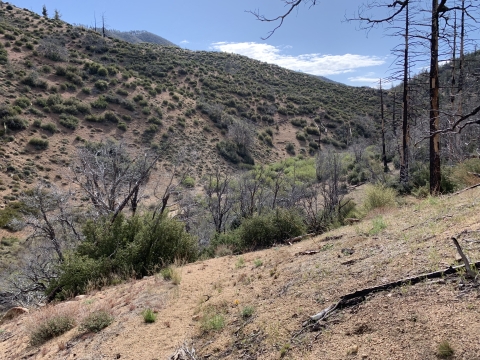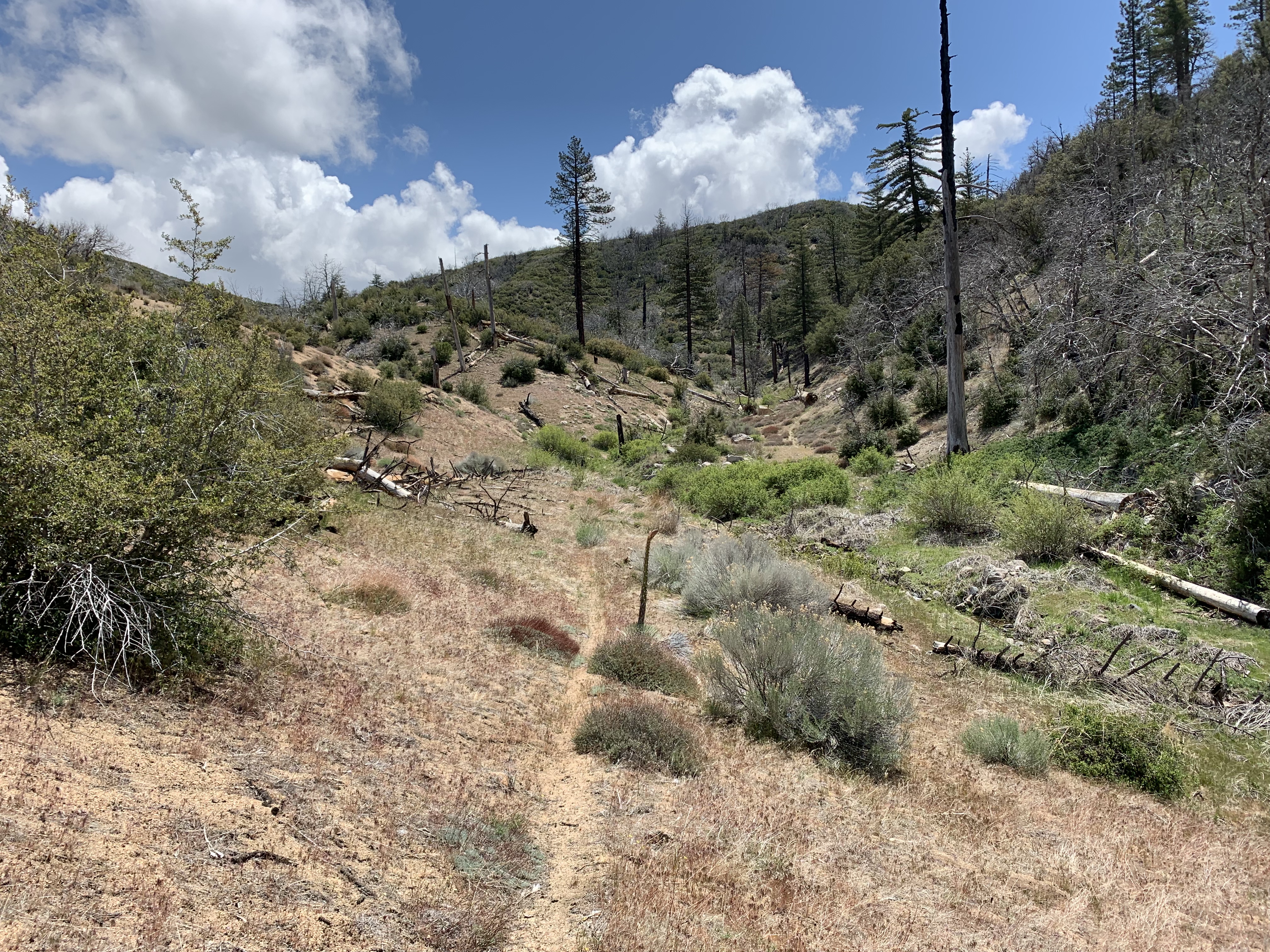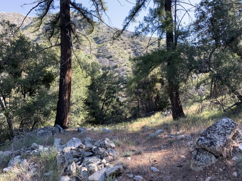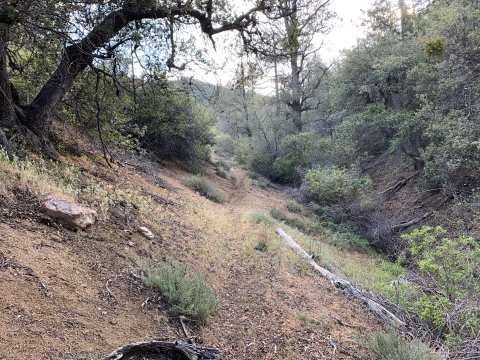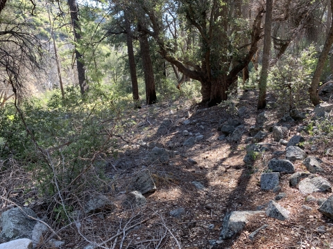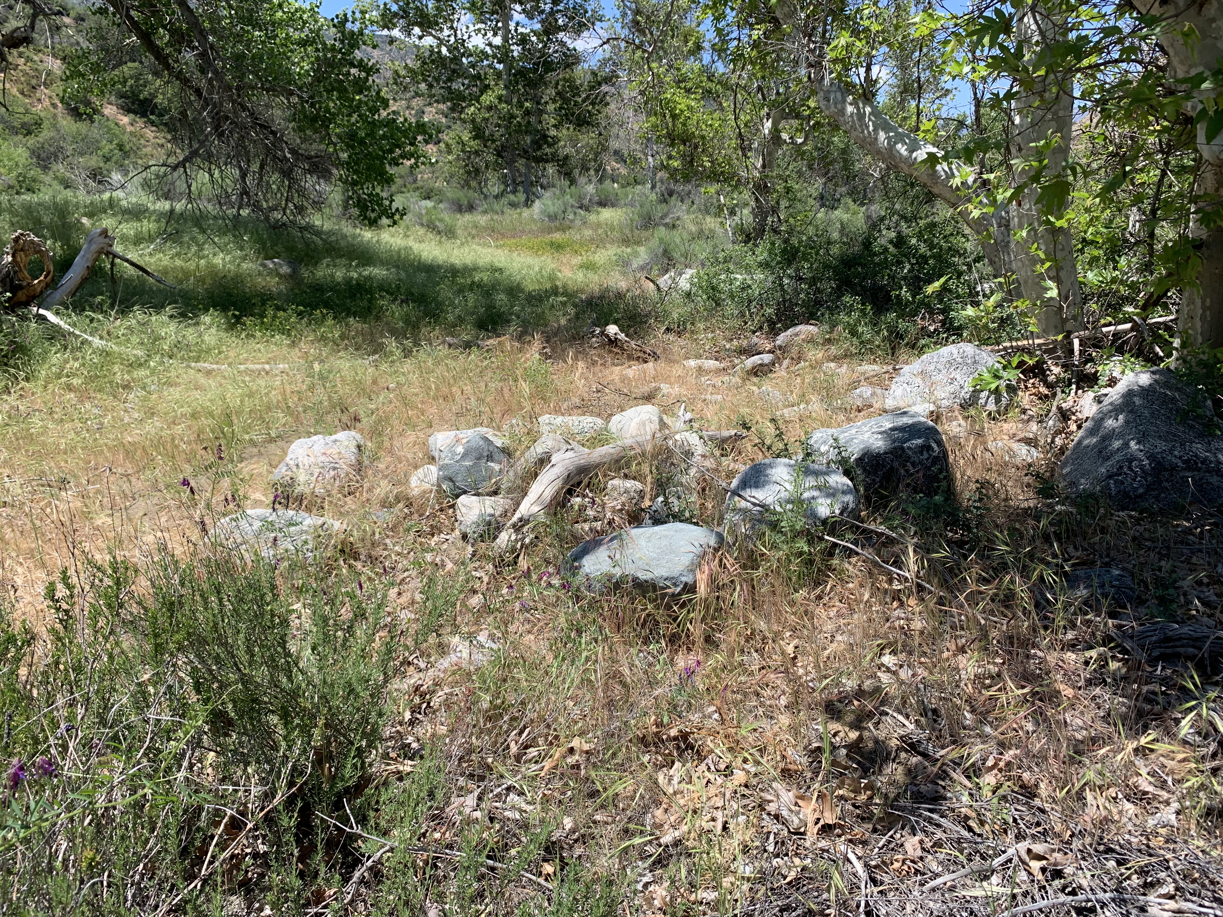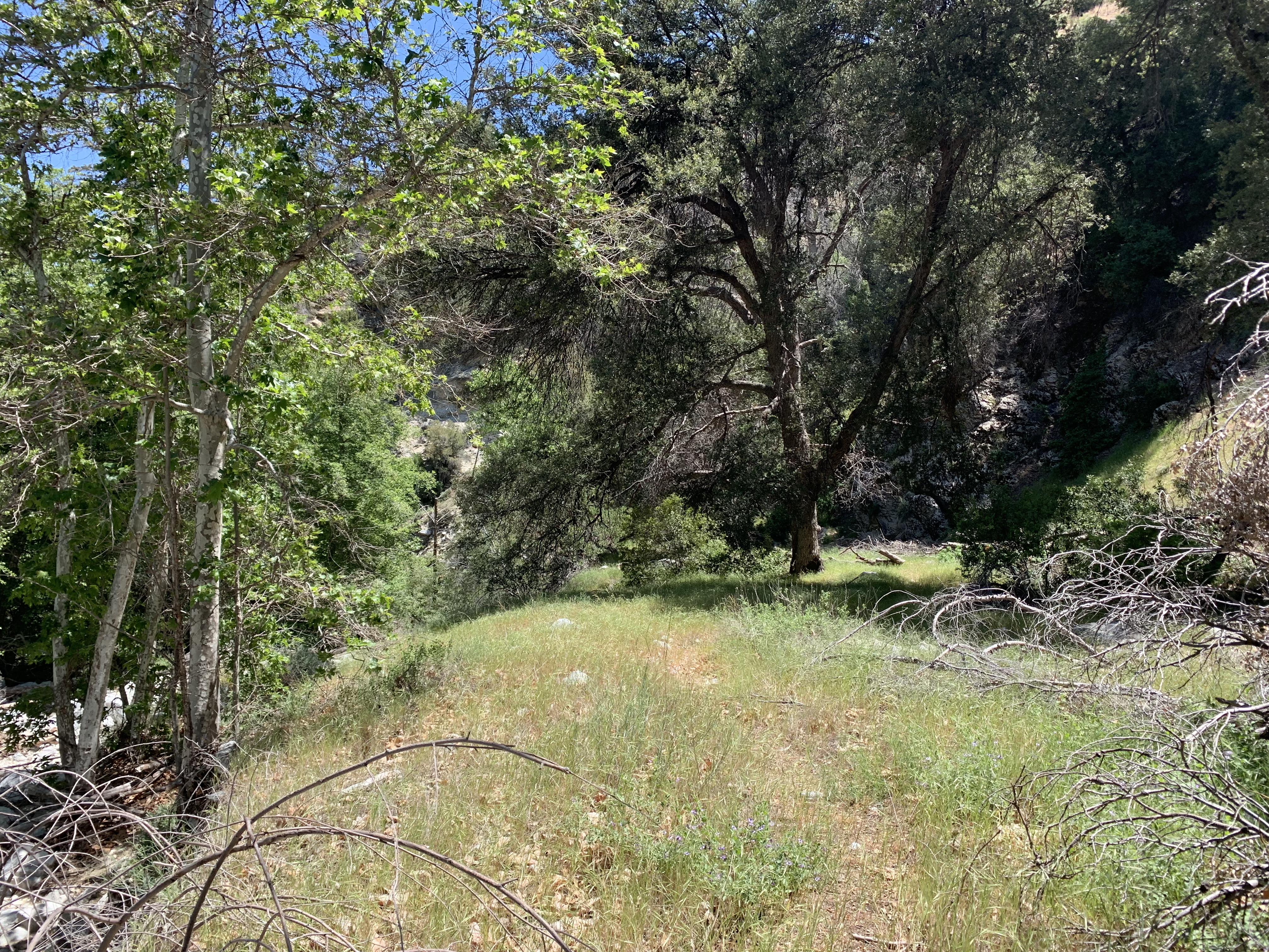 So this is where I had gone wrong in 2009. I just kept going down this nice trail and then I couldn't figure out how I was supposed to be on the Buck Creek Trail or how to get back to it or anything. I was very confused. This trail just kept on going and it led me to Snowy Creek. There were campsites and old ruins on the trail. Eventually the trail led me up and over a hill into Hungry Valley. That's when I knew I was lost. I had gone so far I couldn't go back, so I bushwhacked for 4 hours down Snowy Creek. It was hell and at the time I had no idea where I was. I still thought I might be in Buck Creek, but I wasn't.