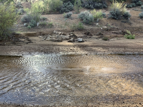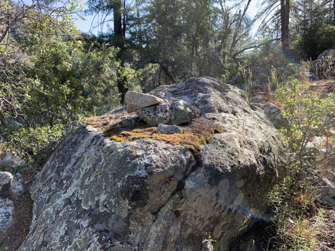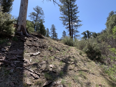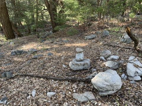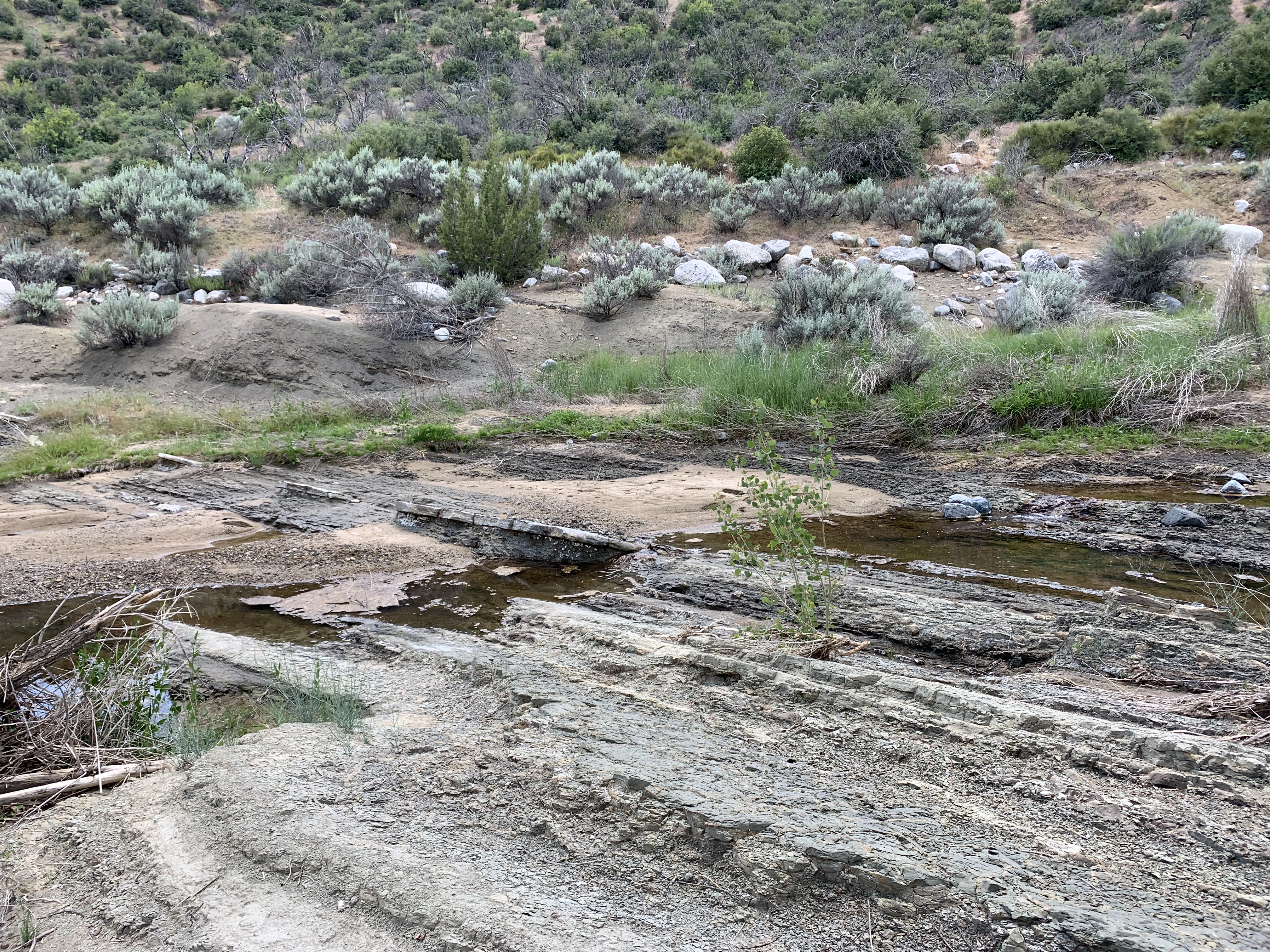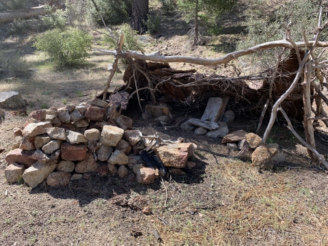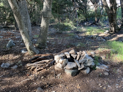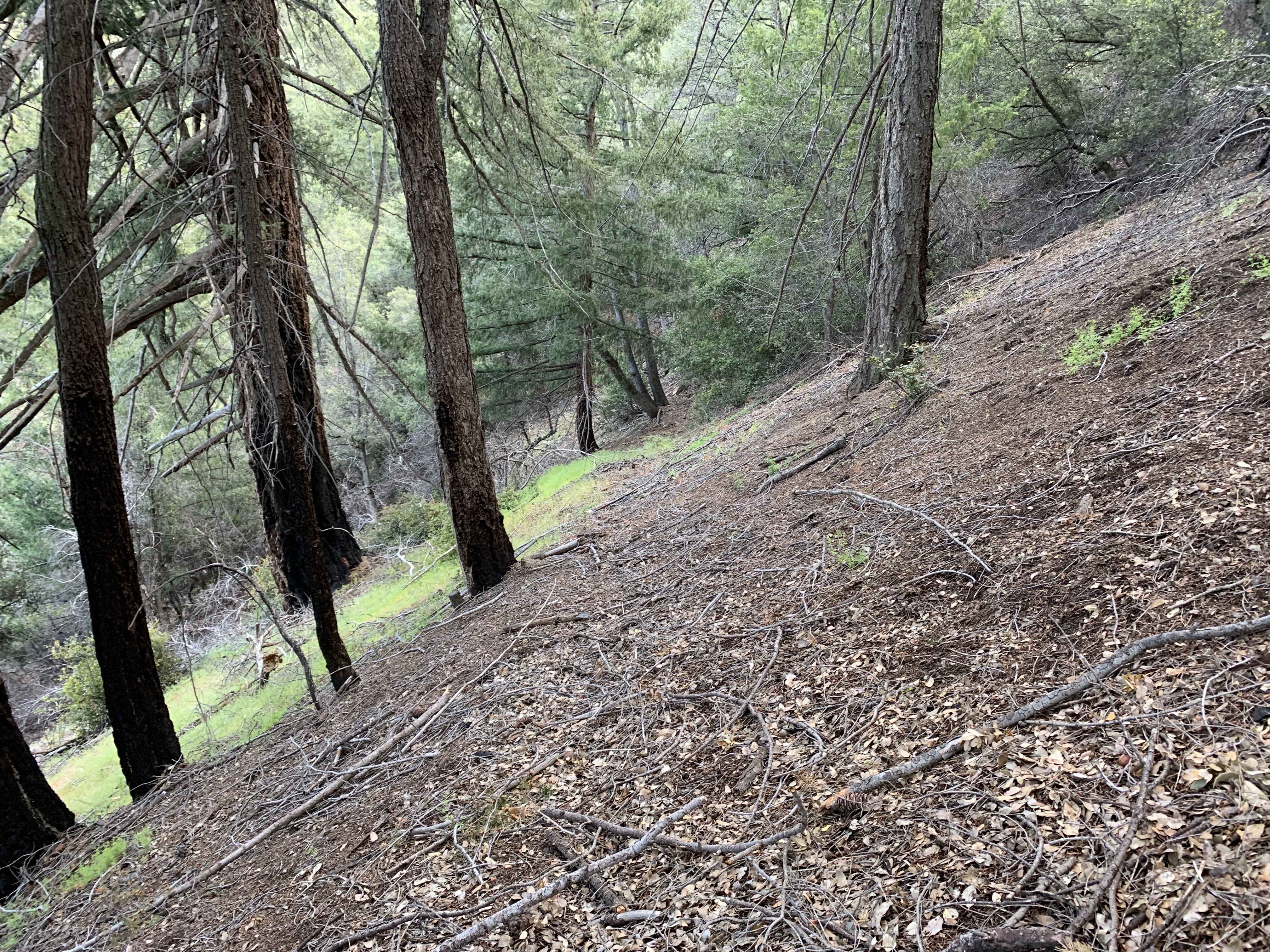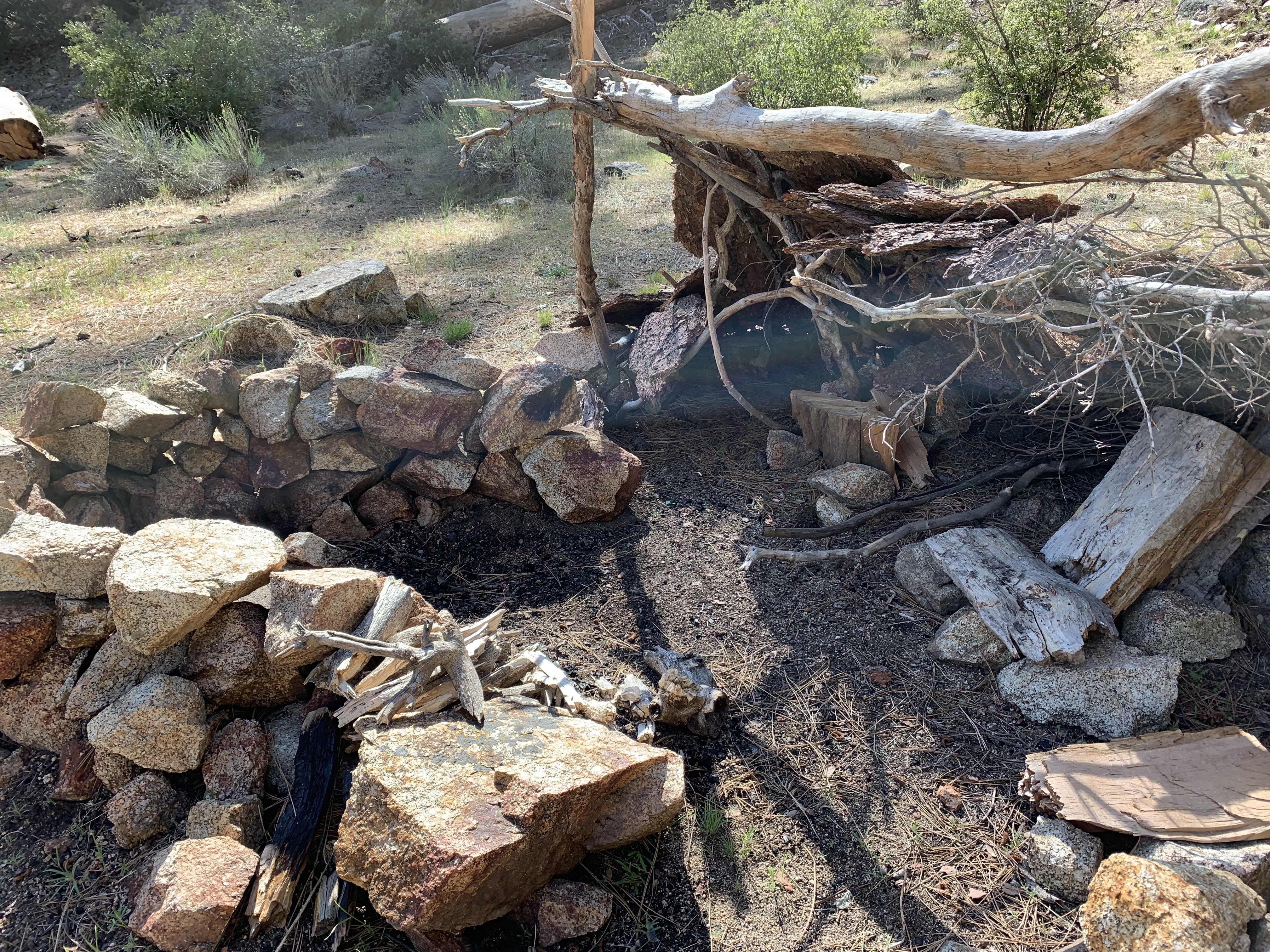 In the morning I was able to easily backtrack to the faint trail and then just walk easily cross-country downhill through the big cone spruce right down to the bottom of the canyon where I found the trail. When I found this metal thing I was really happy. I knew I was going to be okay. The spring had to be close-by.