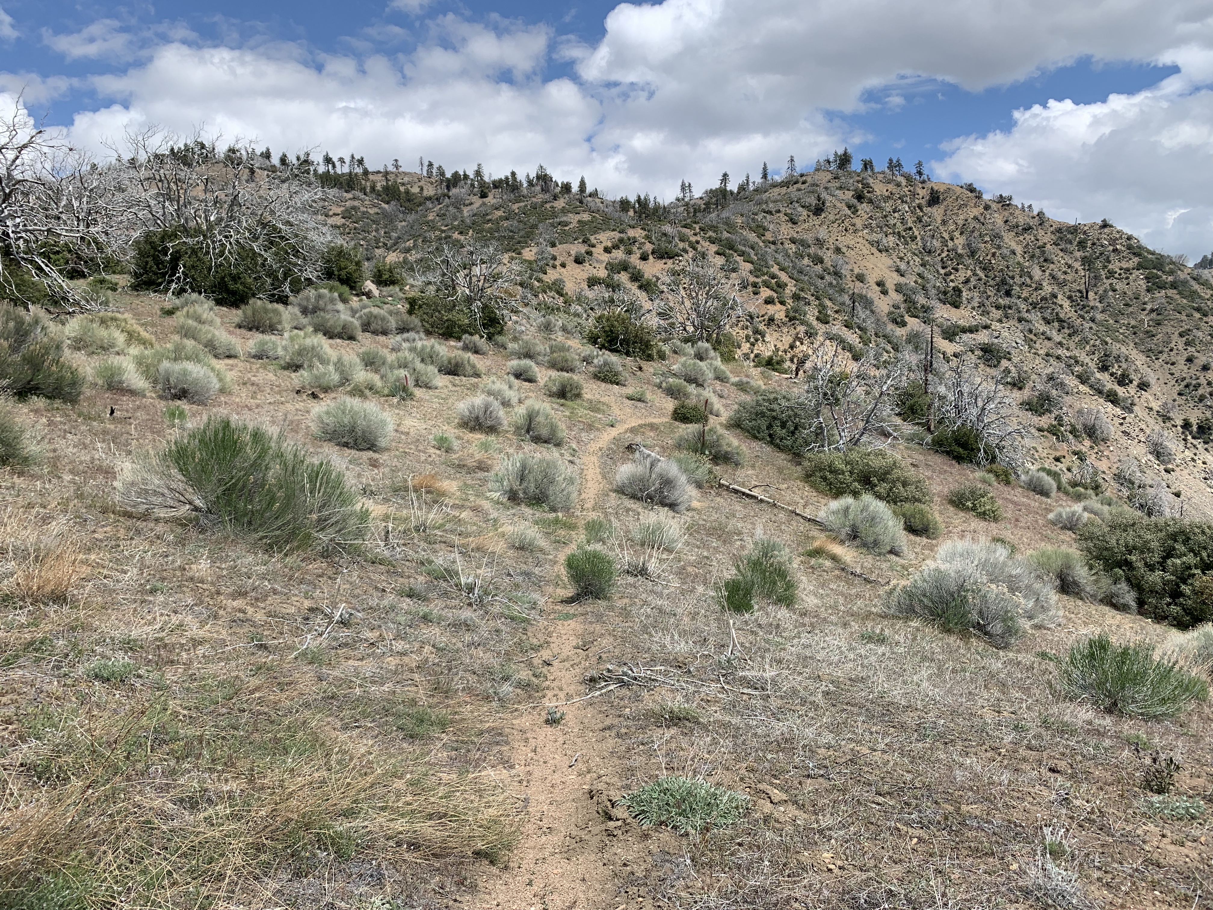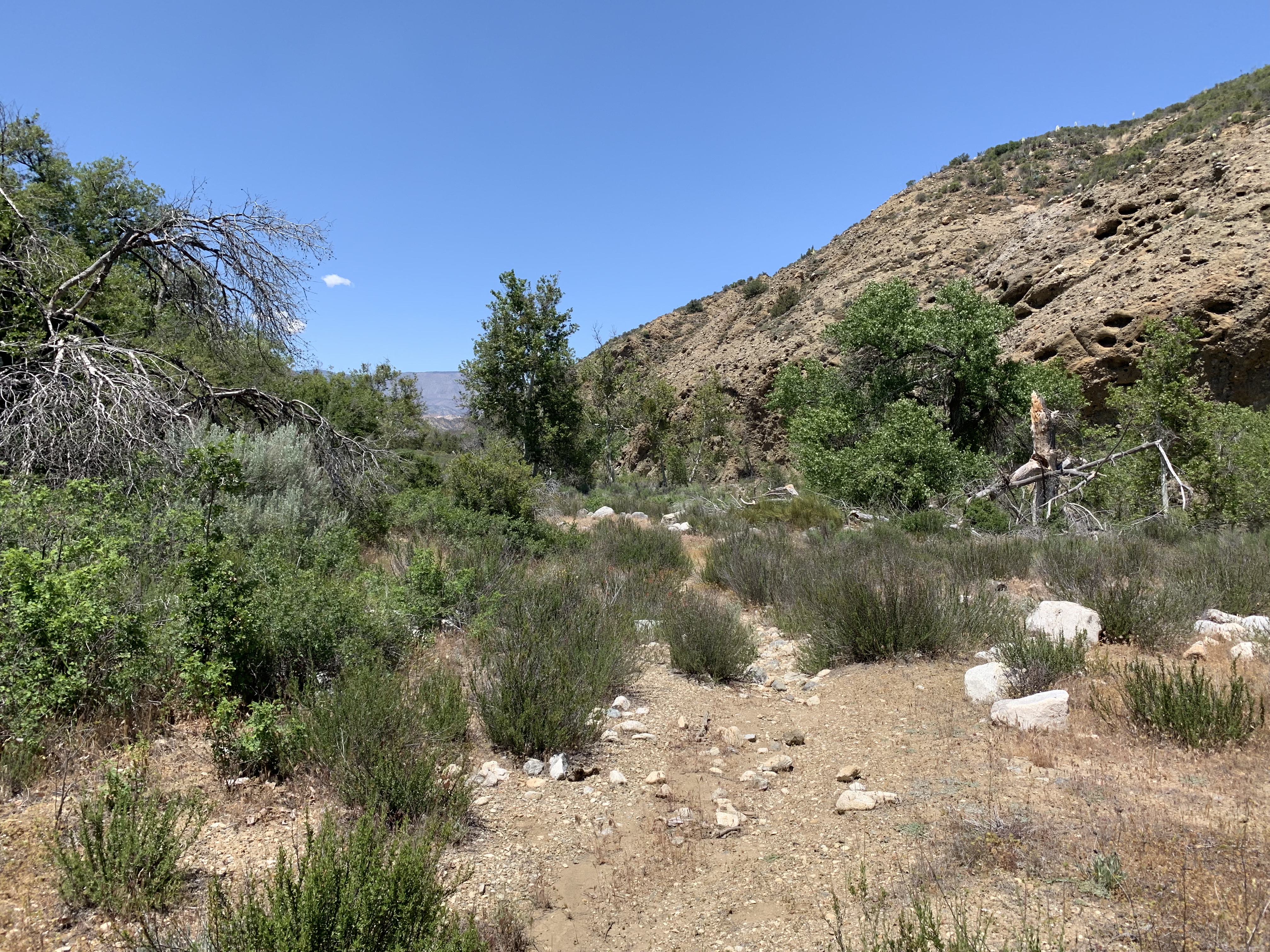The trail got a little bit obscure and kept leading me into some kind of tangle, but once I decided to commit to it, I popped out into this little depression. This depression is marked on the topo like a tiny blue circle. It's a sort of dry lake similar to the dry lakes near Highway 33. Not really a lake at all.