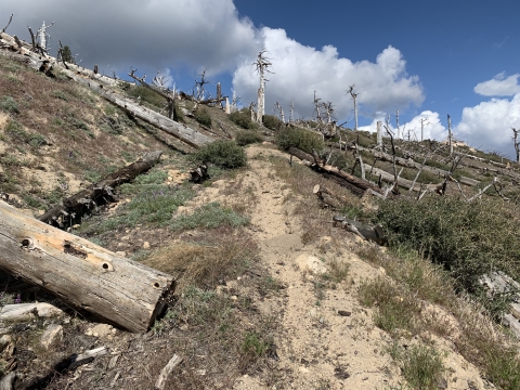 I camped along the trail near Mutau Meadow. It rained that night.