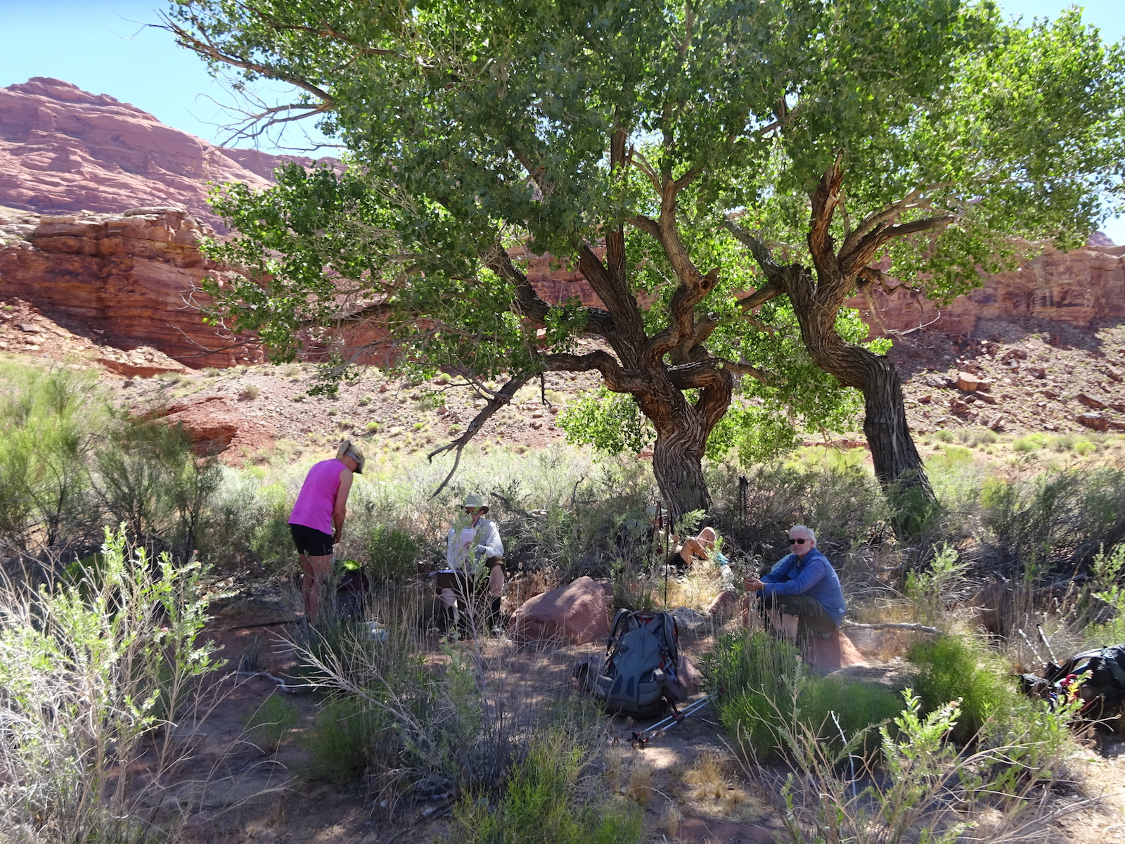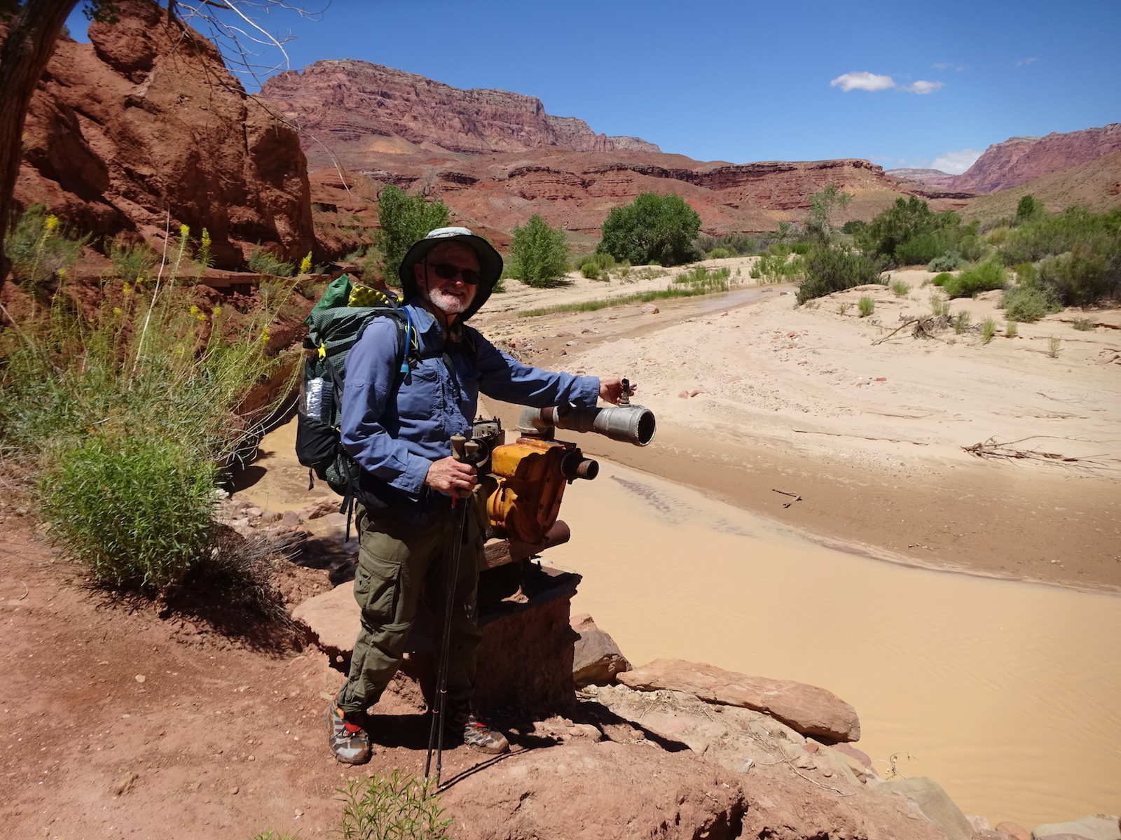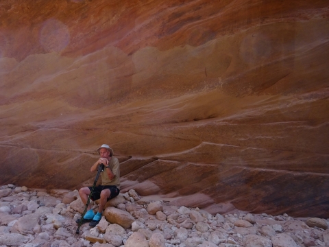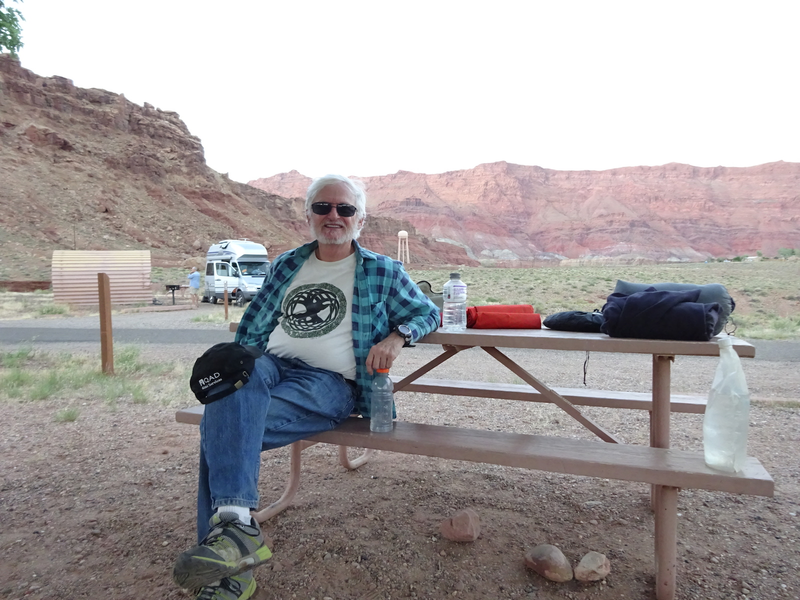 In May of 2017 a bunch of us went to Arizona to hike the Buckskin Gulch/Paria River. The trip was organized by our friend Kristi and the people who went were Tony and I, Kristi, Paul and Kristi's friend from Kansas, Alan. Here's Tony after our long drive all the way to the Lee's Ferry campground near the Colorado River where people put in to do raft trips through the Grand Canyon.