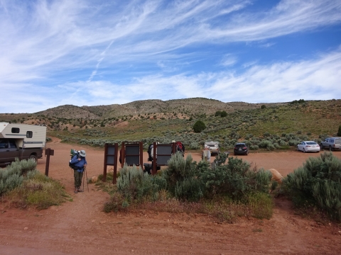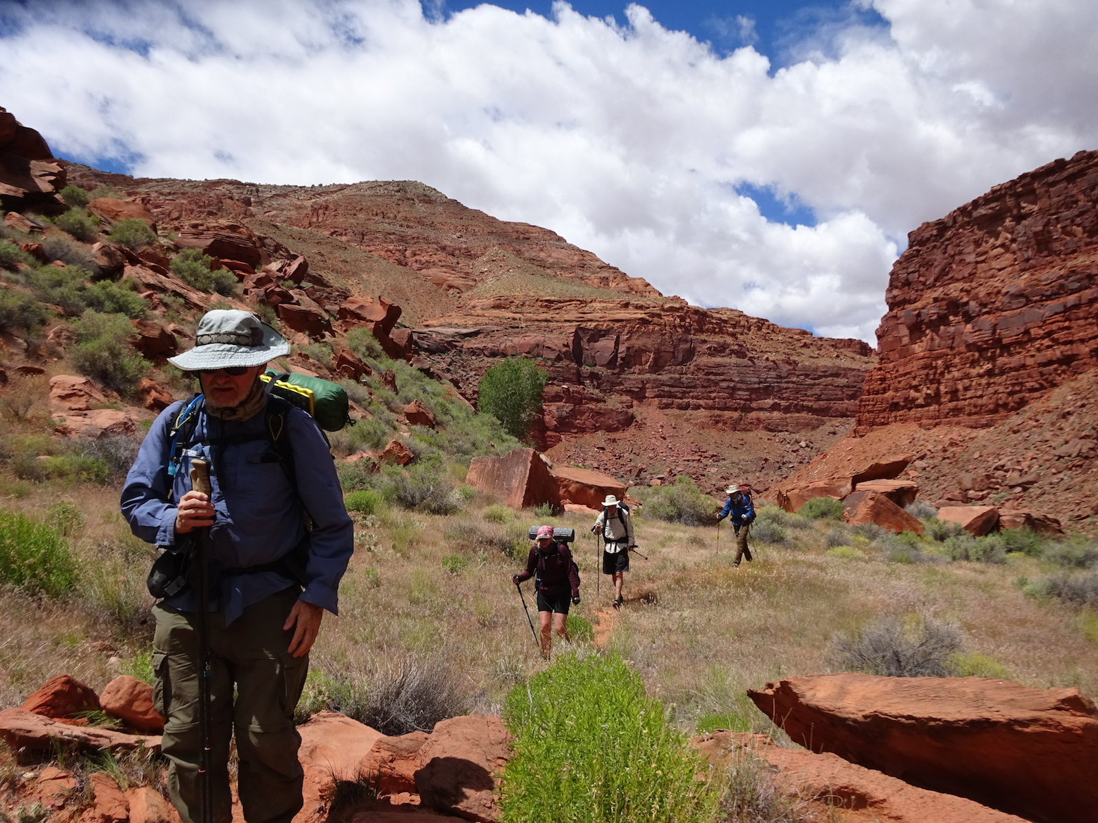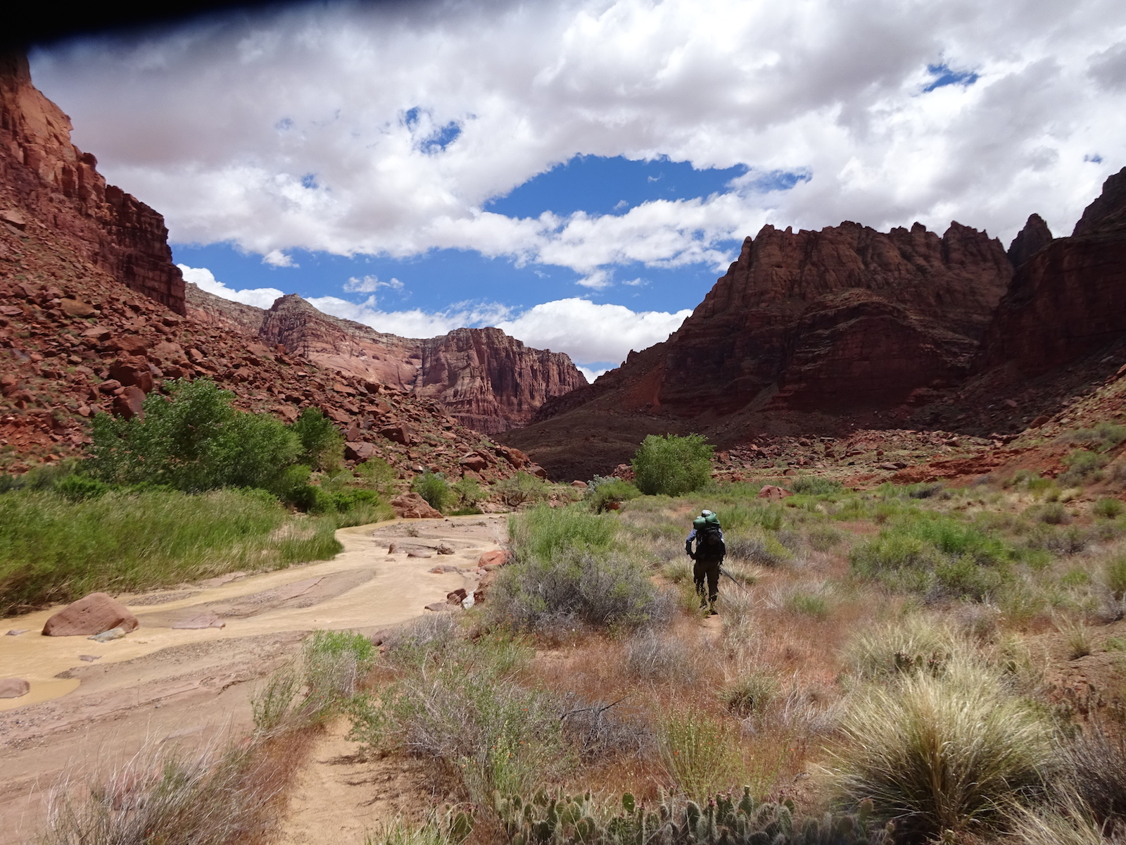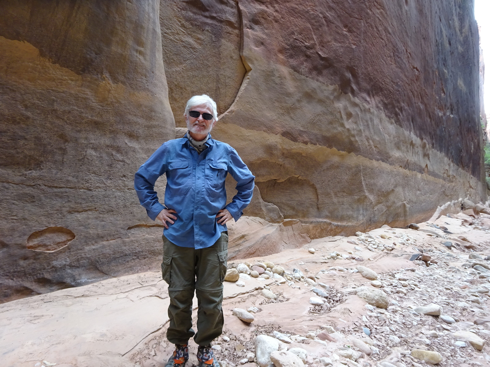 In May of 2017 a bunch of us went to Arizona to hike the Buckskin Gulch/Paria River. The trip was organized by our friend Kristi and the people who went were Tony and I, Kristi, Paul and Kristi's friend from Kansas, Alan. Here's Tony after our long drive all the way to the Lee's Ferry campground near the Colorado River where people put in to do raft trips through the Grand Canyon.