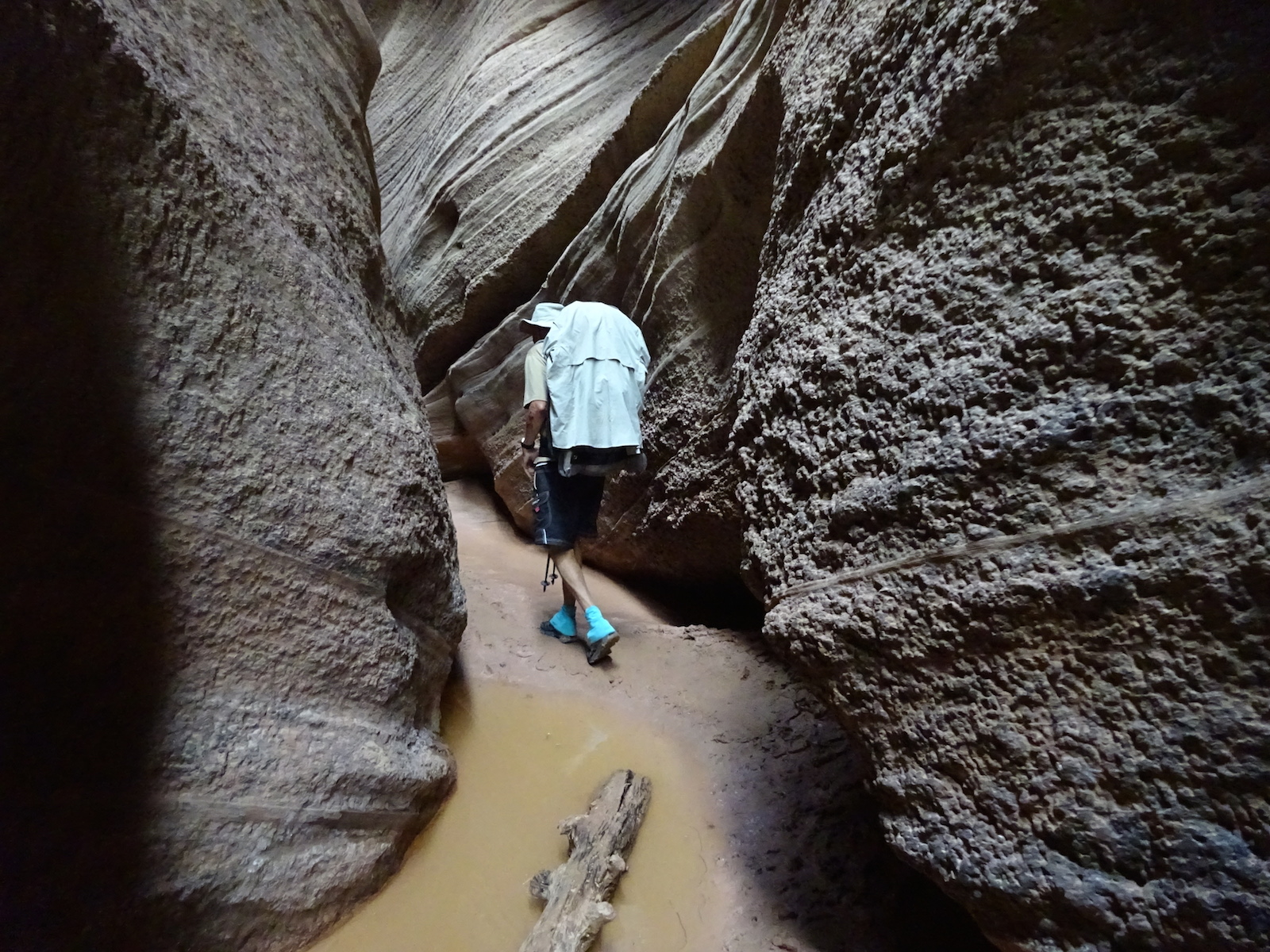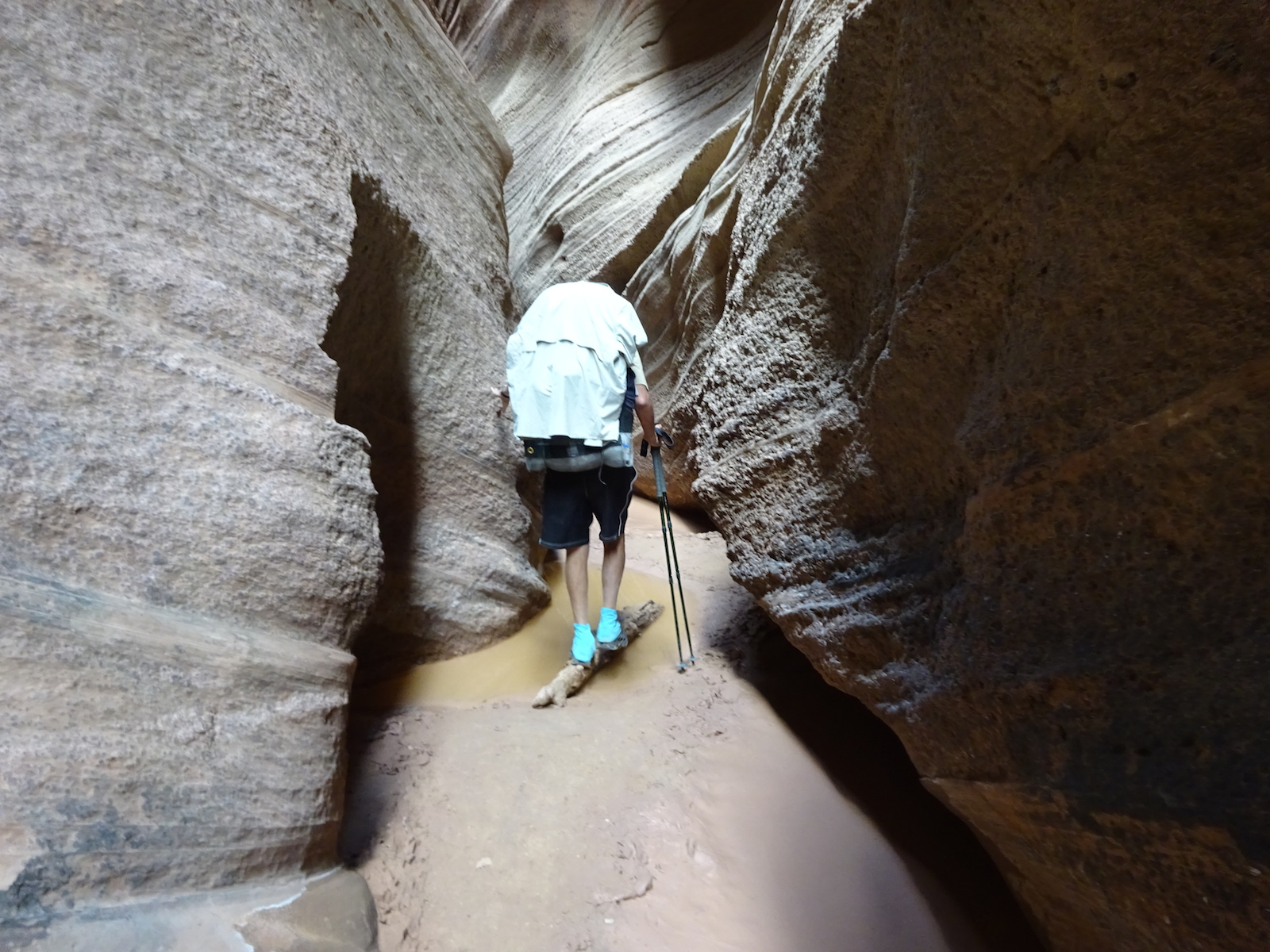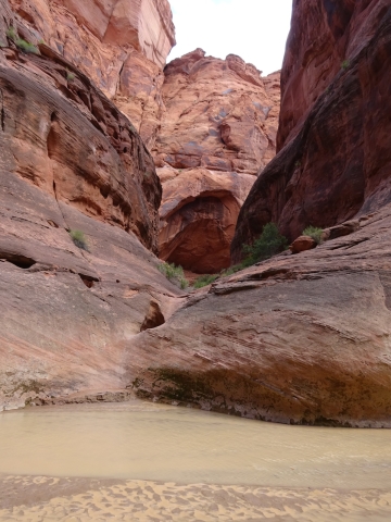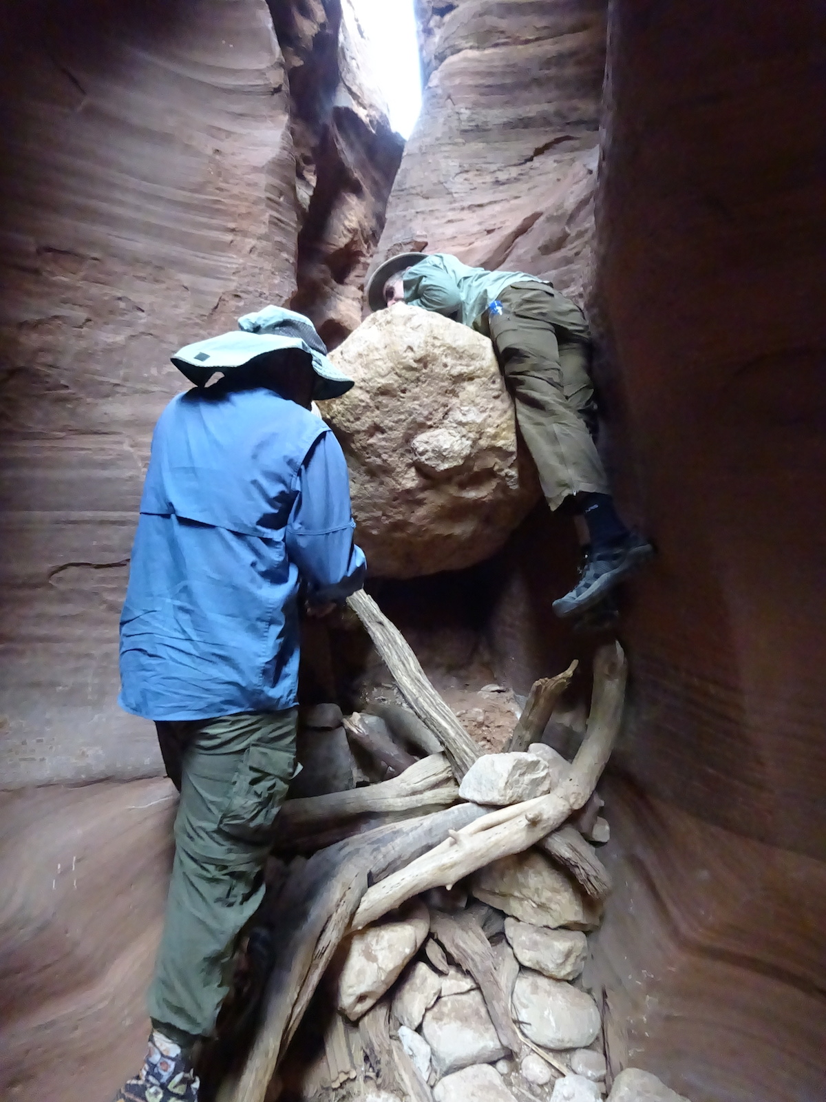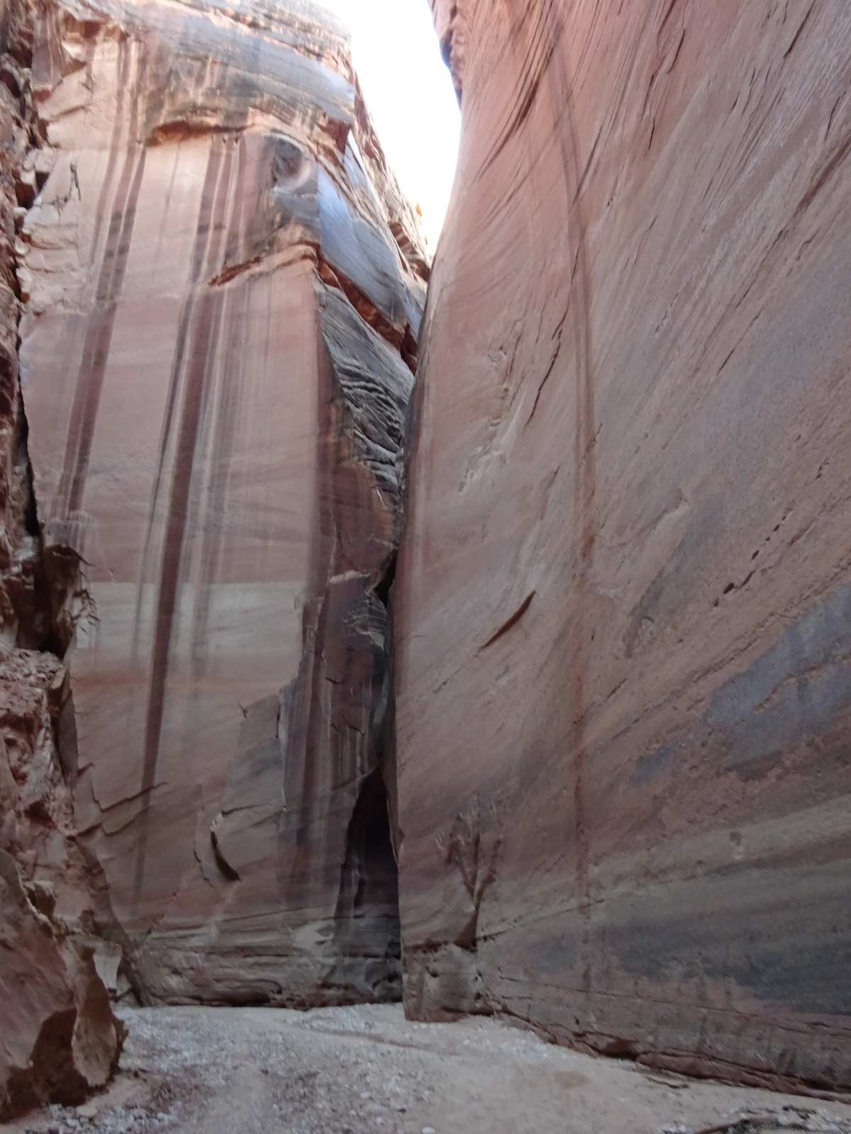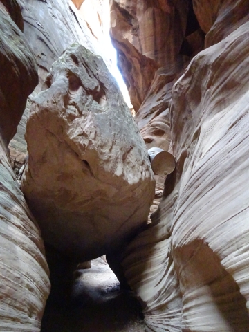 There were a few exit/escape places in Buckskin Gulch. This was the only one that looked like we could climb. Hiking in this canyon would be very dangerous if there were a flash flood. You have to make sure there is no weather anywhere around. Even many miles away a storm would be dangerous because it would have time to gather up more water and debris to fill the slot. There were no storms in the weather forecast for this day.
