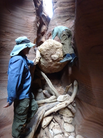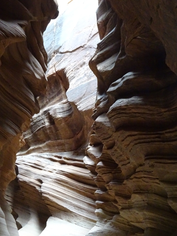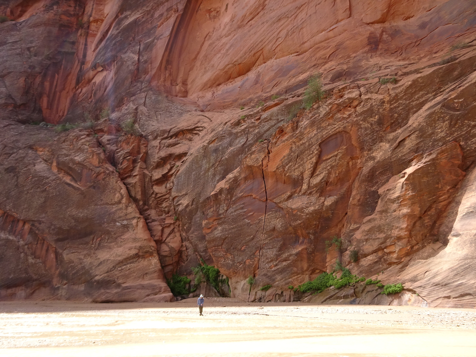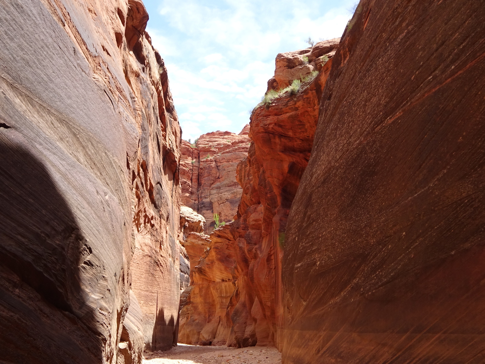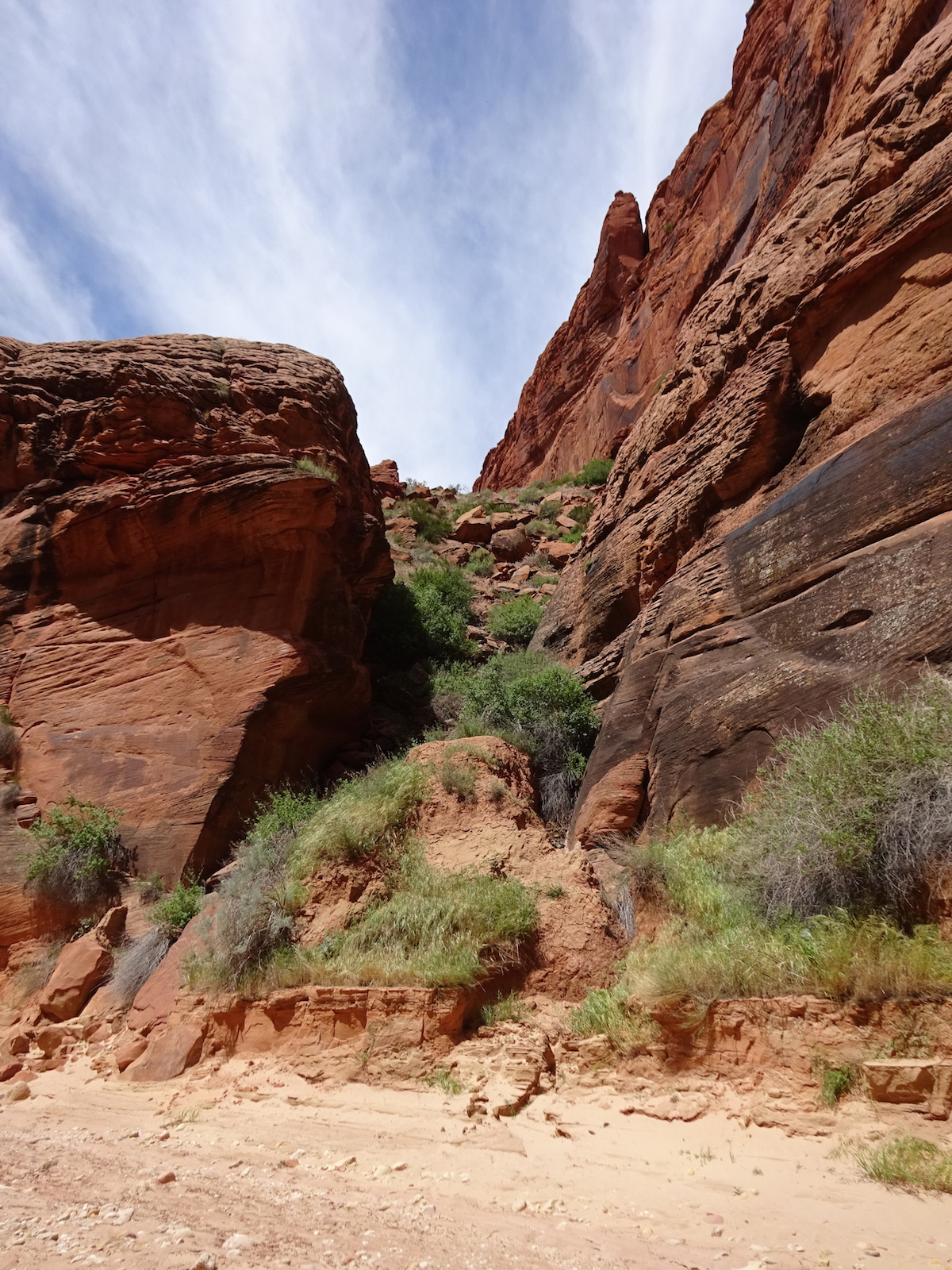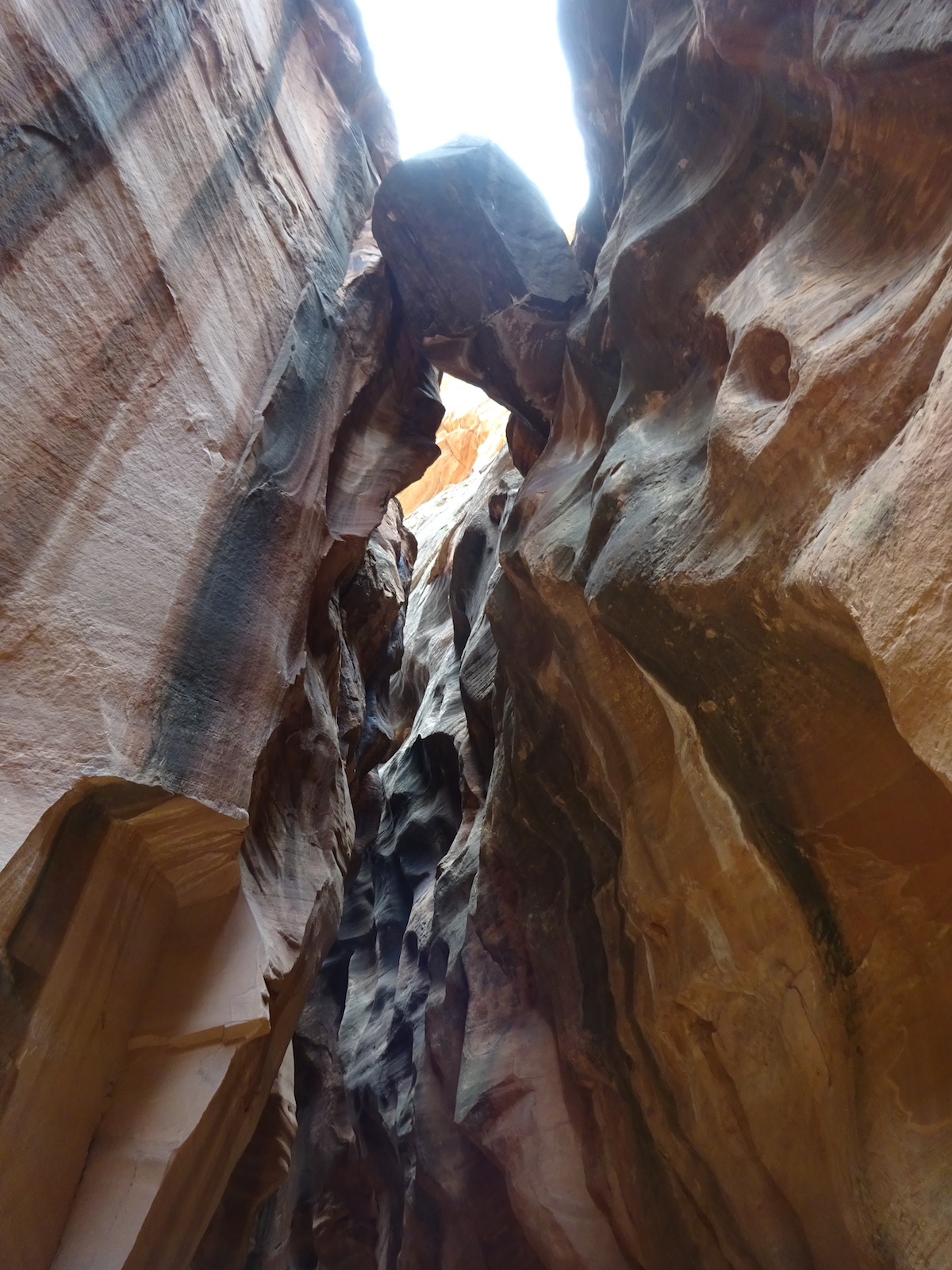 There were a few exit/escape places in Buckskin Gulch. This was the only one that looked like we could climb. Hiking in this canyon would be very dangerous if there were a flash flood. You have to make sure there is no weather anywhere around. Even many miles away a storm would be dangerous because it would have time to gather up more water and debris to fill the slot. There were no storms in the weather forecast for this day.