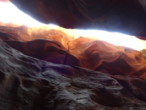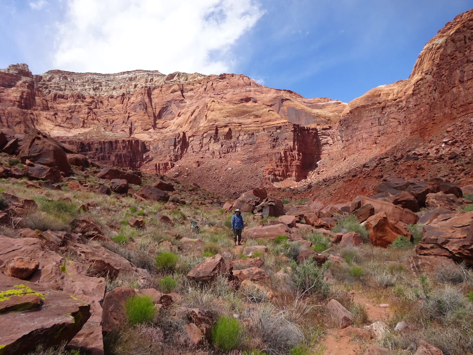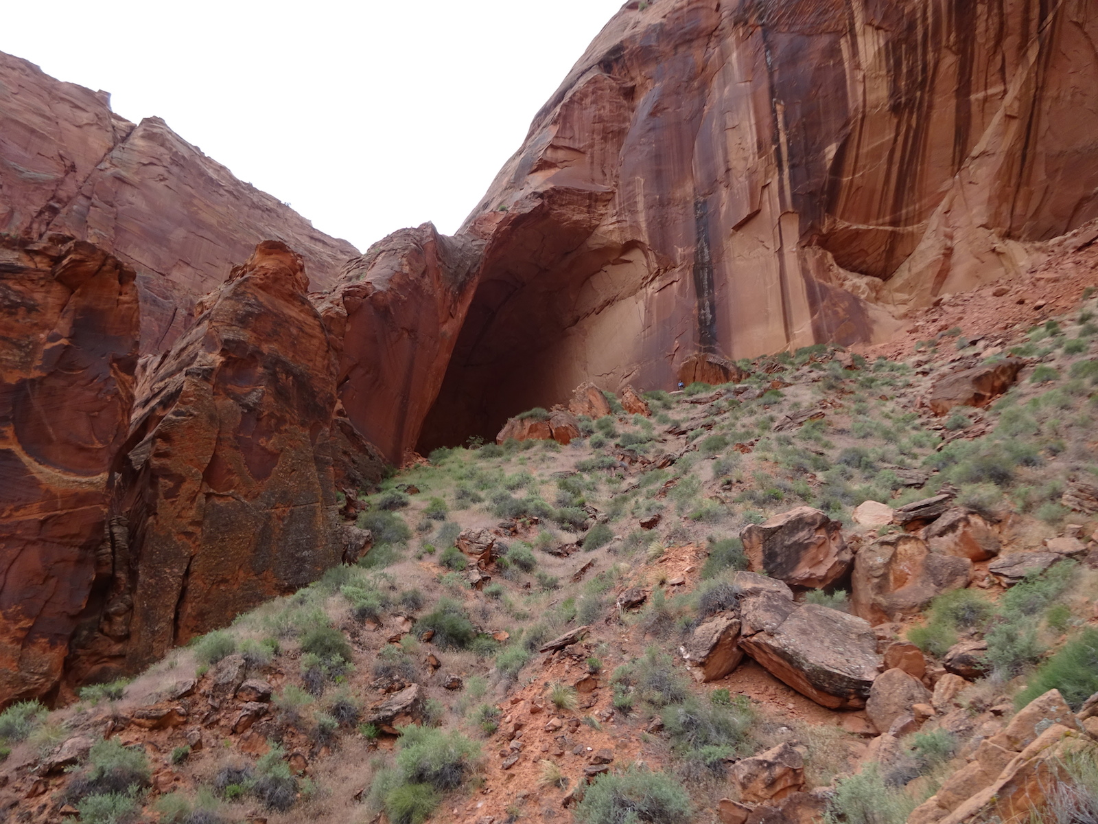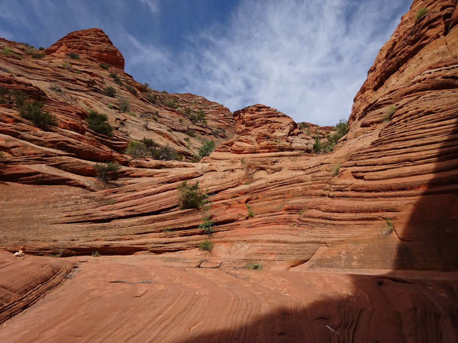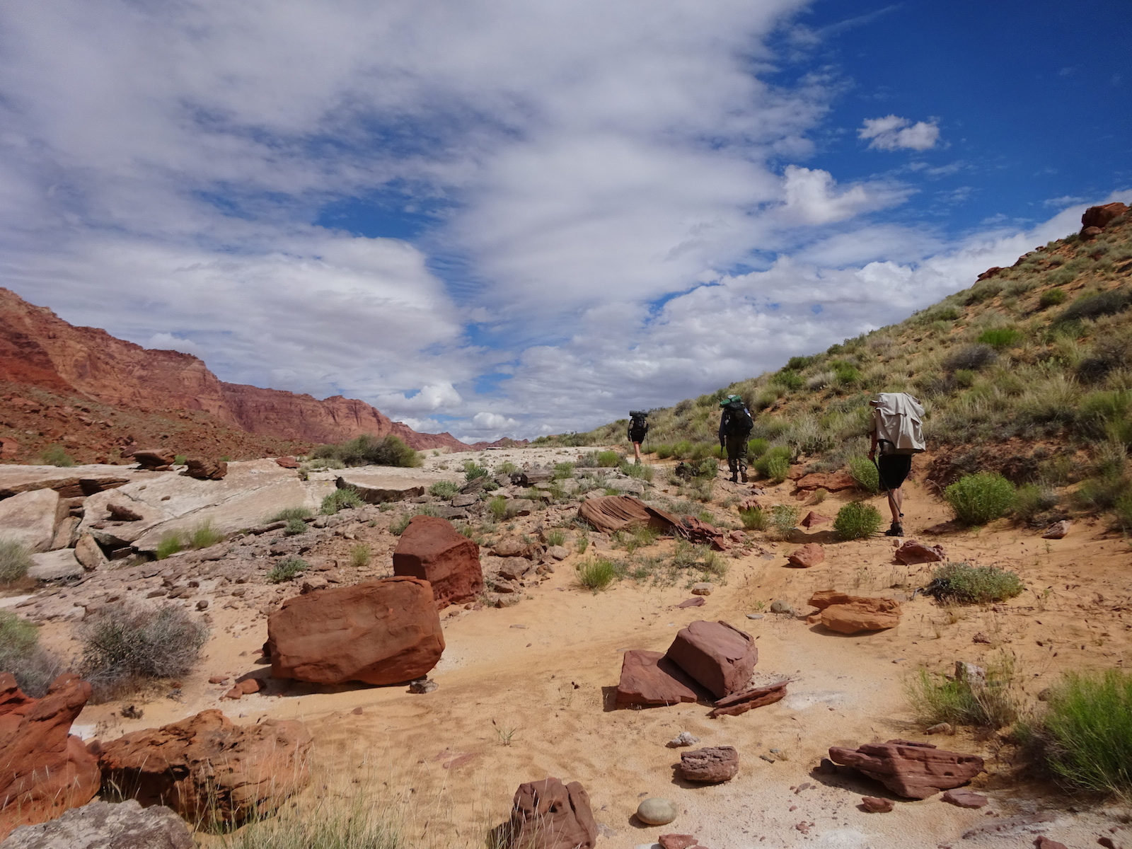 There were a few exit/escape places in Buckskin Gulch. This was the only one that looked like we could climb. Hiking in this canyon would be very dangerous if there were a flash flood. You have to make sure there is no weather anywhere around. Even many miles away a storm would be dangerous because it would have time to gather up more water and debris to fill the slot. There were no storms in the weather forecast for this day.
