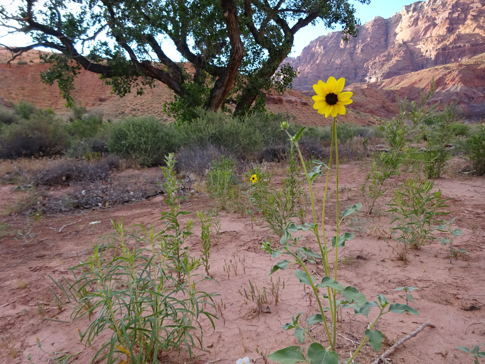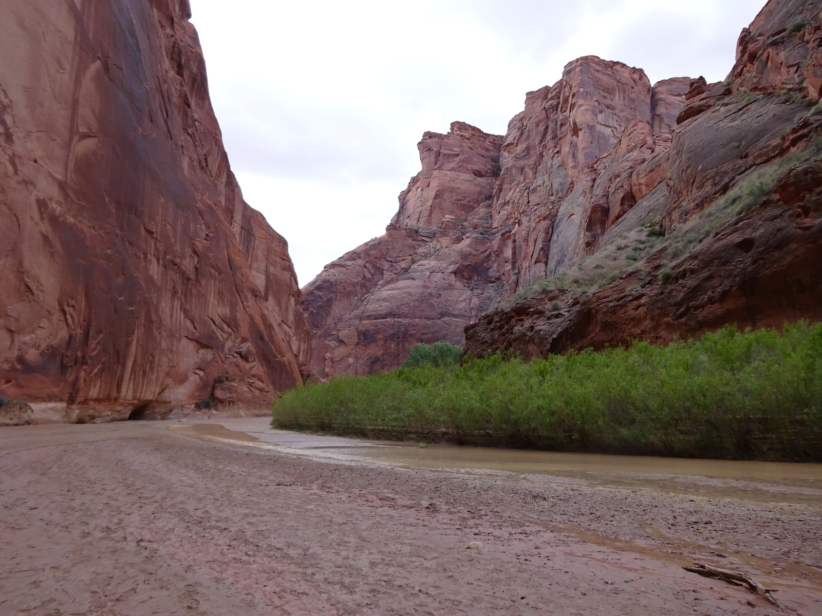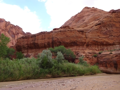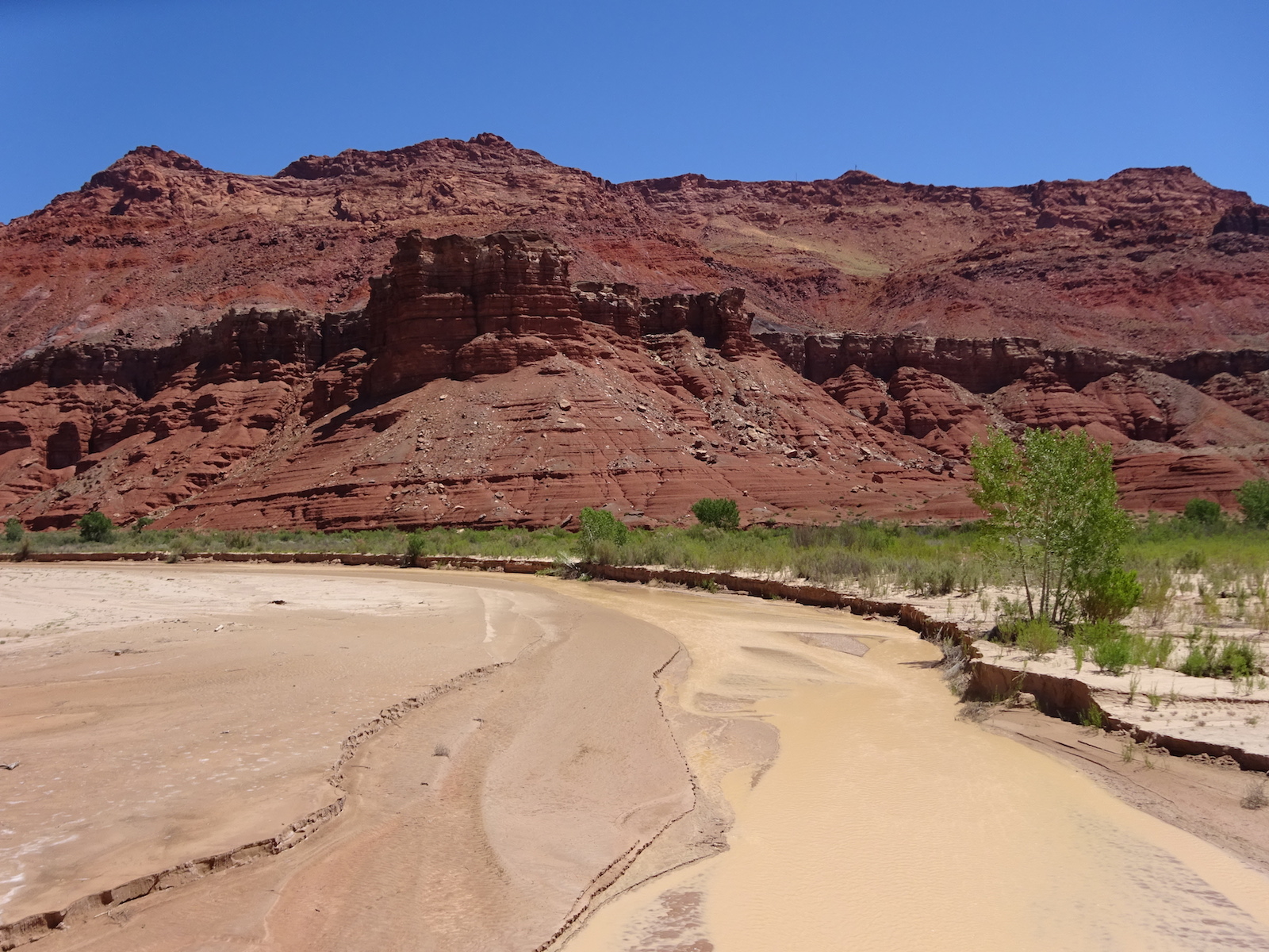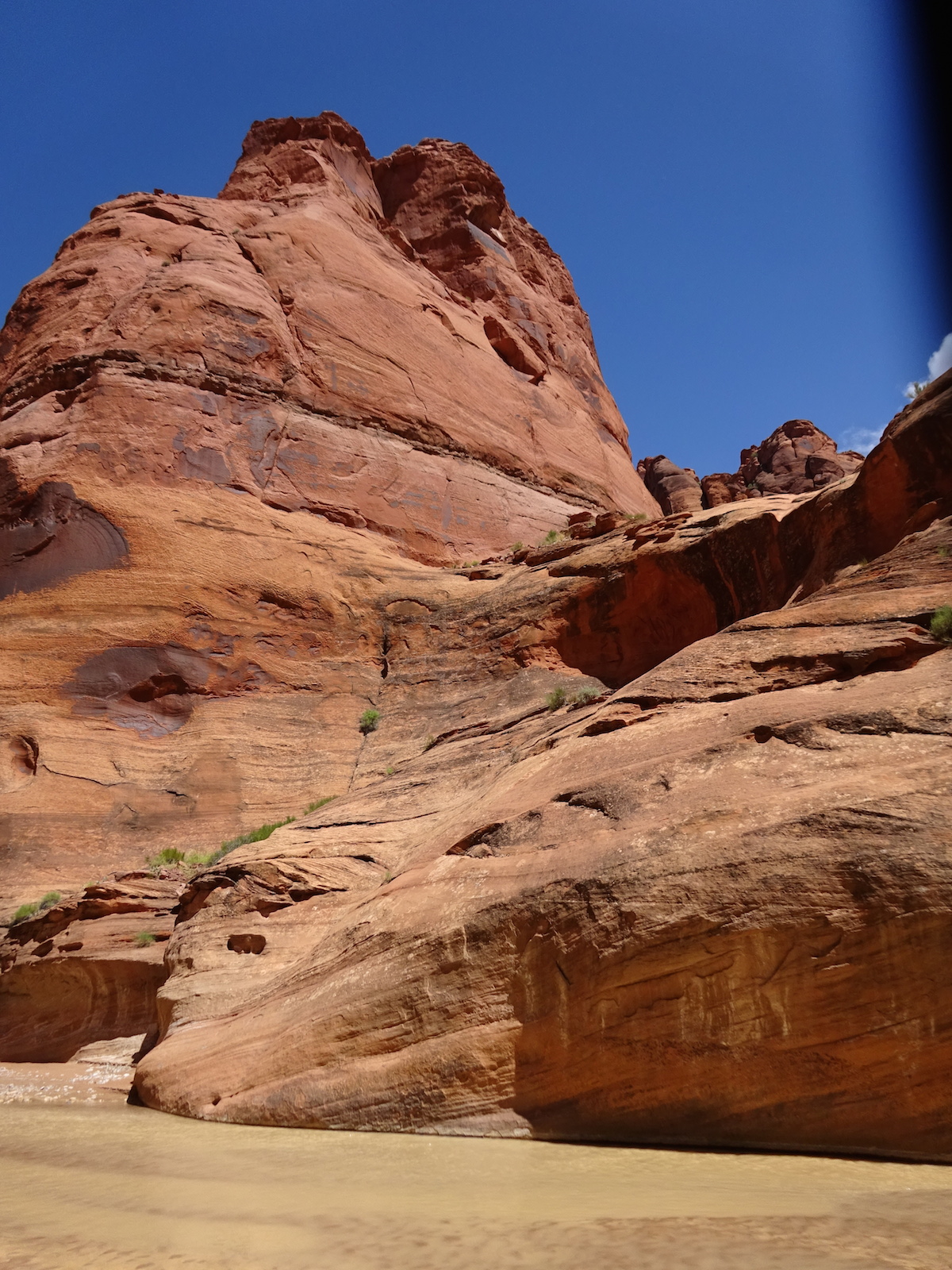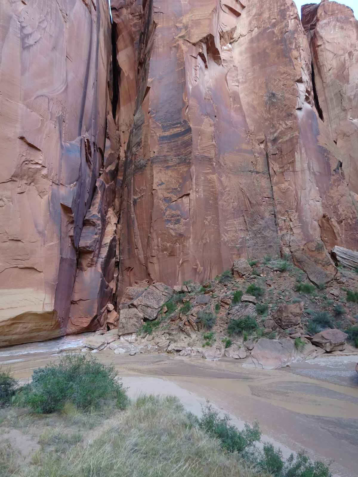 I examined the little dried mud flat where we camped and discovered a rather large, maybe foot-long freshly dead fish with its guts eaten out. I did not have a camera with me at the time. We had seen large Great Blue Herons in the canyon for several days. Apparently there are large fish in the shallow, murky Paria river.