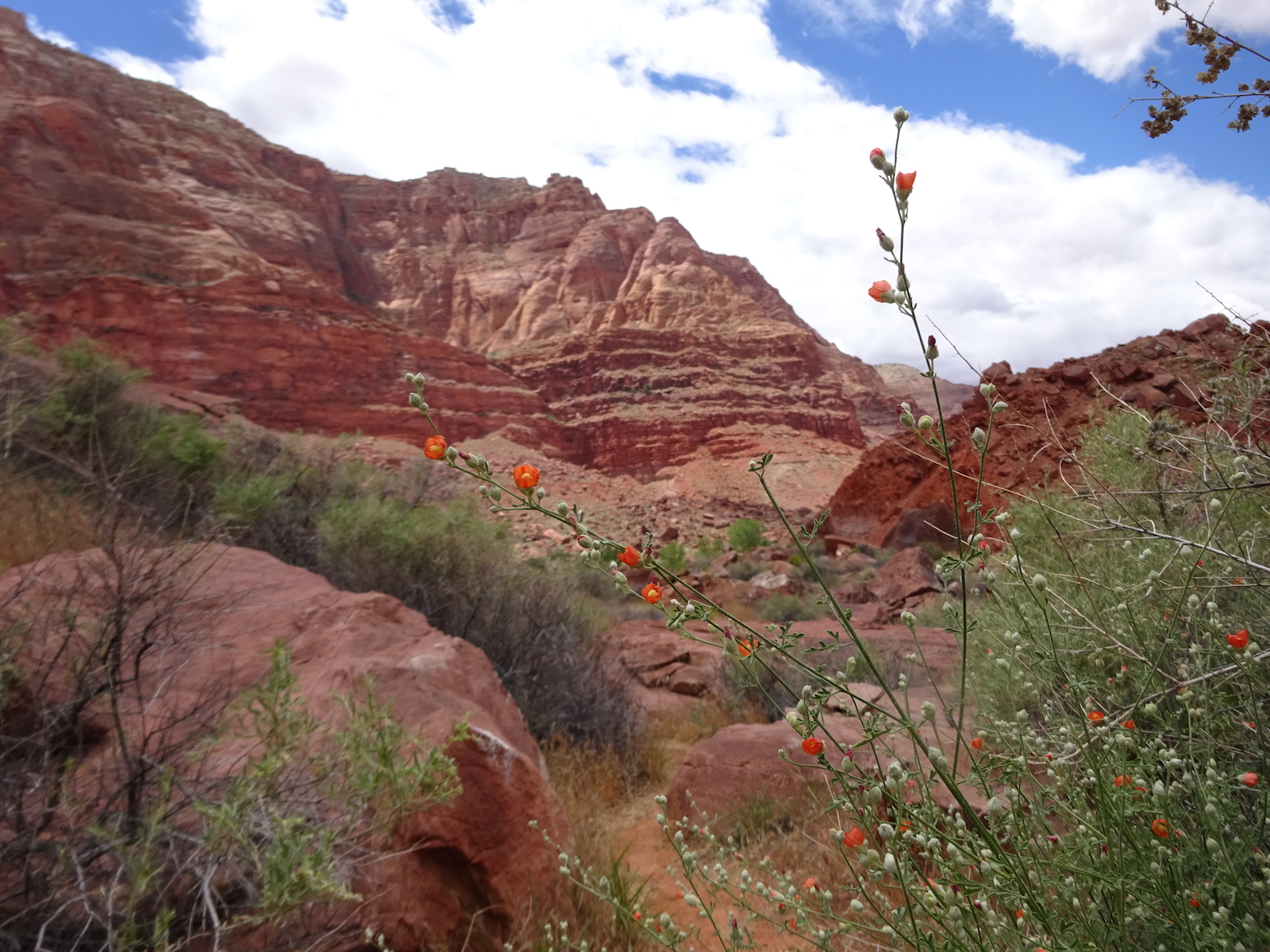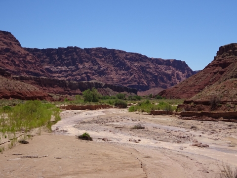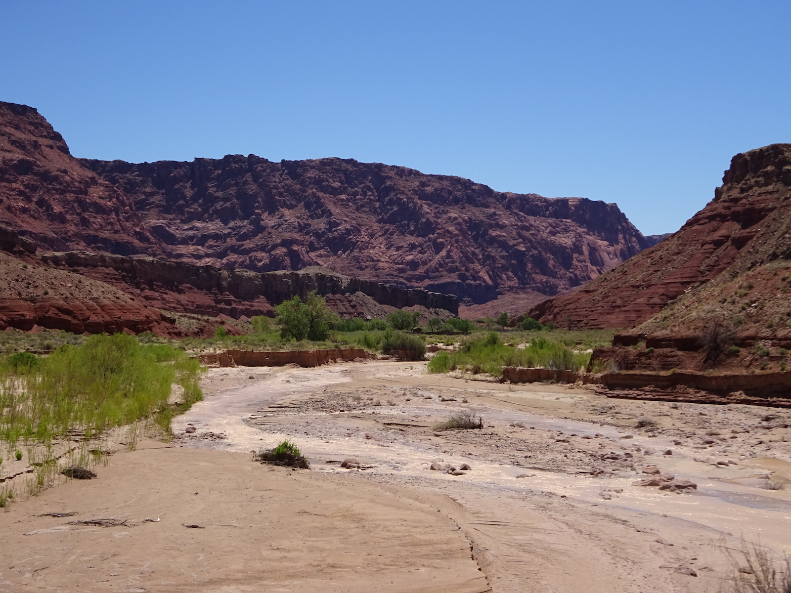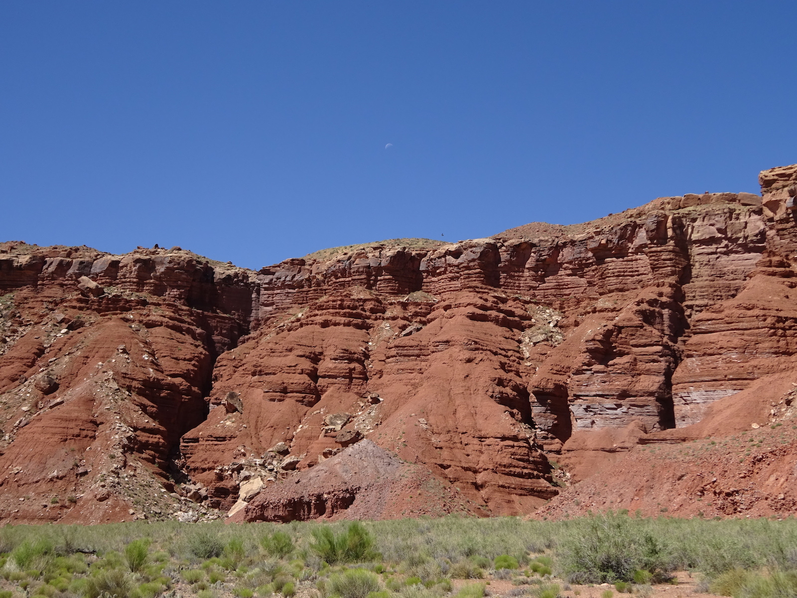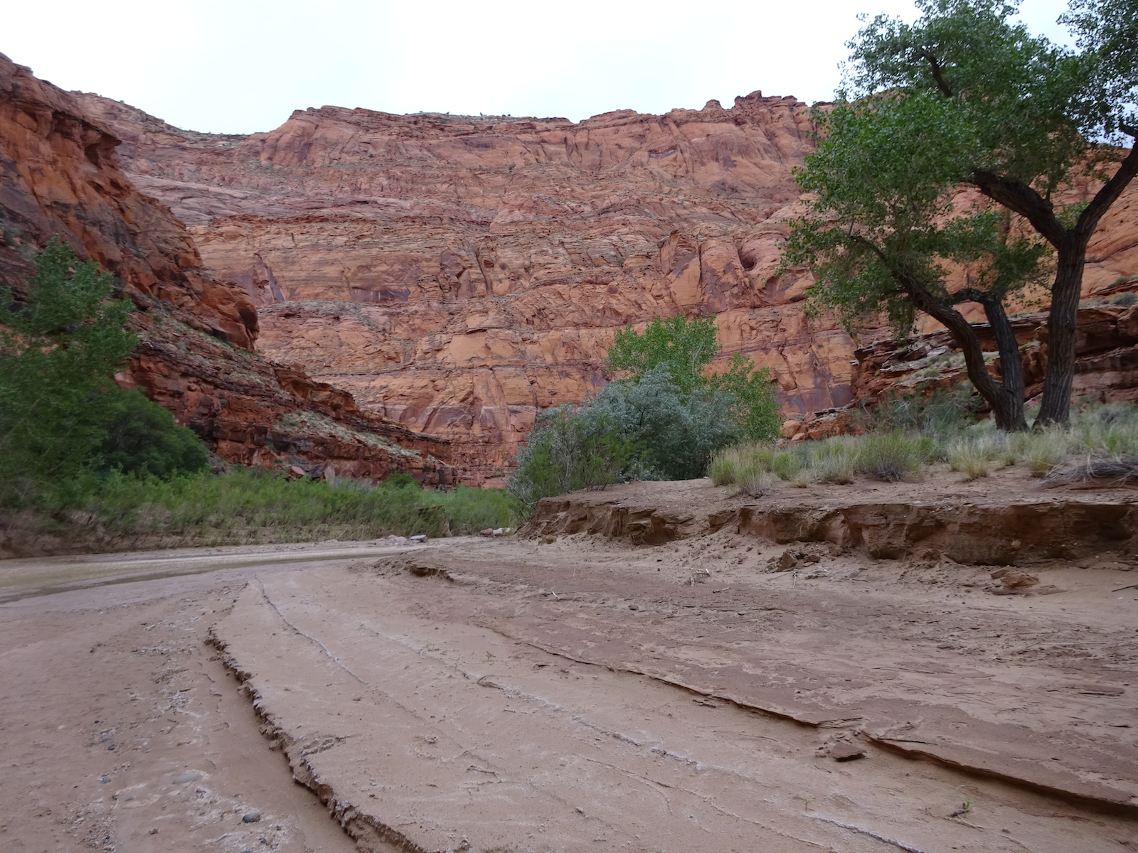 I examined the little dried mud flat where we camped and discovered a rather large, maybe foot-long freshly dead fish with its guts eaten out. I did not have a camera with me at the time. We had seen large Great Blue Herons in the canyon for several days. Apparently there are large fish in the shallow, murky Paria river.