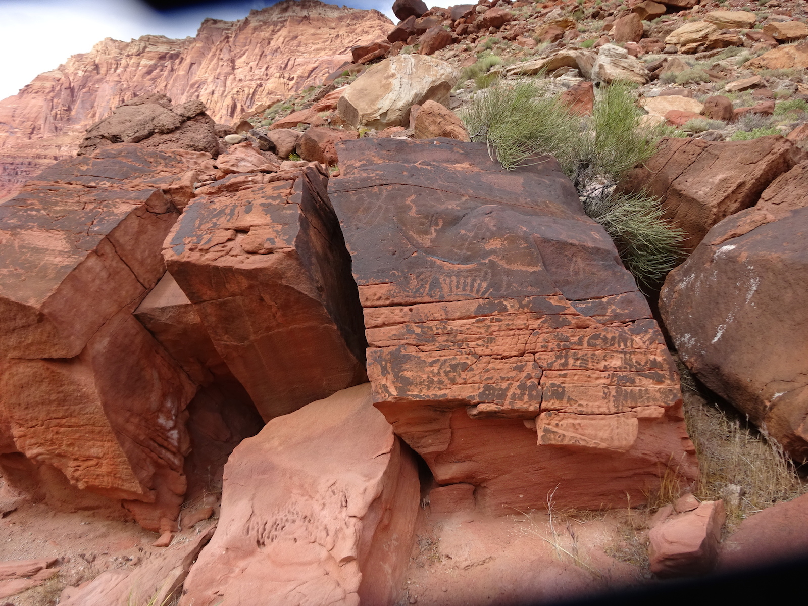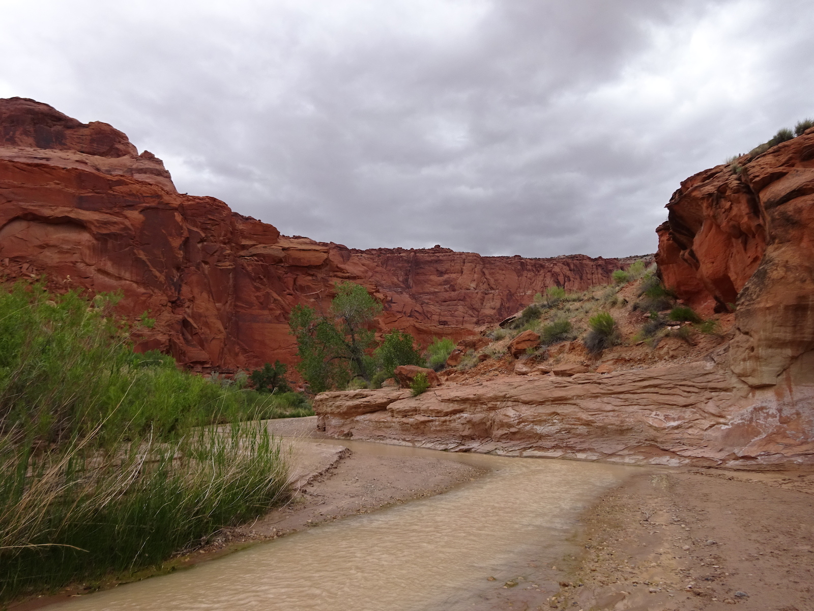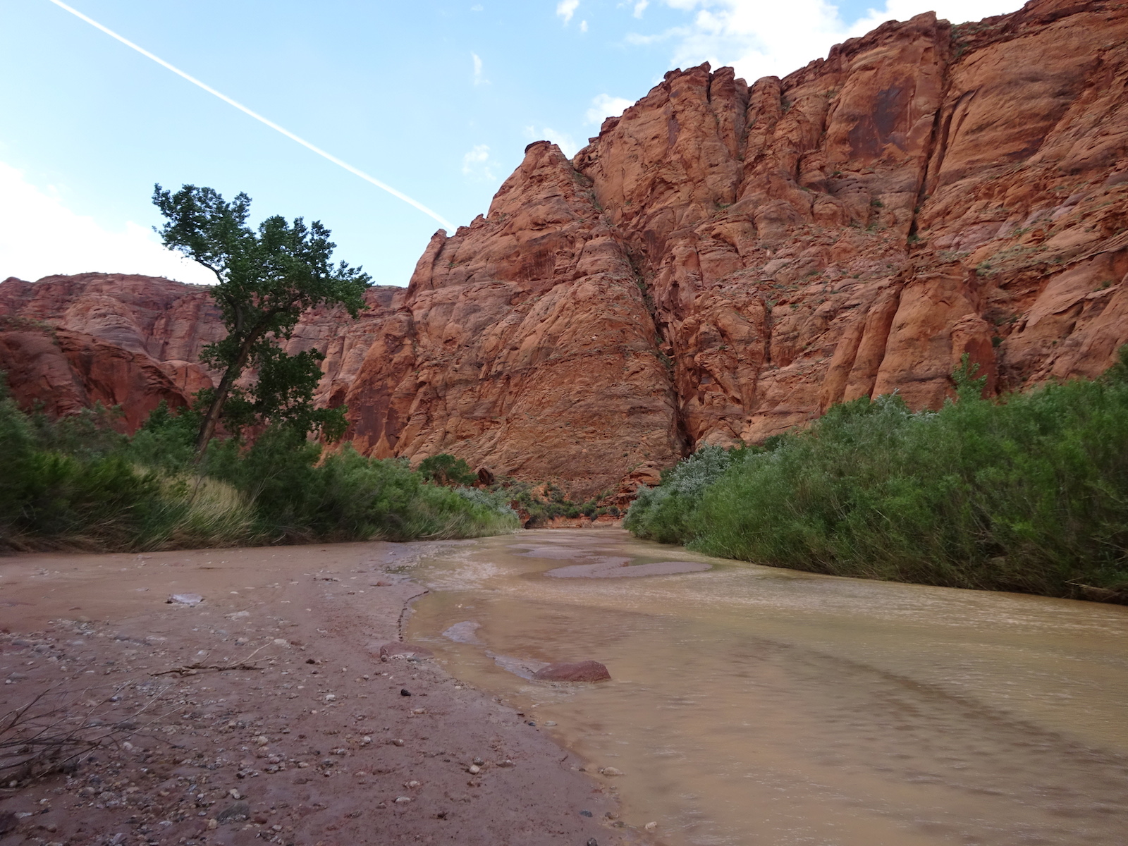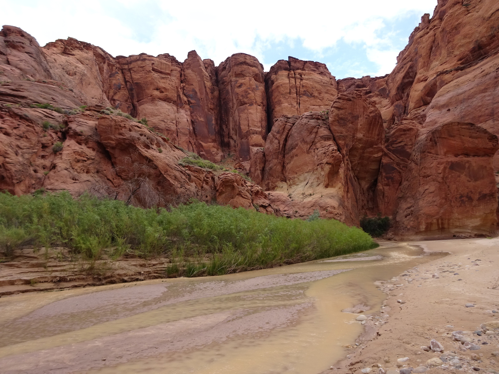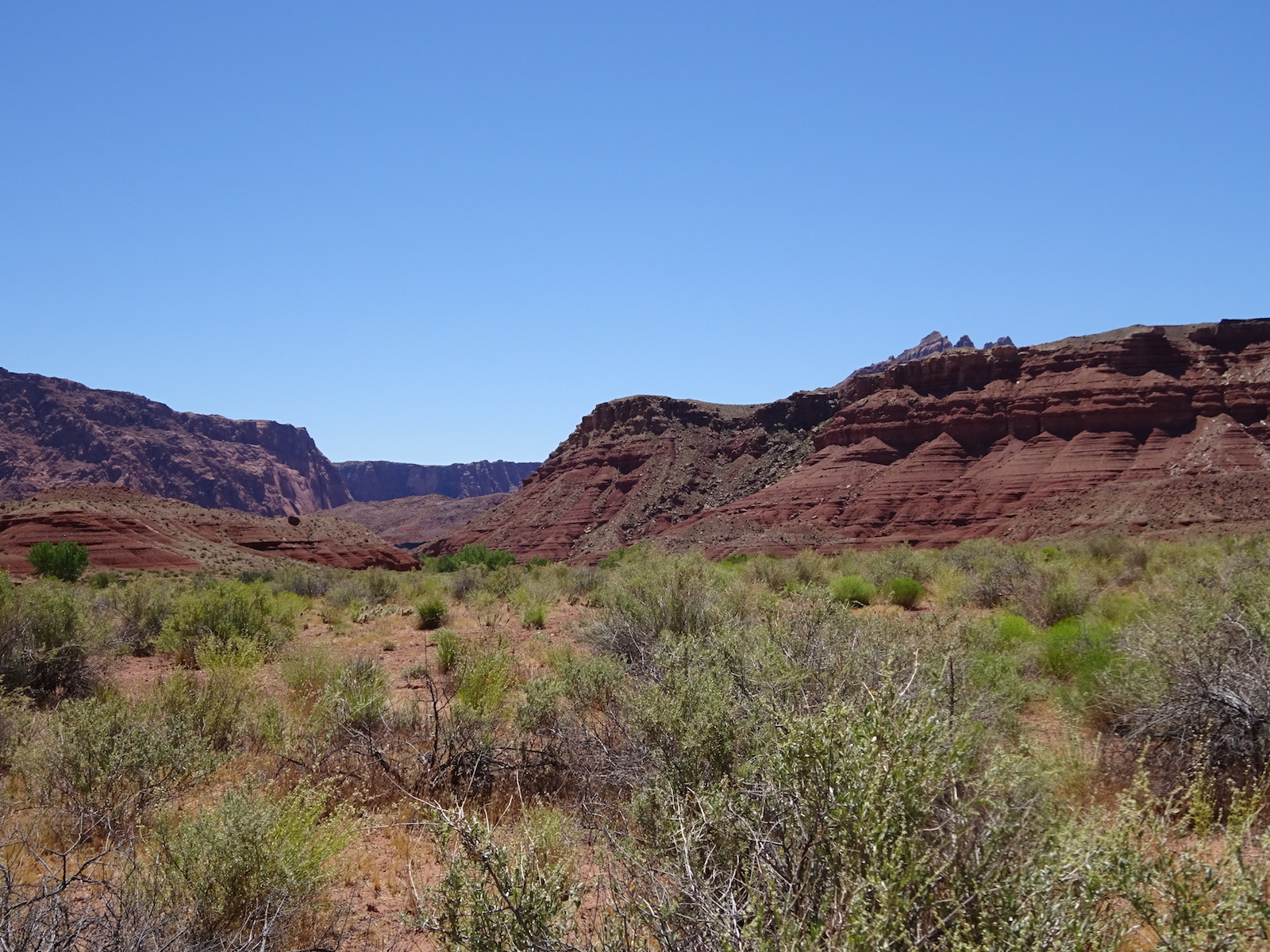 I examined the little dried mud flat where we camped and discovered a rather large, maybe foot-long freshly dead fish with its guts eaten out. I did not have a camera with me at the time. We had seen large Great Blue Herons in the canyon for several days. Apparently there are large fish in the shallow, murky Paria river.