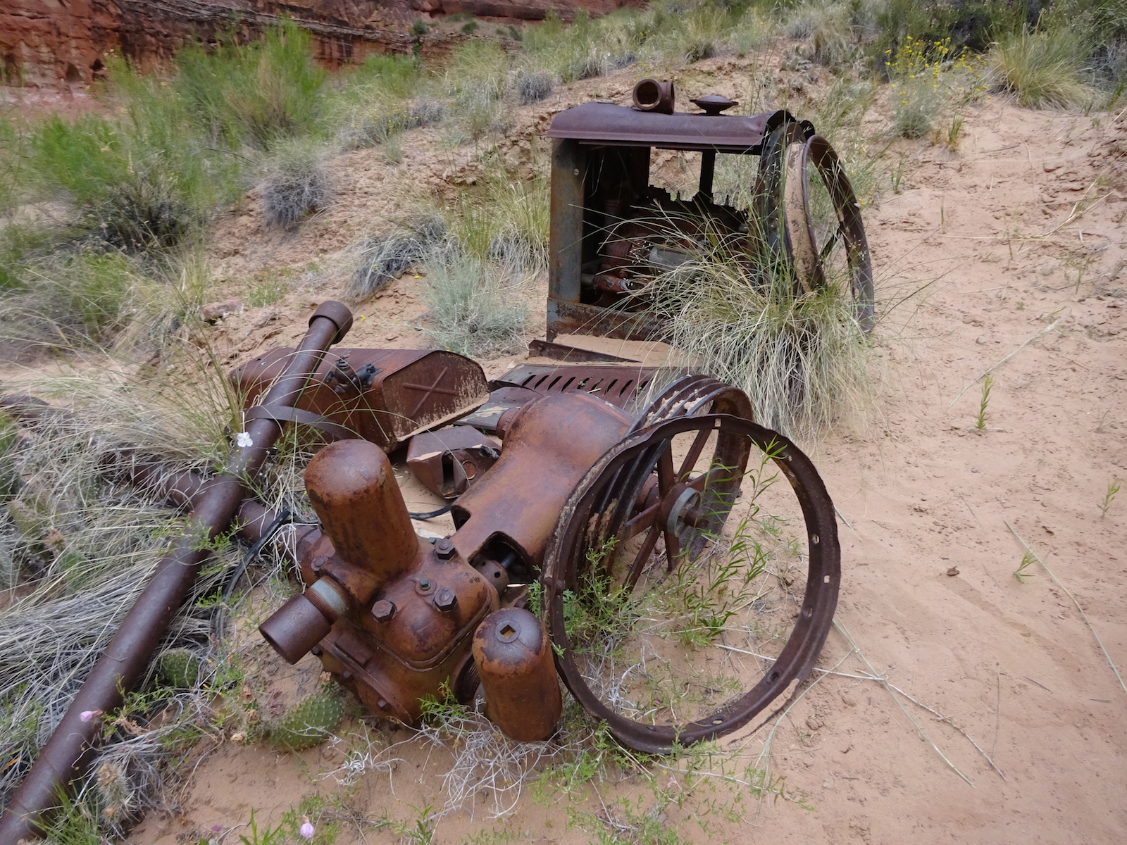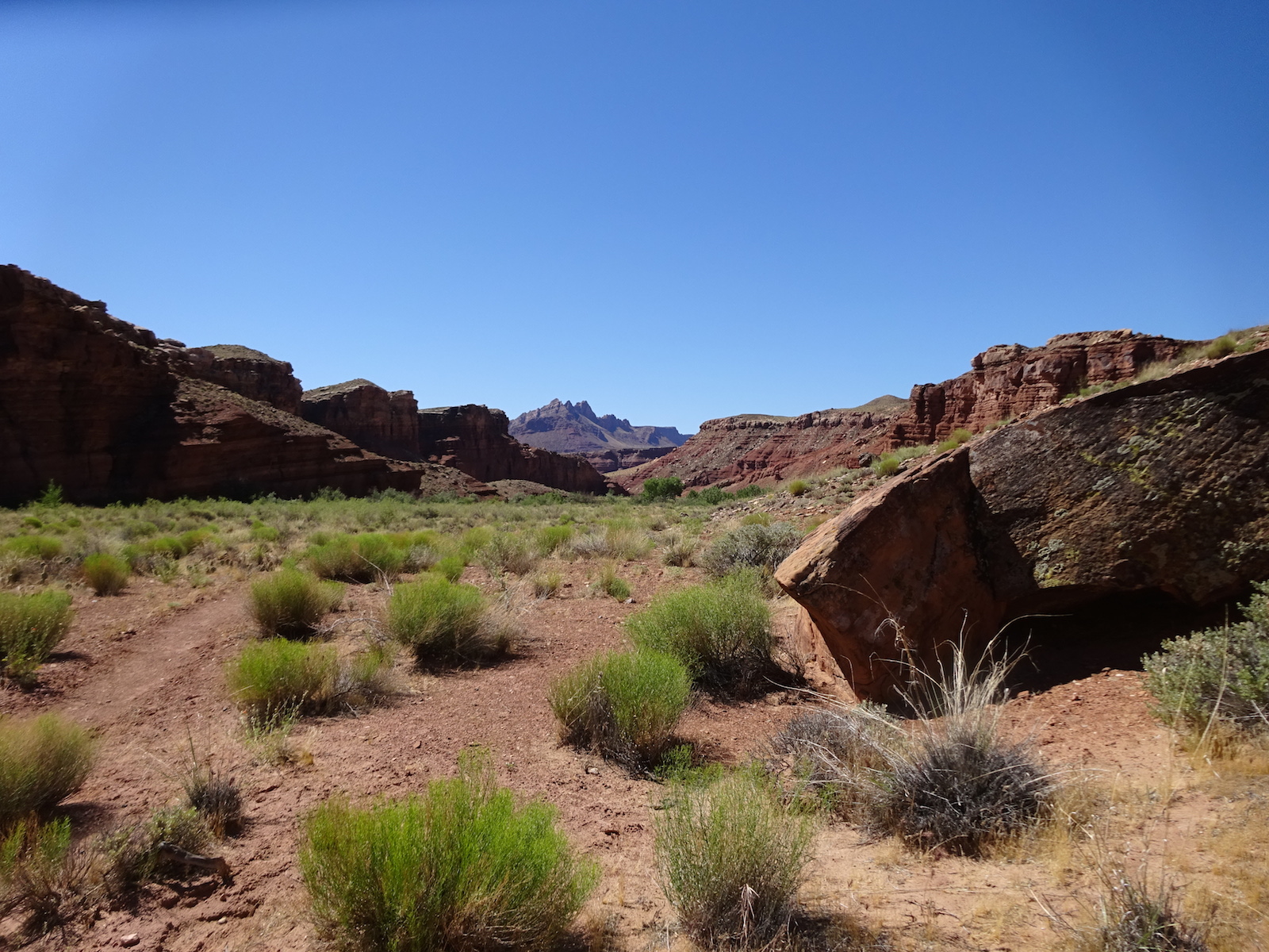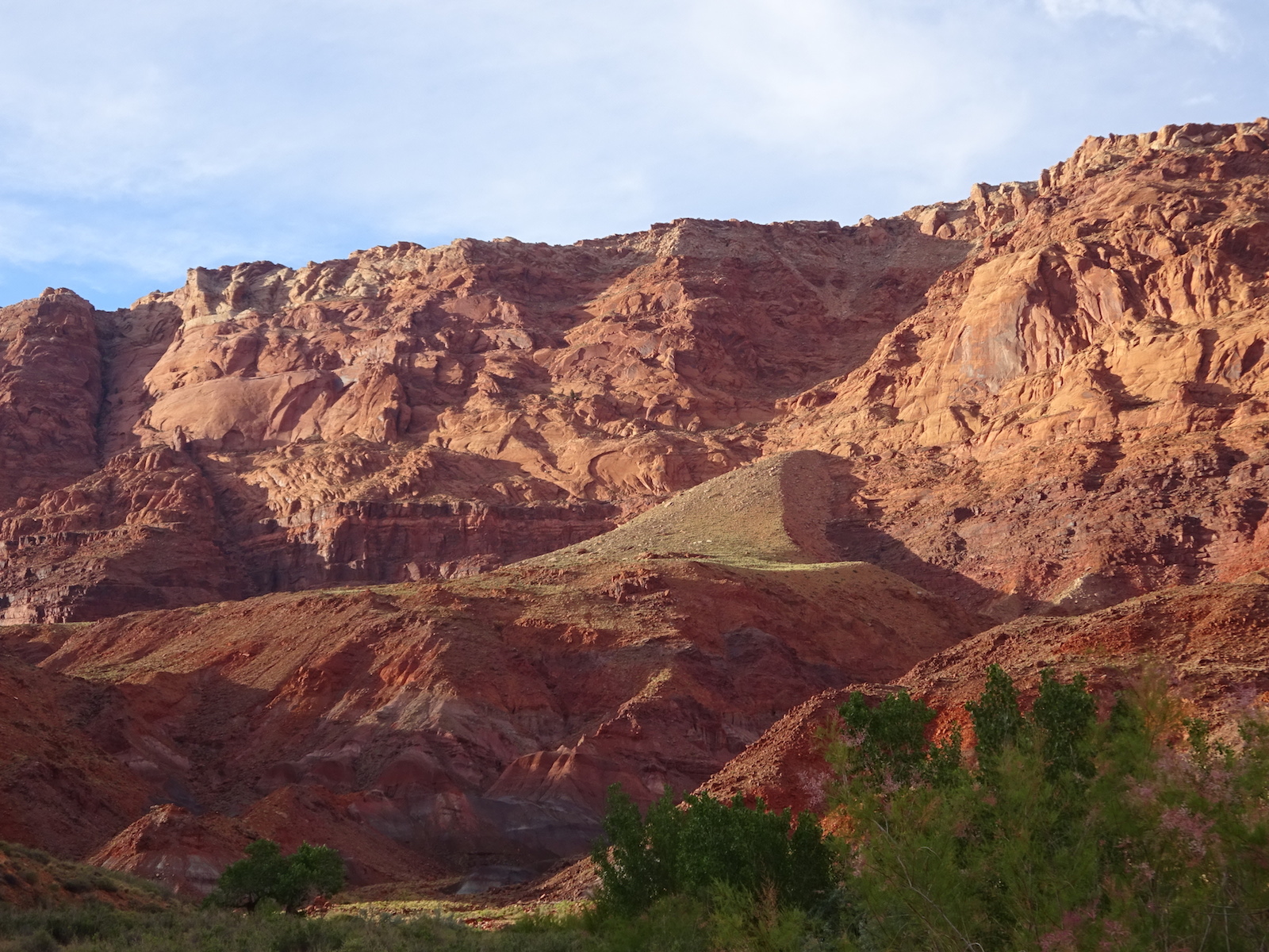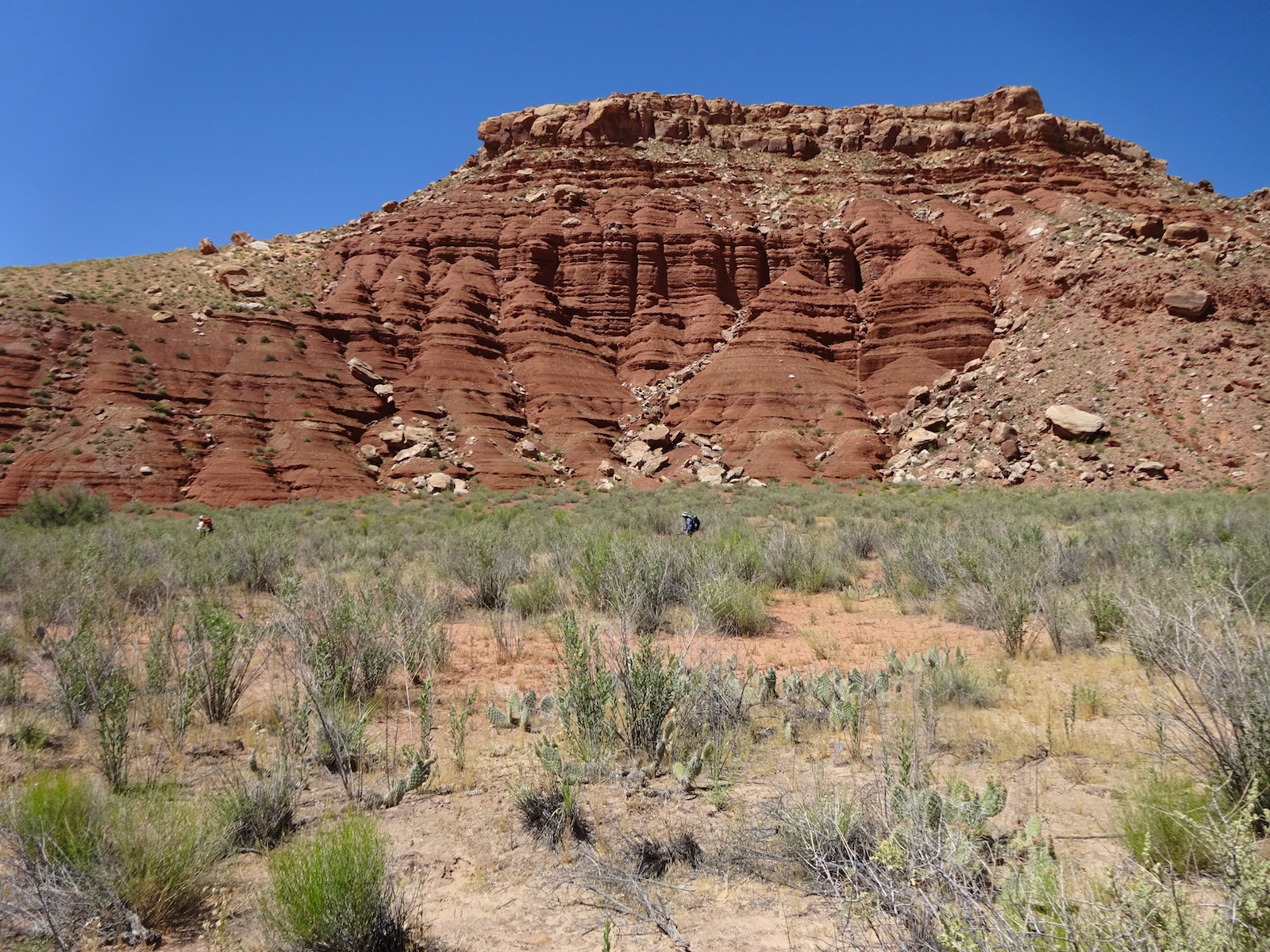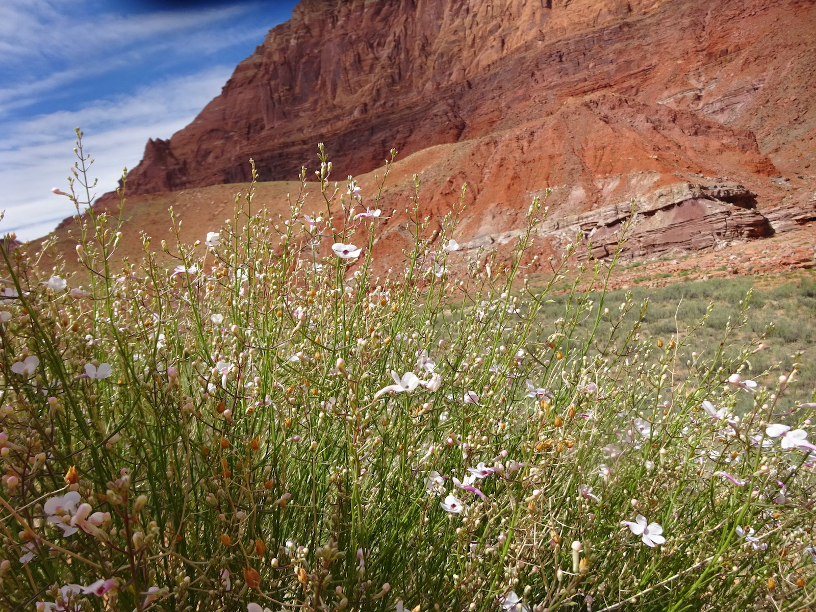 I examined the little dried mud flat where we camped and discovered a rather large, maybe foot-long freshly dead fish with its guts eaten out. I did not have a camera with me at the time. We had seen large Great Blue Herons in the canyon for several days. Apparently there are large fish in the shallow, murky Paria river.