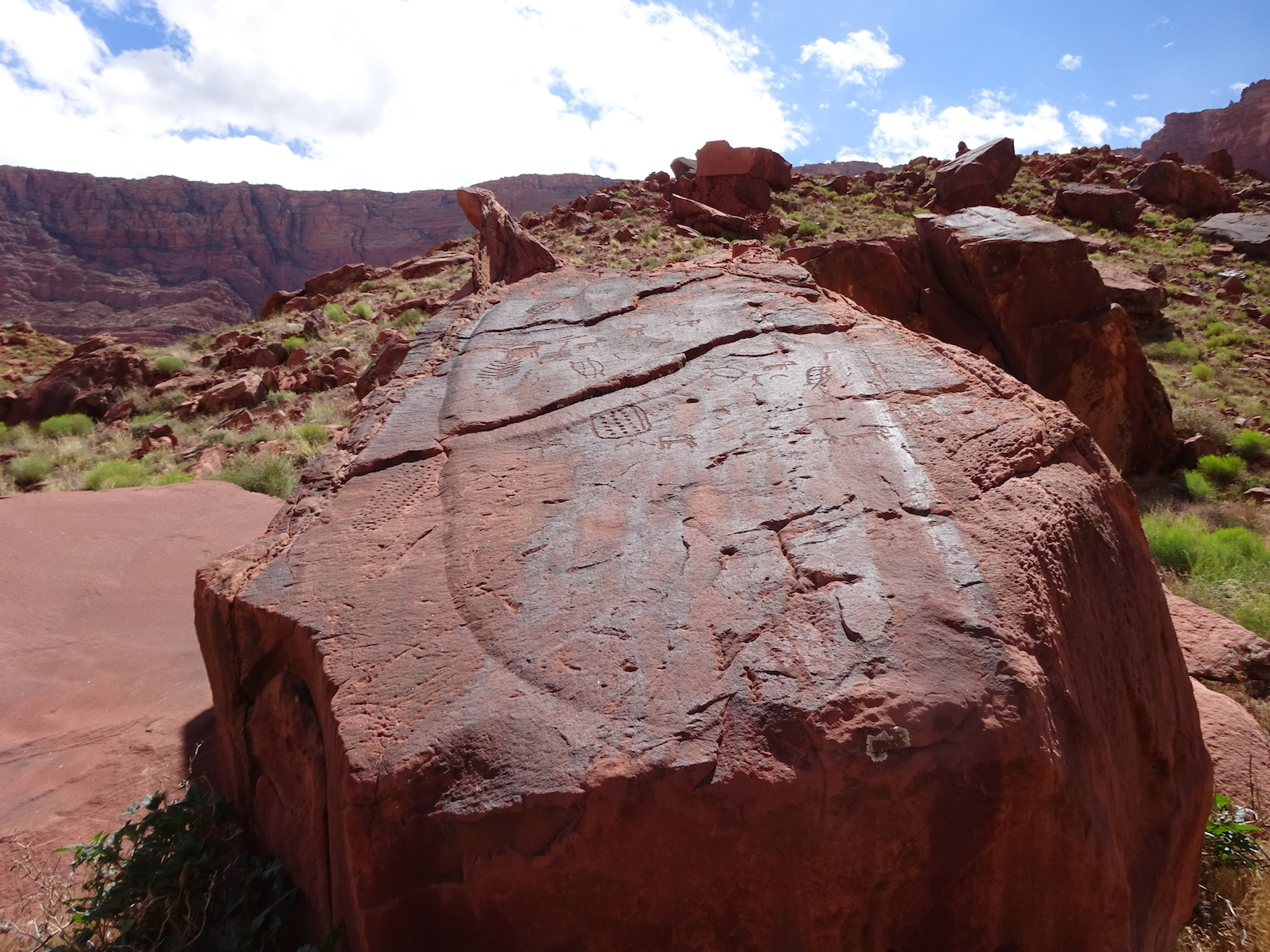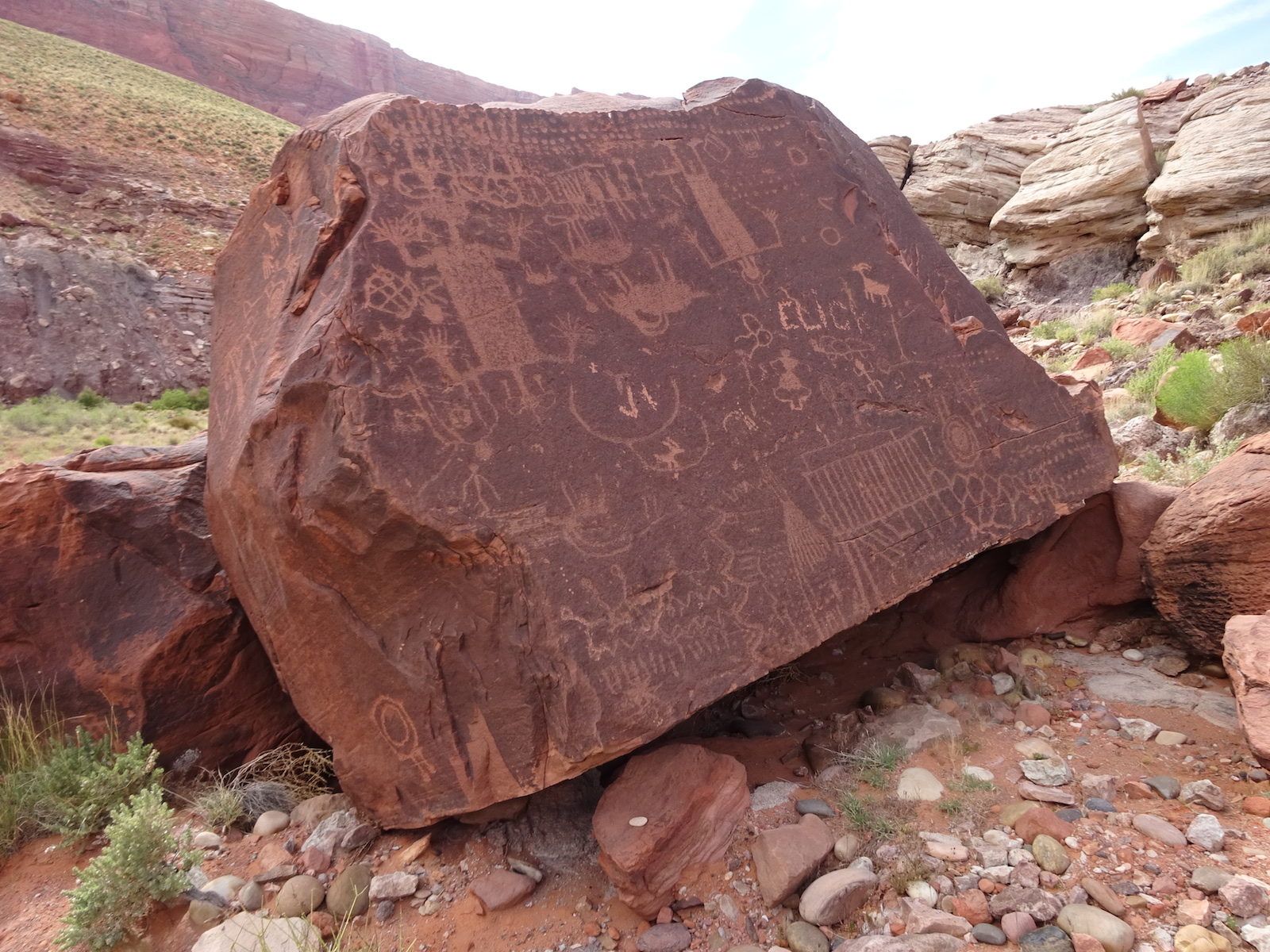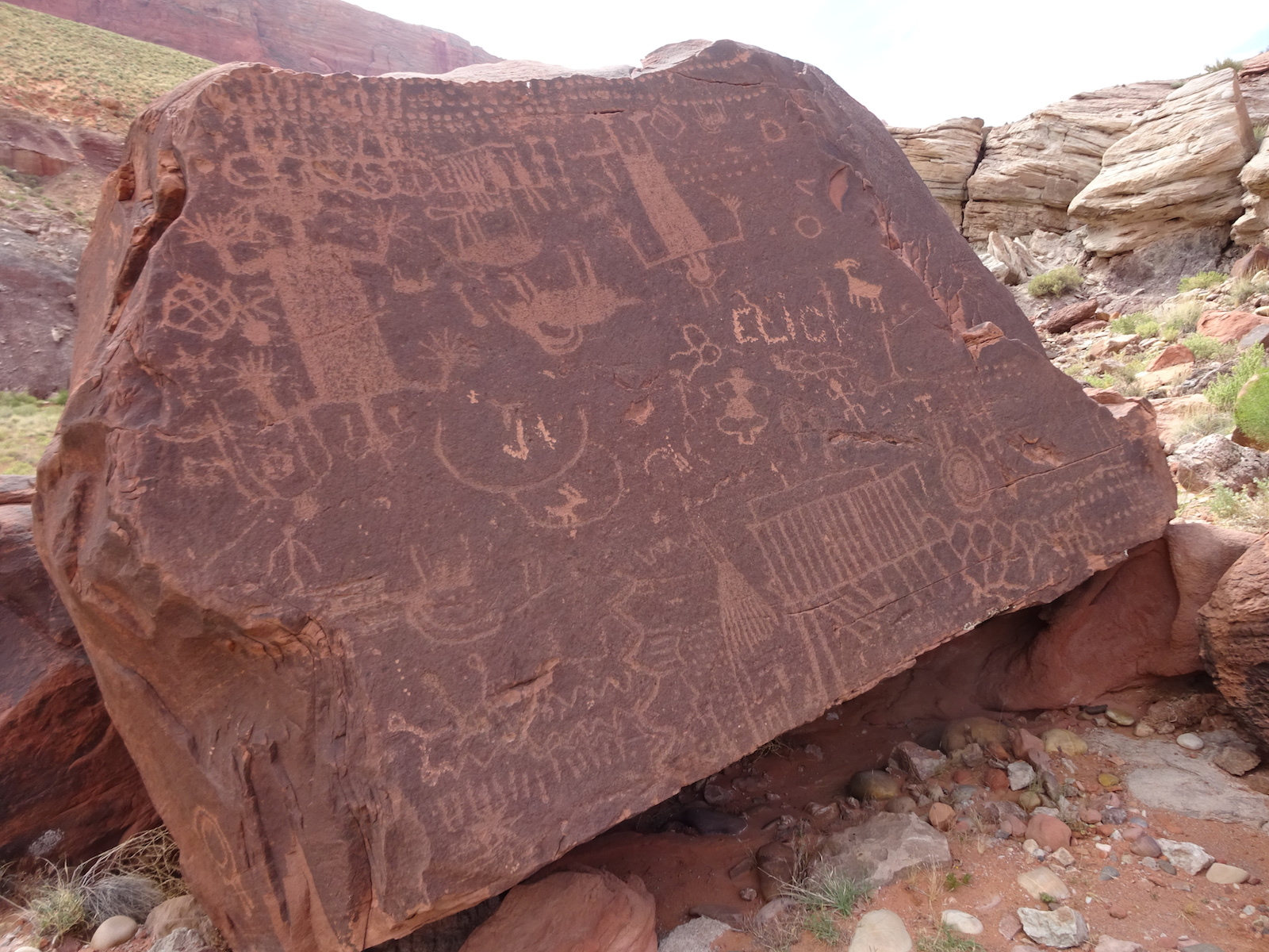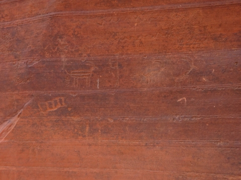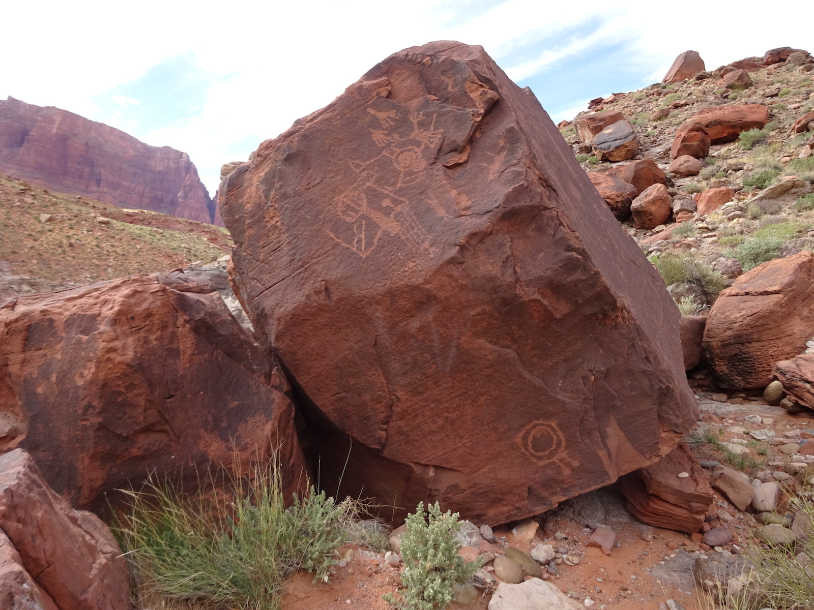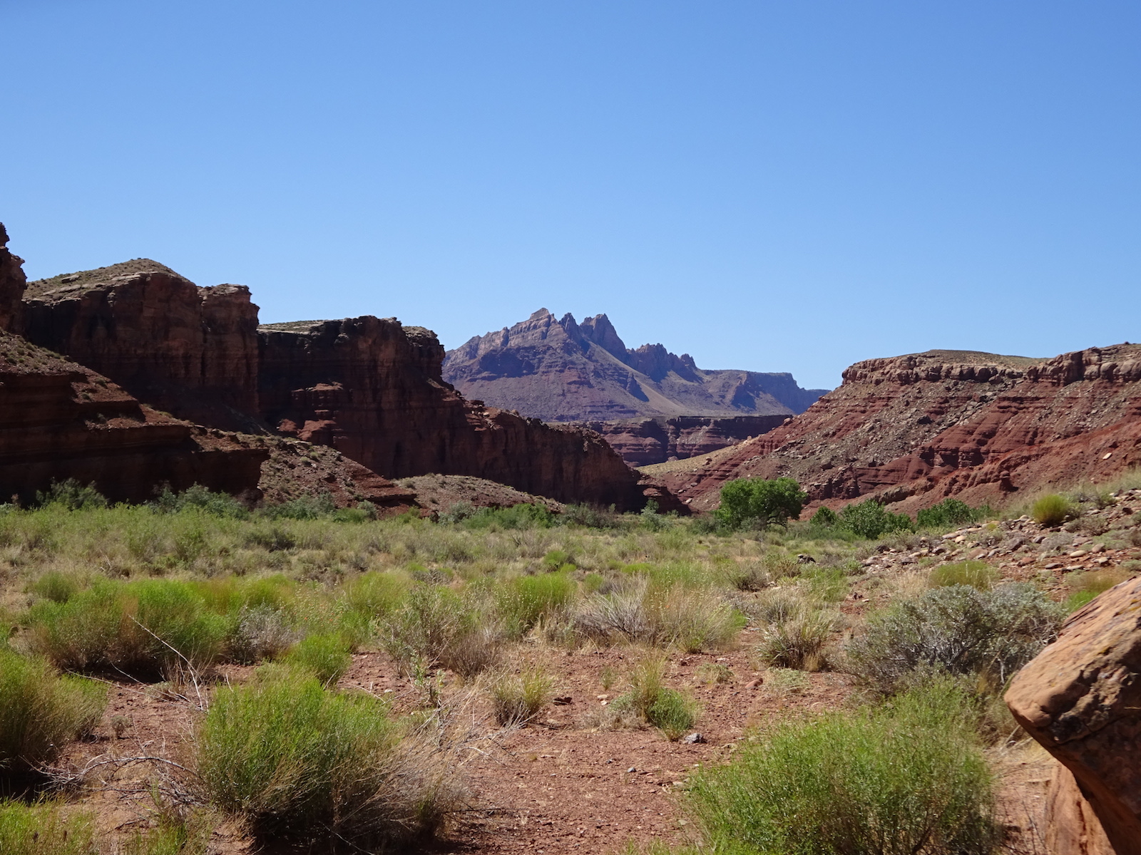 I examined the little dried mud flat where we camped and discovered a rather large, maybe foot-long freshly dead fish with its guts eaten out. I did not have a camera with me at the time. We had seen large Great Blue Herons in the canyon for several days. Apparently there are large fish in the shallow, murky Paria river.