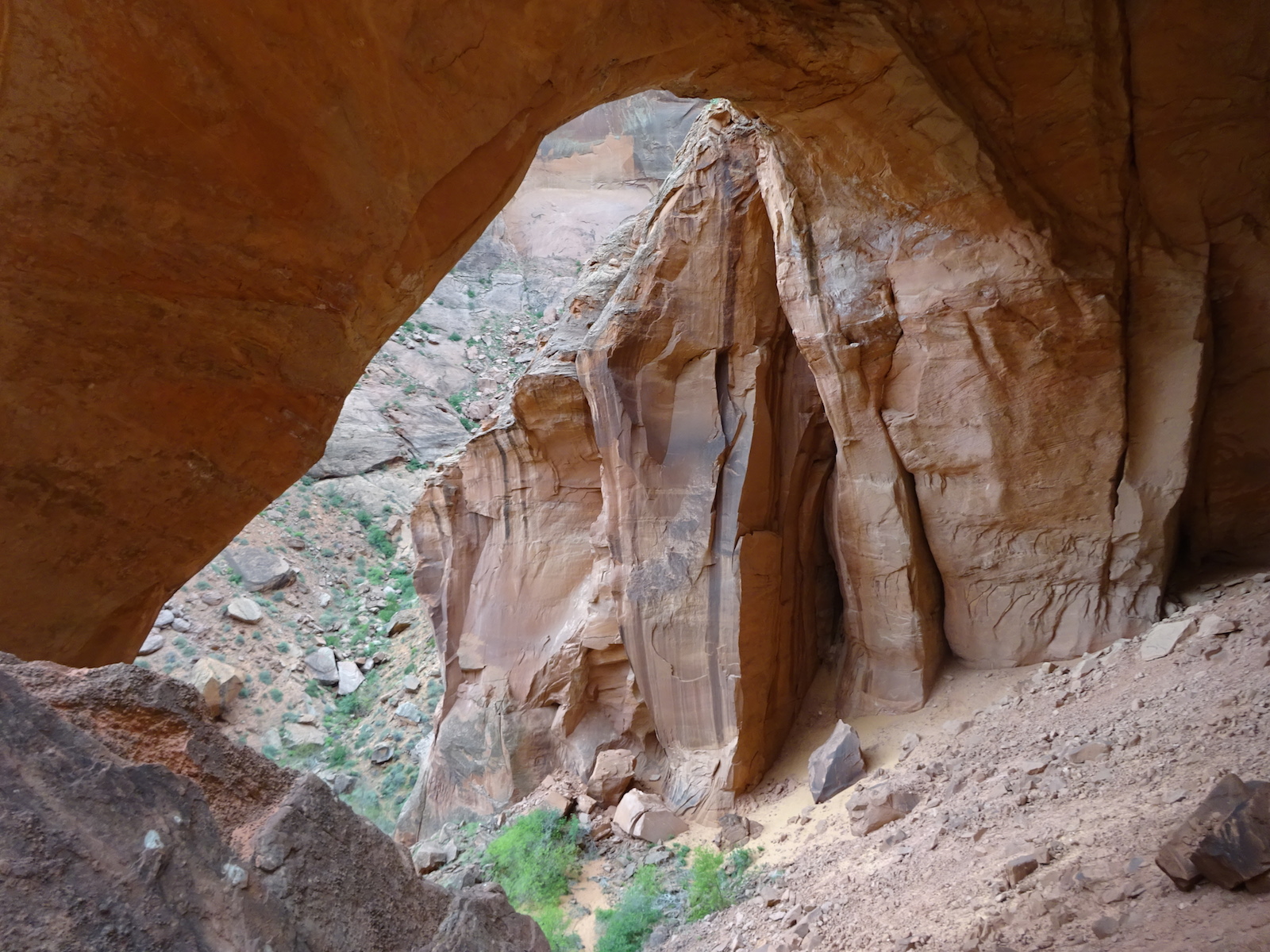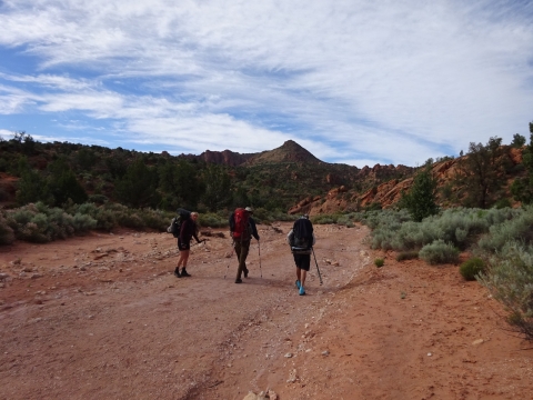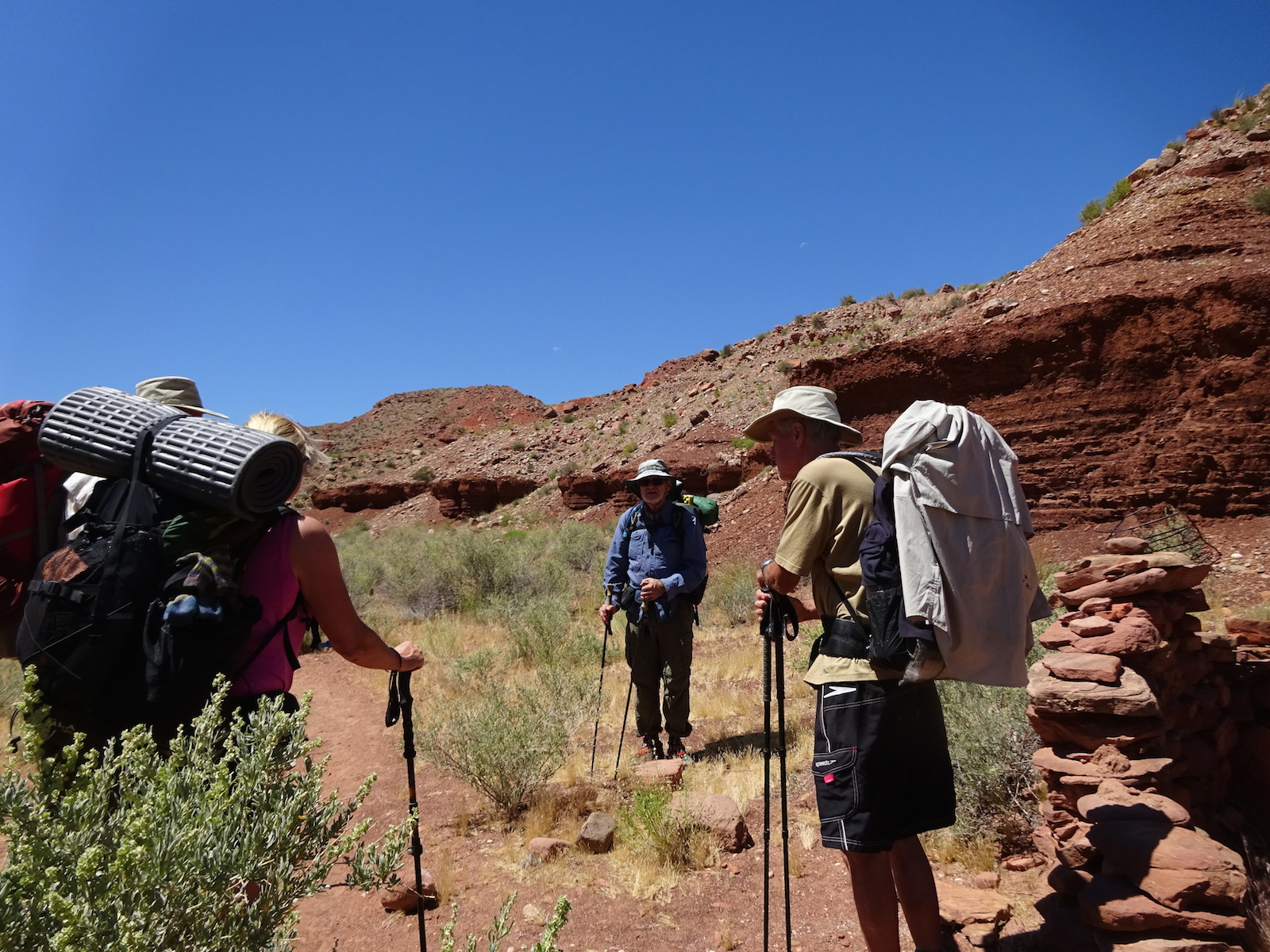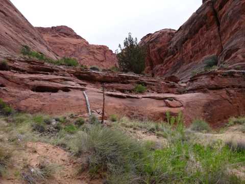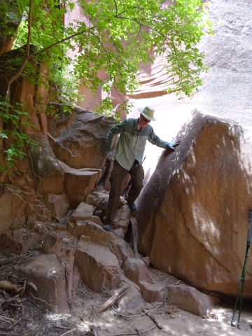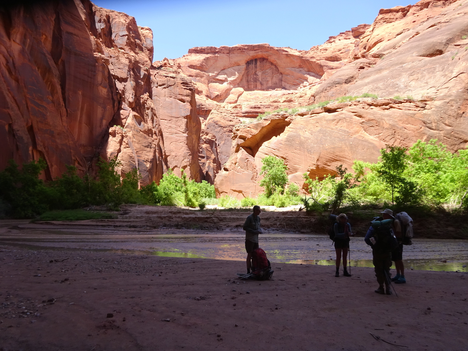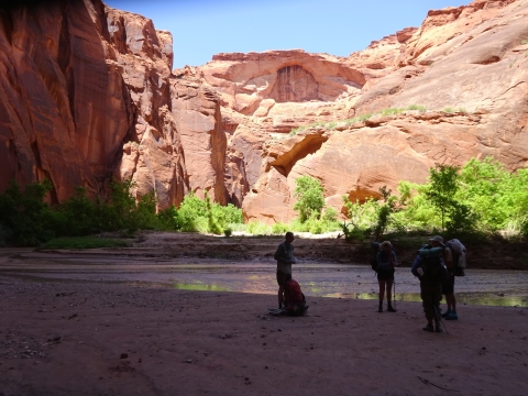 Tony, Paul and I somehow got way ahead of Kristi and Alan. We sat here on this bank to wait for them. We waited a long time and they never showed up. After a while, I consulted my rudimentary map and realized we were near a landmark that indicated a side trail to Wrather Arch, a place Kristi said she wanted us to explore.