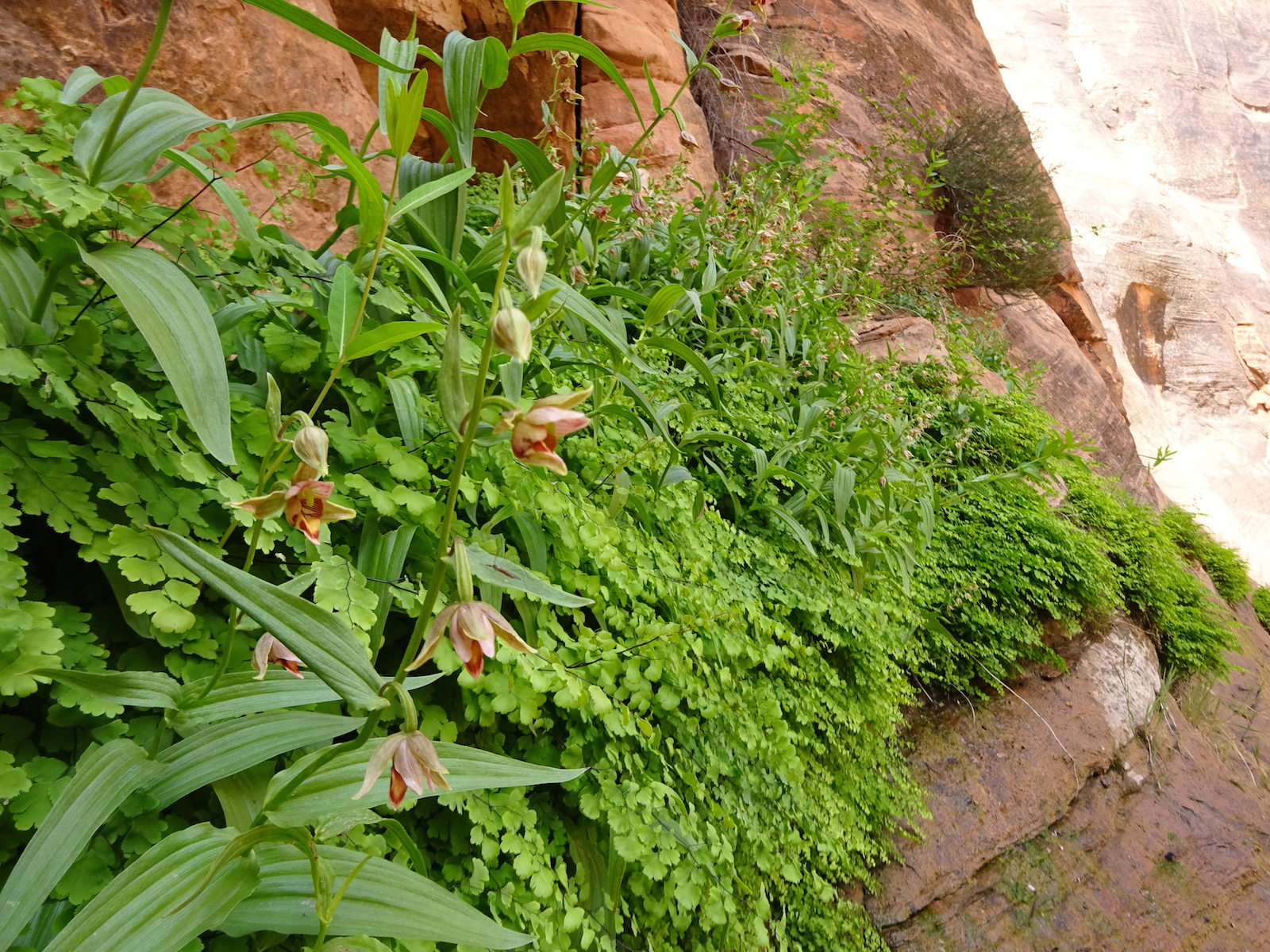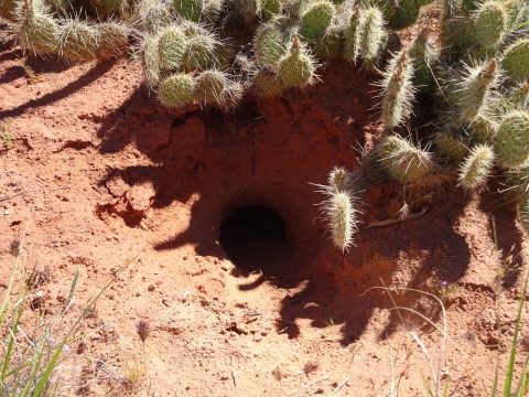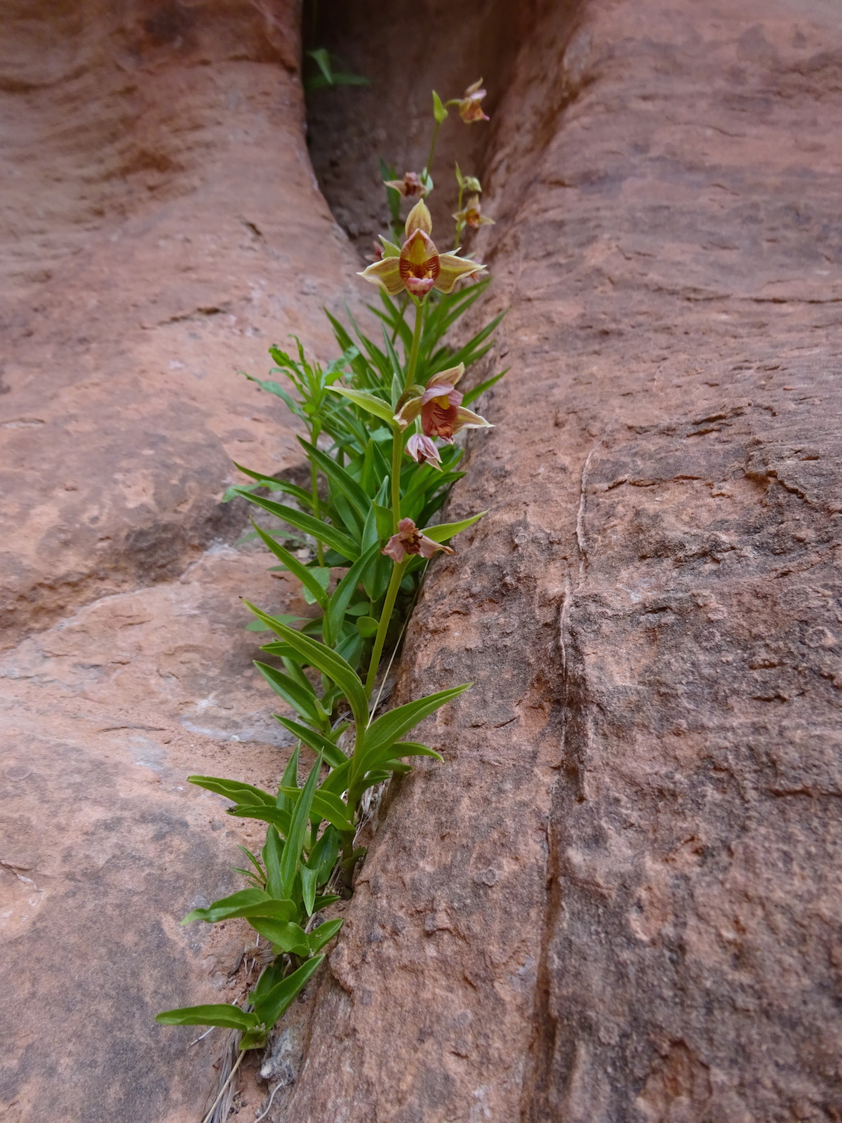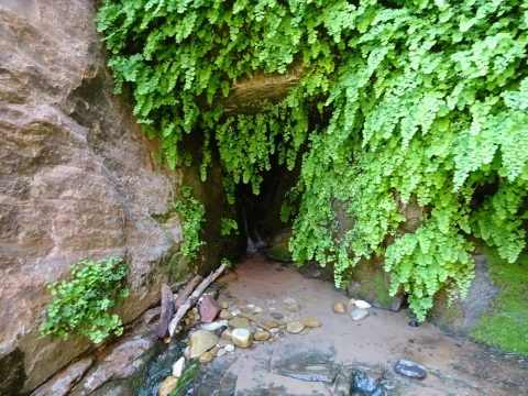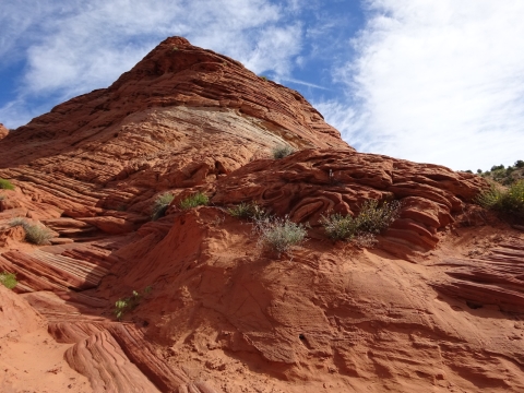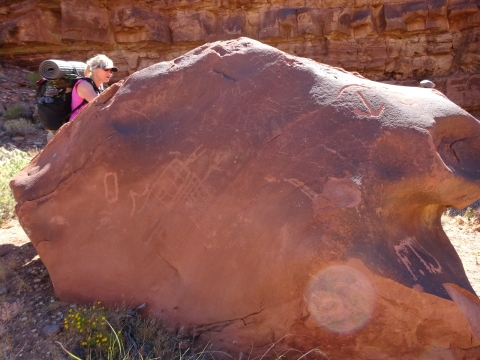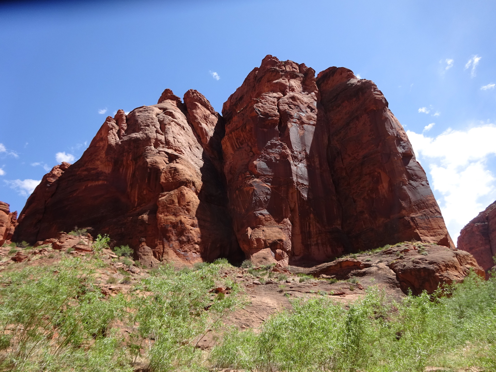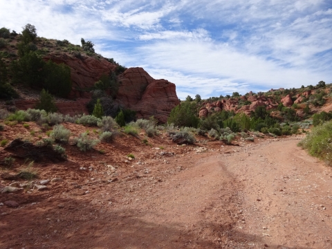 Tony, Paul and I somehow got way ahead of Kristi and Alan. We sat here on this bank to wait for them. We waited a long time and they never showed up. After a while, I consulted my rudimentary map and realized we were near a landmark that indicated a side trail to Wrather Arch, a place Kristi said she wanted us to explore.
