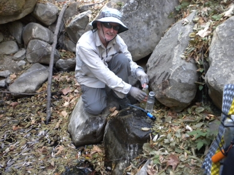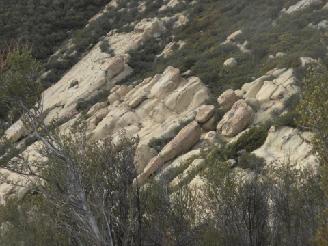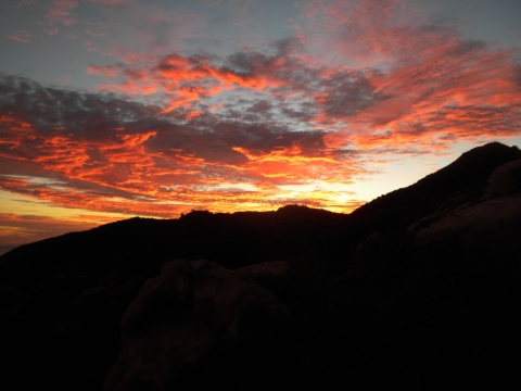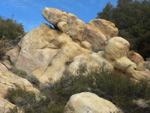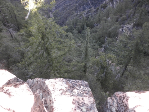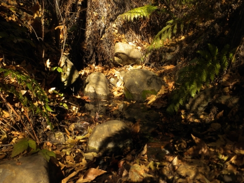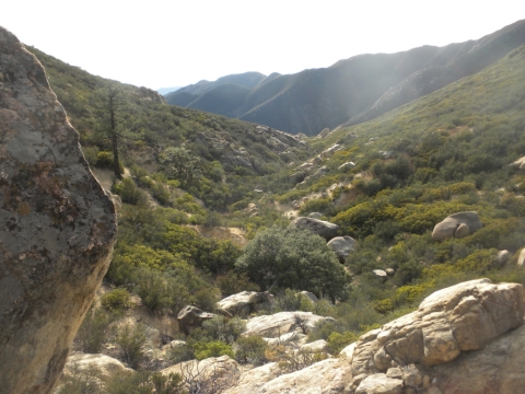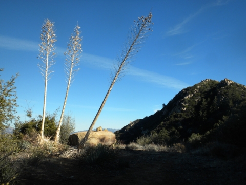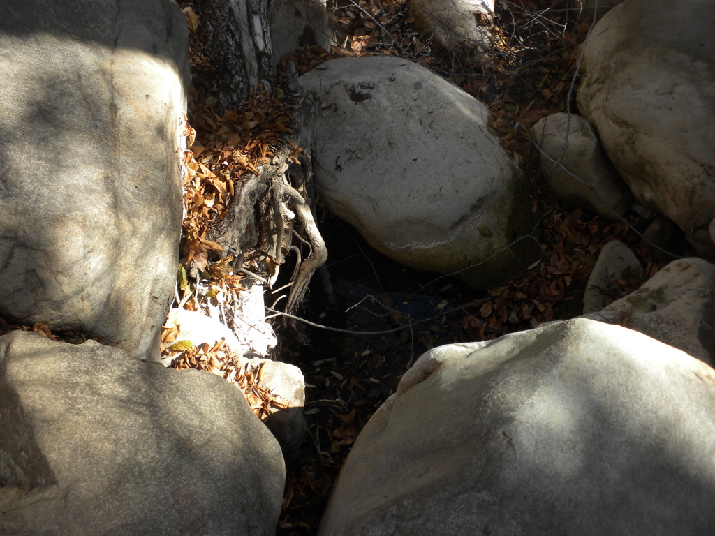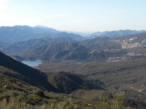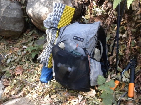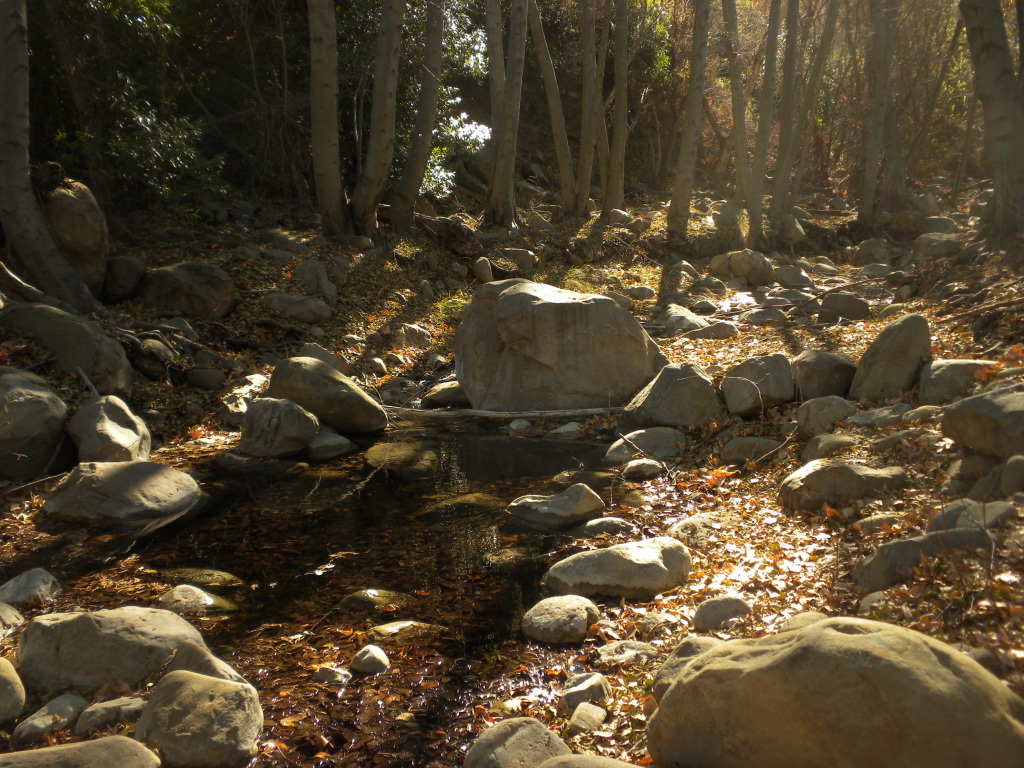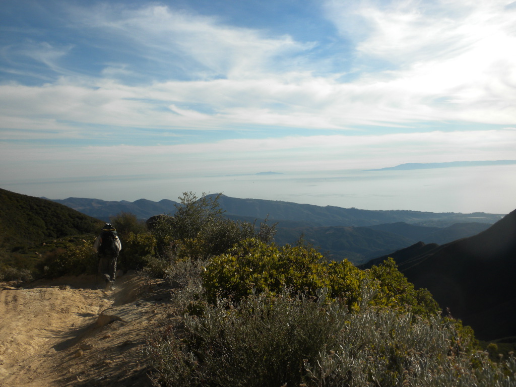 For the three day weekend, TrailHacker and I went up to the Ocean View Trail. We started at the Matillija trailhead. In this drought we were interested in how much water was on the trail. We found a deep pool at one of the creek crossings along the Murrietta Trail. There was no water at Murrietta camp. Later on in this series I took a picture of a spot where the creek had lots of water.