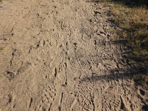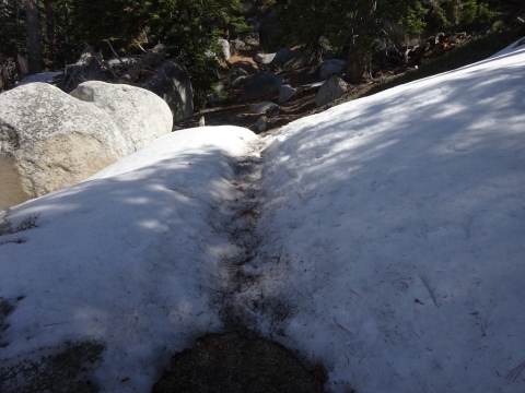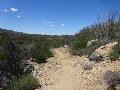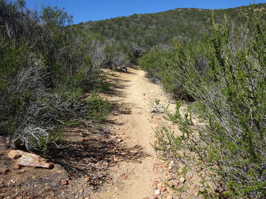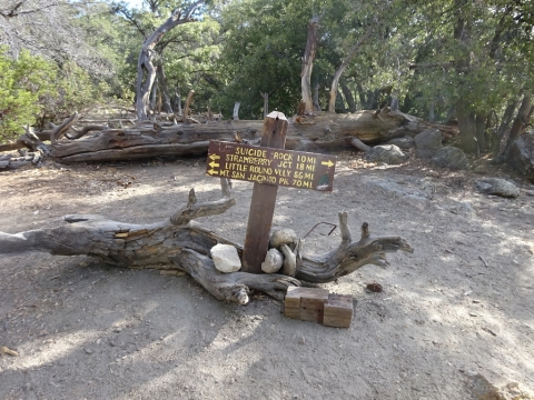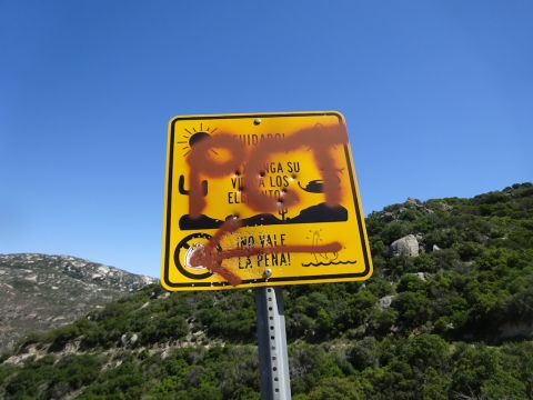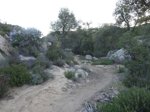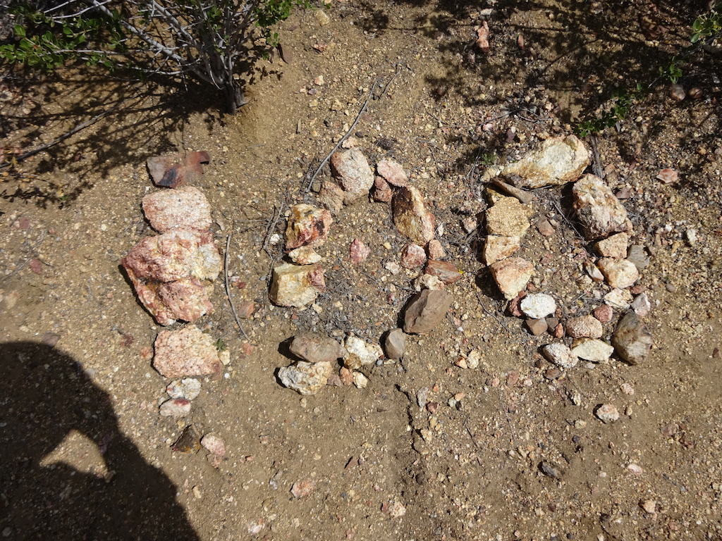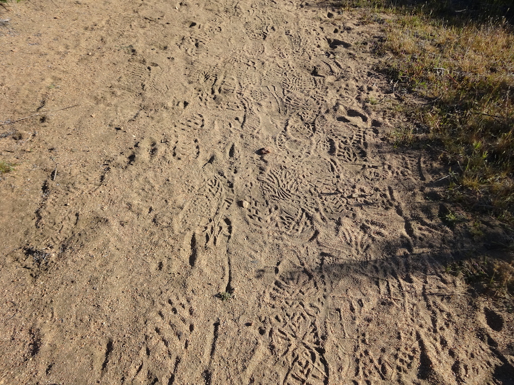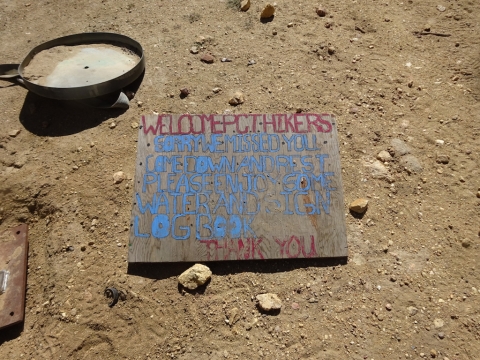 Somewhere in this canyon I came upon P9. I had dinner with P9 in Julian. I guess he had not taken a zero day in Julian like me. P9 was a nice retired man, an engineer, I think. He had been writing his name in the dirt all along the trail. I thought this was strange. Usually you think young kids do stuff like that, but he was a middle-aged man. It's not exactly graffiti or vandalism, but it is sort of annoying. Why would he do it?