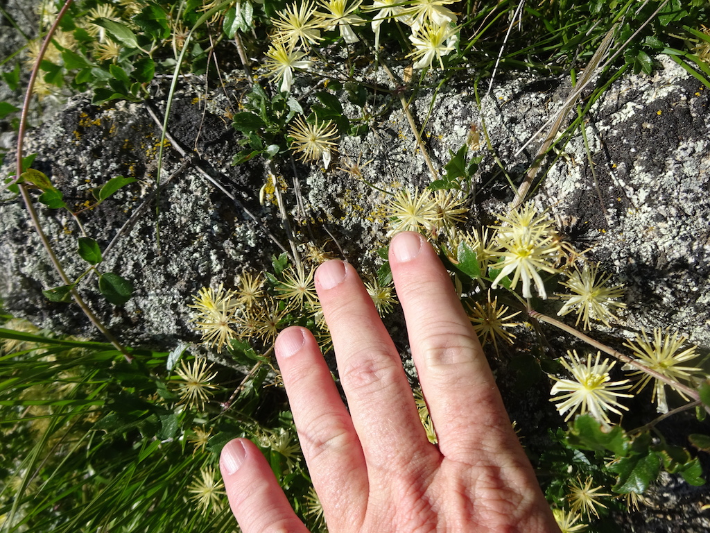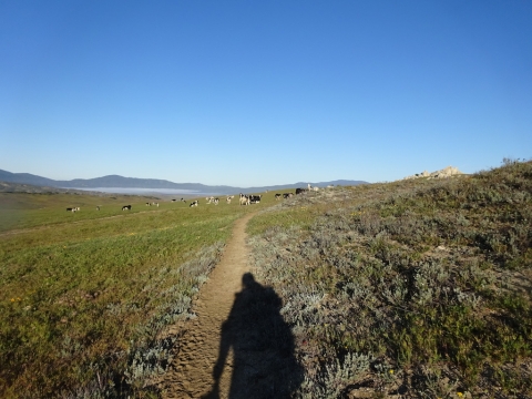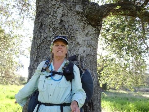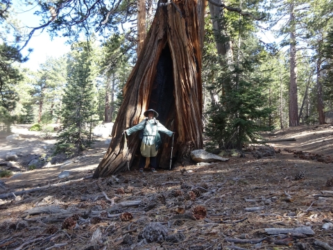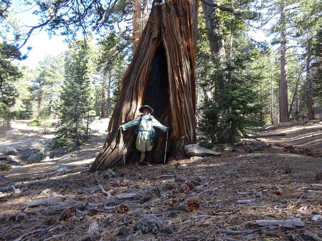 I'm wearing a hiking skirt I sewed myself and cut-off pant legs as gaiters to protect from sunburn and brush. The hiking skirt ended up being my favorite piece of