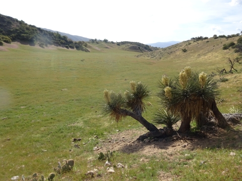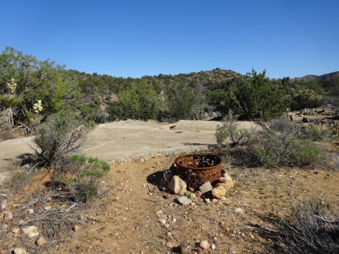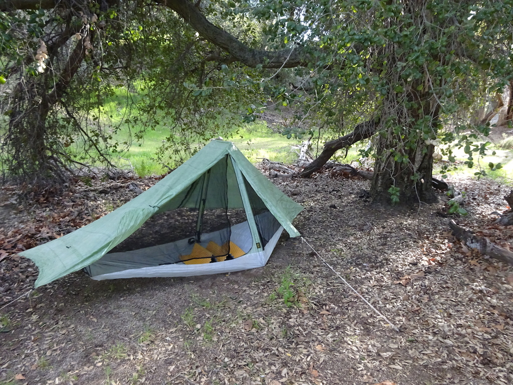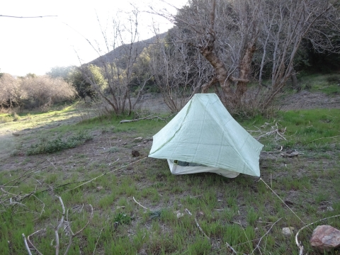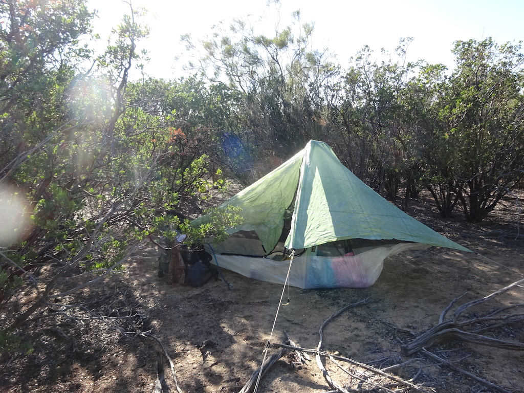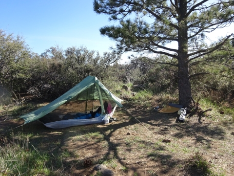 I finally arrived at the water at Long Canyon. There was camping available under that tree. I rested here a while and saw Tim arrive and start setting up his tent. I continued on.