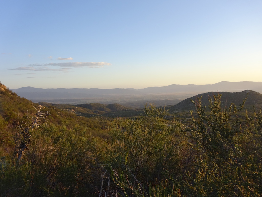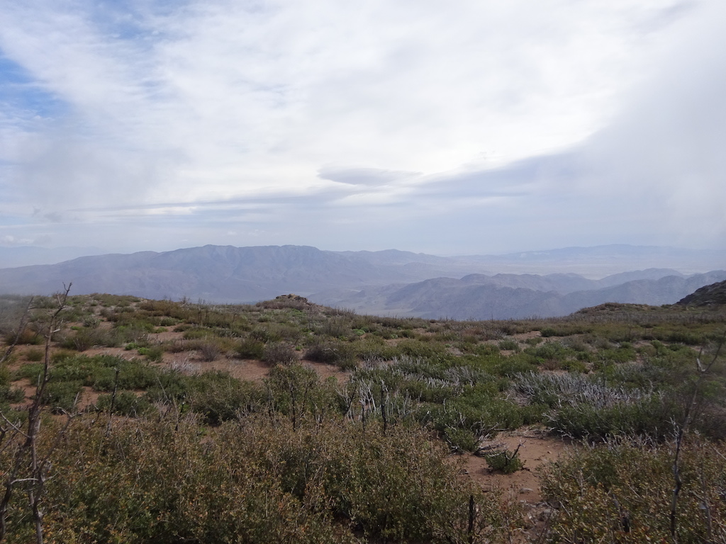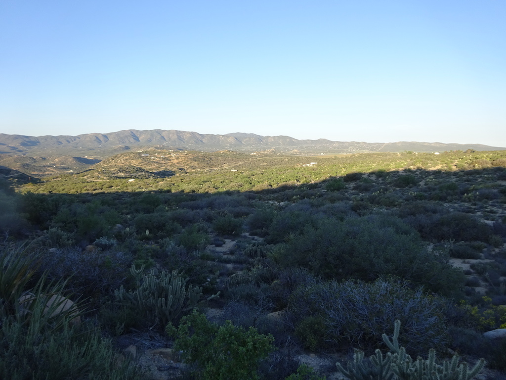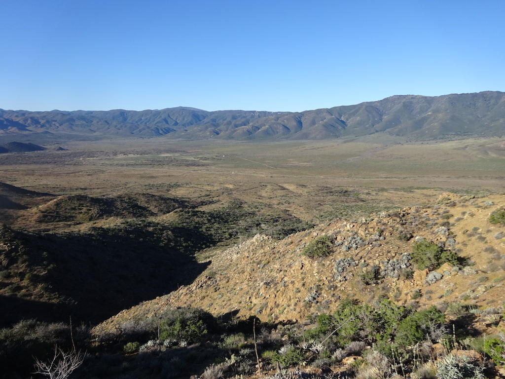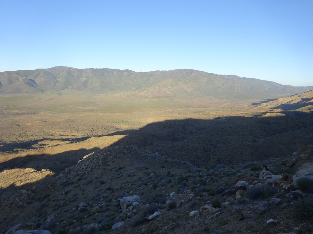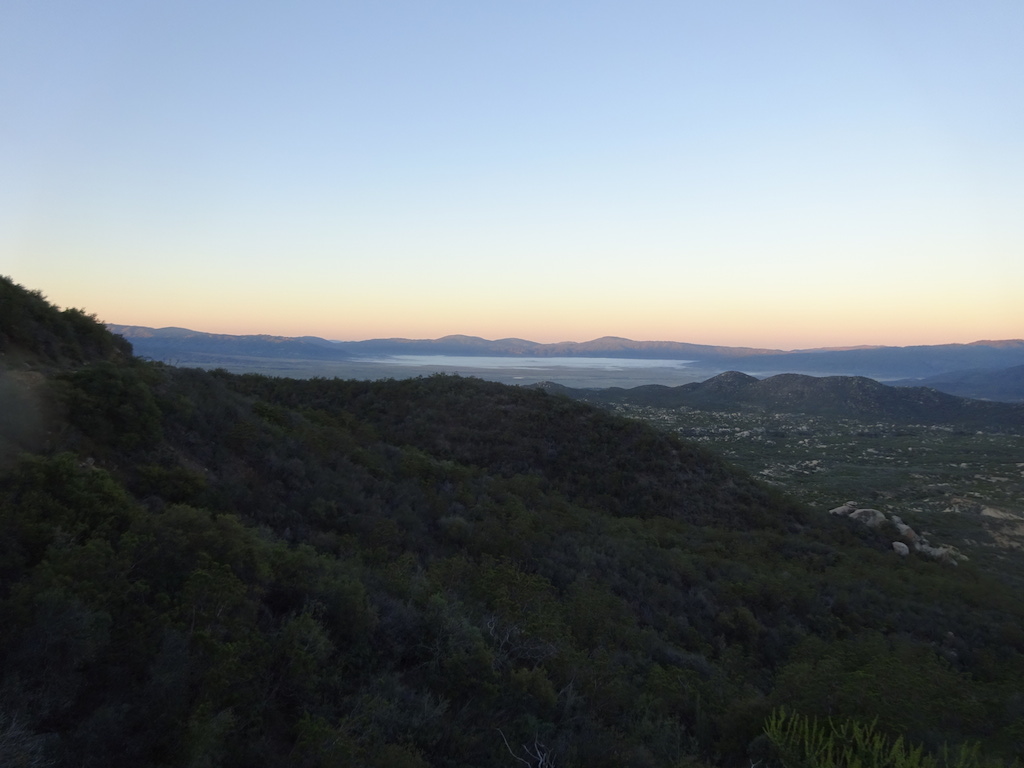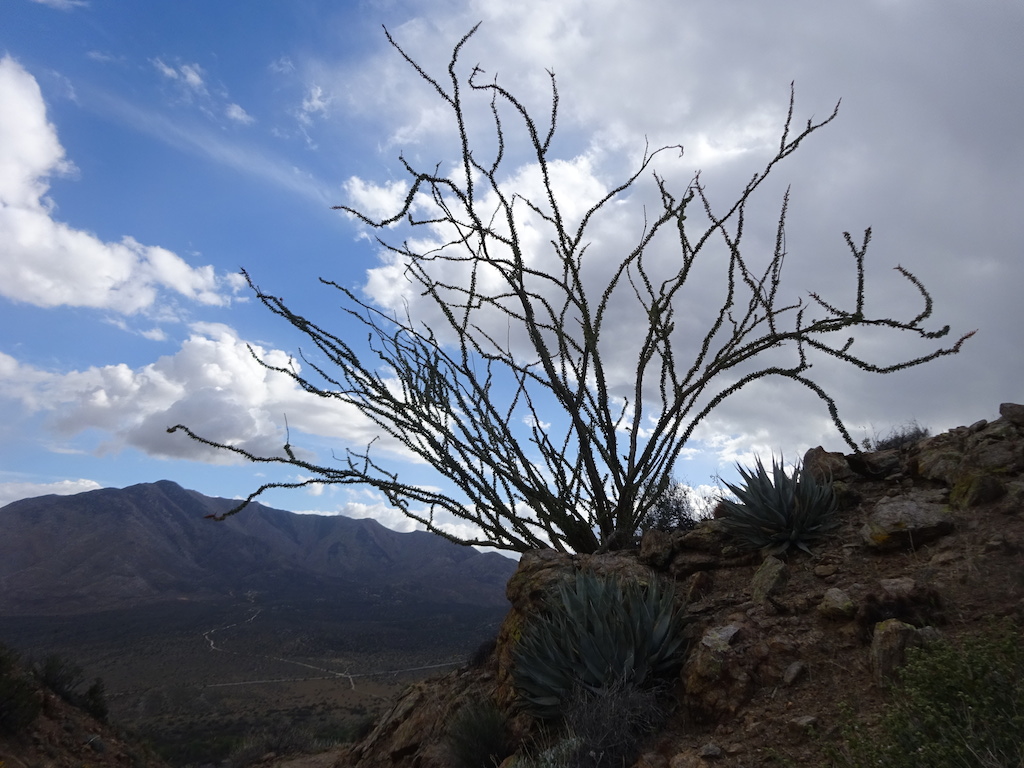 I walked many miles in the San Felipe hills, up and out of the cactus garden. I passed numerous sheltered campsites that I kept wishing I had encountered later in the day. The wind was picking up and it looked like it was going to rain. I hurried along hoping to find a campsite sheltered from the wind. I kept finding exposed sites out on precipices. I was getting nervous. Part of the ultralight tent strategy is good campsite selection and being able to walk far enough to make a good selection