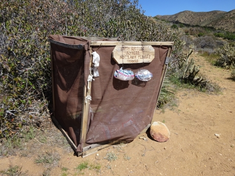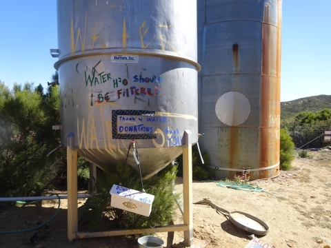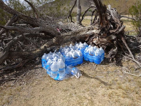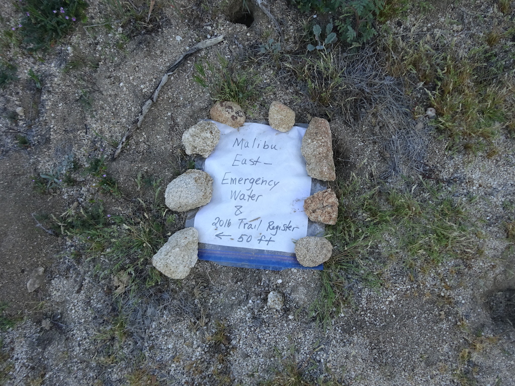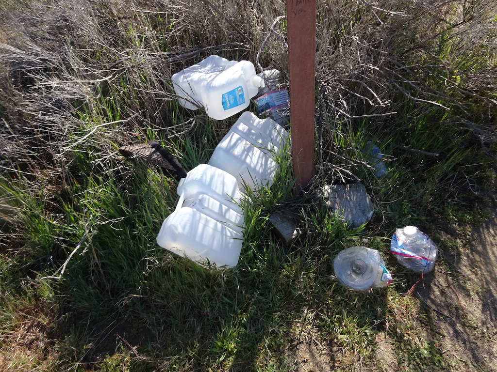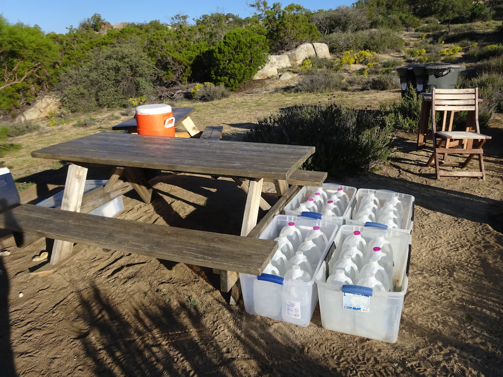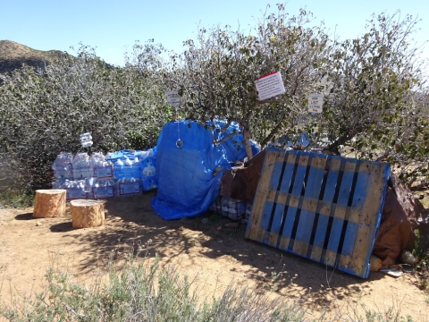This is the road they drive all that water in on. The local Sierra Club group provides the cache. It's much appreciated. Without it the distance between Rodriguez Spring and Barrel Spring is over 30 miles. You may find water between these two sources in San Felipe Creek (probably contaminated by runoff) or at a trailer park in Banner, a 4 miles hitch or in Julian, a 12 miles hitch. The 3rd Gate cache saves hikers the trouble.