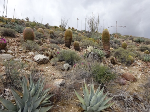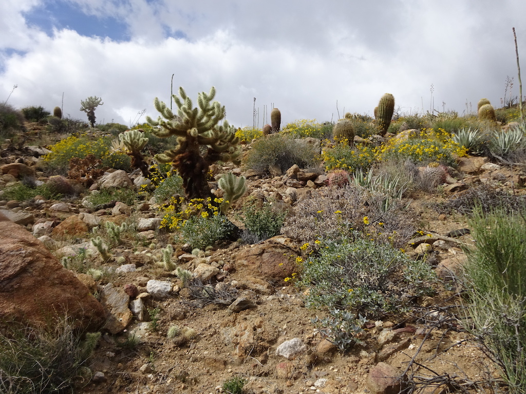 I'm such a nerd. Seeing this beautiful blooming cactus garden actually ranks up there with the Goat Rocks as one of my favorite highlights of the trail. The guide book author is so down on the San Felipe hills, even urging people to write their congress person to put the trail in the Volcan mountains where it belongs. But seeing this cactus garden was one of my favorite days of the trail of all the times I've hiked it.
