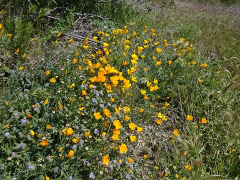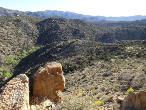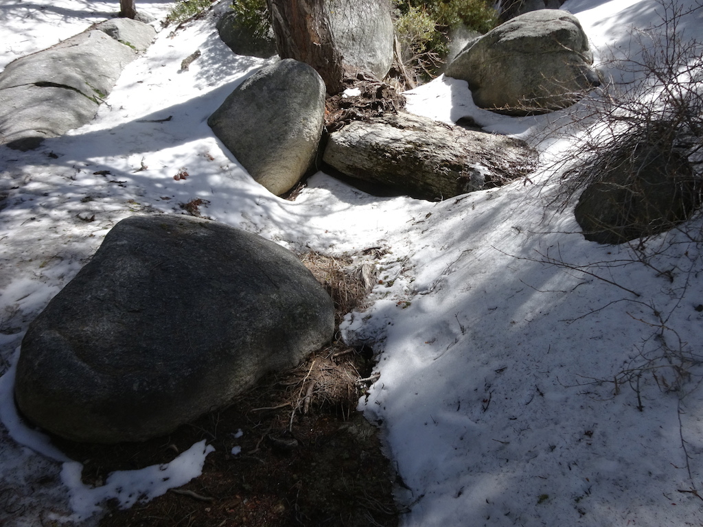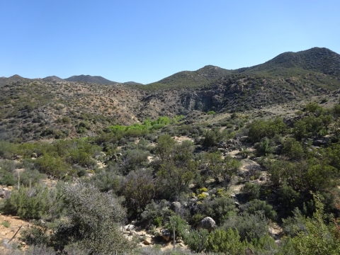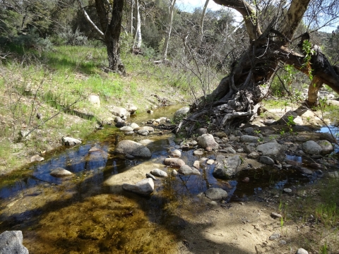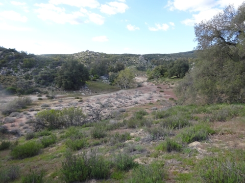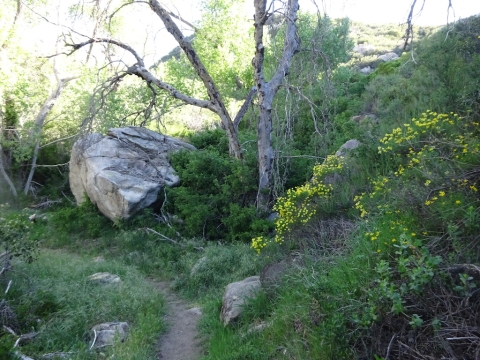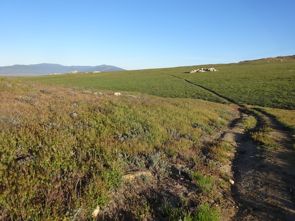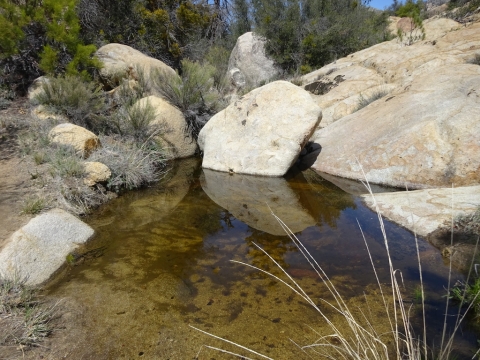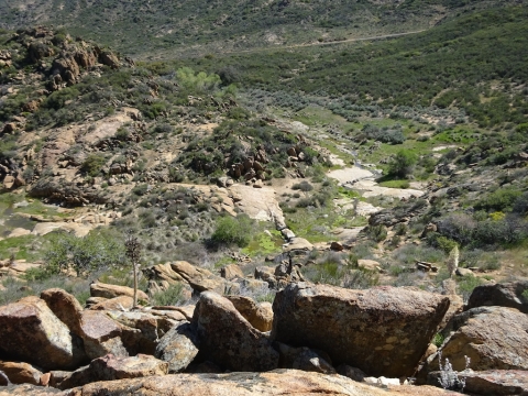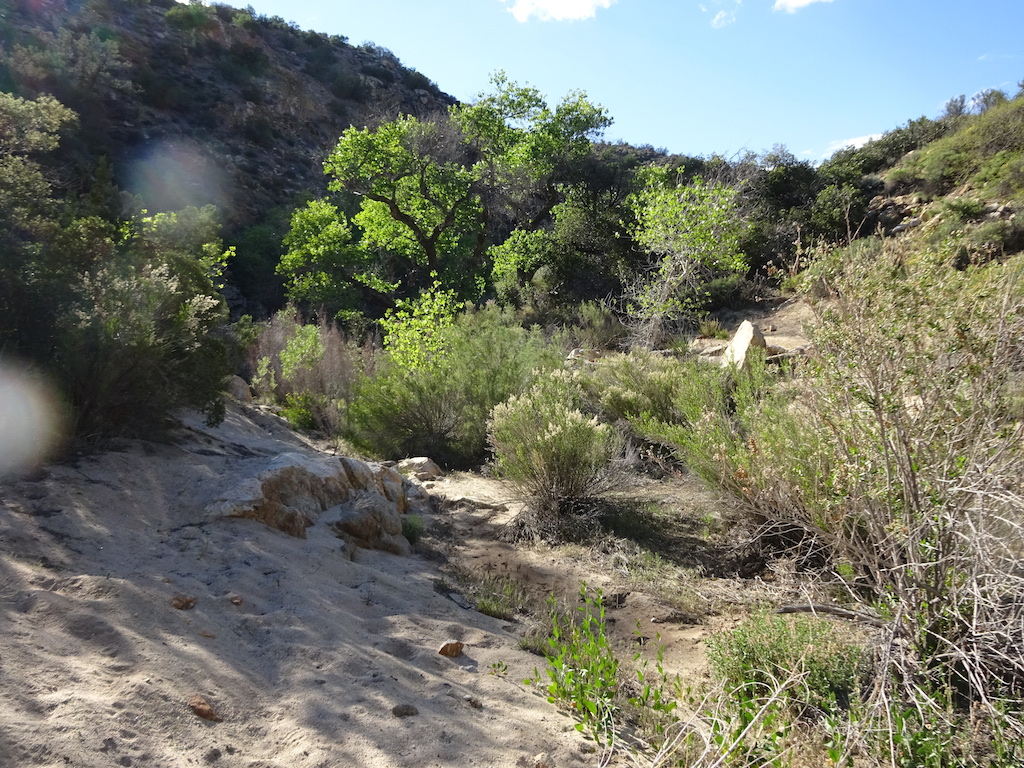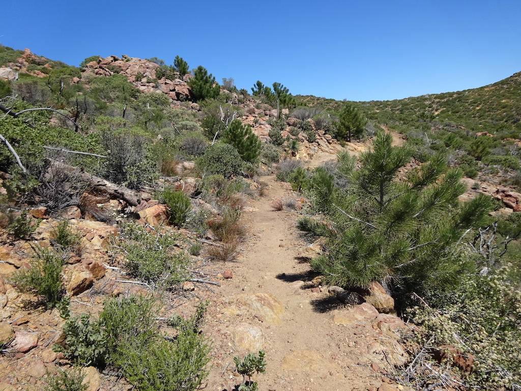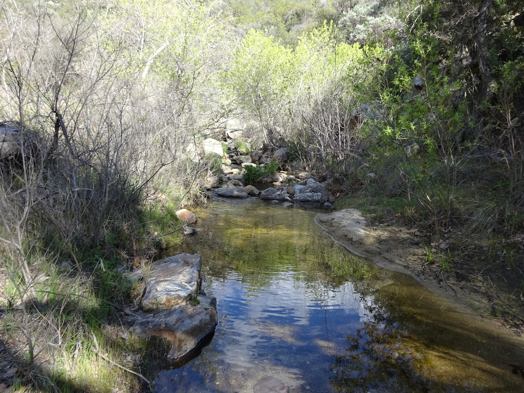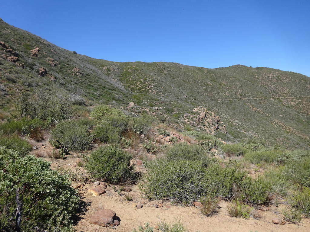 Kitchen Creek. There was water here but it was a difficult scramble. I thought there was an easier spot up ahead but I was wrong. When I got to the road above the creek I pondered whether to walk the road to the creek or just push on. Laziness said push on, even though I ended up with less water than I should have carried.