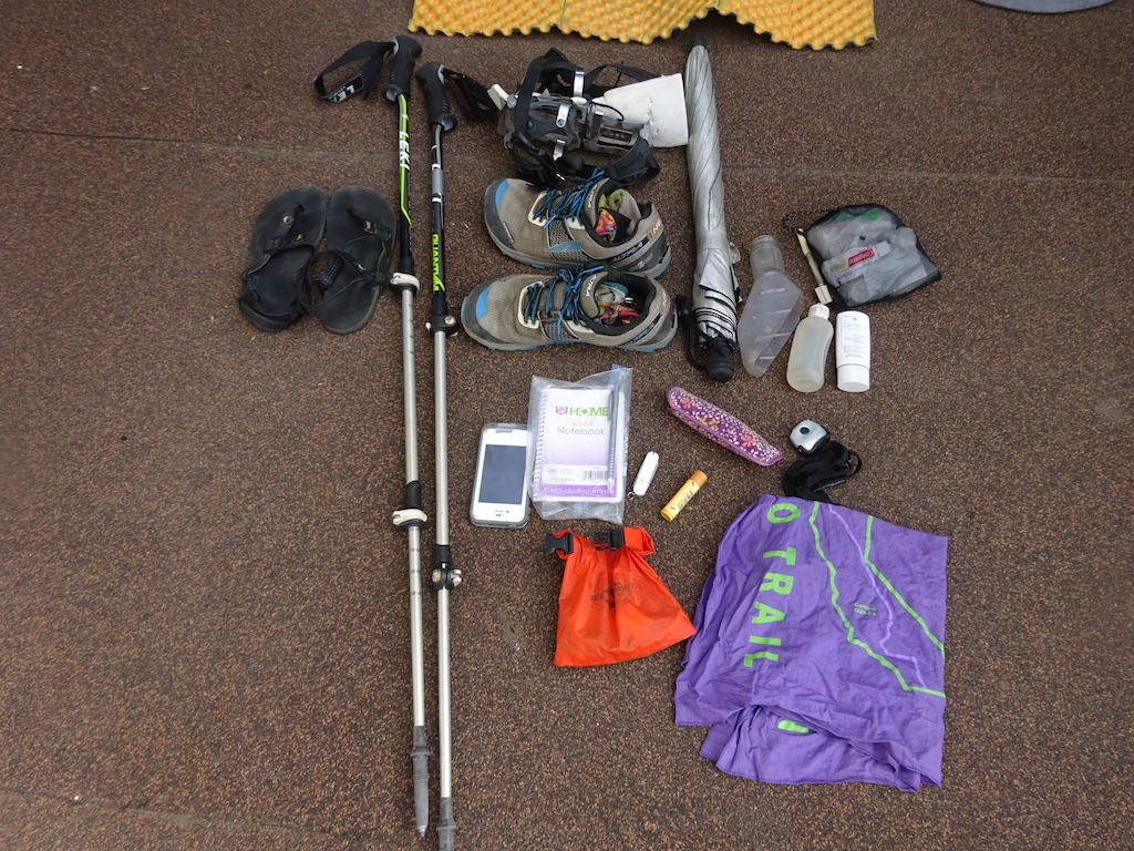 - My shoes. Altra Superiors. These shoes are unbearably hot, which is why I brought the sandals and tabi socks. I would alternate.