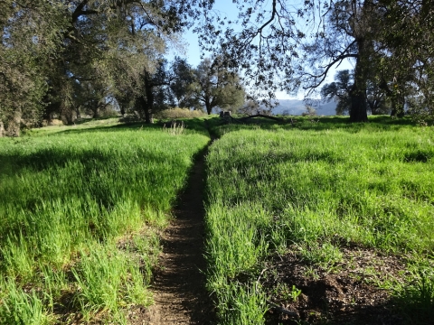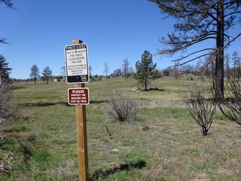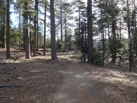 Halfmile's instructions said to pass this place and continue on the highway. But the map said otherwise. I skirted the outer edge of the campground and found a couple mountain bikers. I asked them if they knew of a mountain bike trail nearby. There was a gate in the fence that led to it just two campsites away.