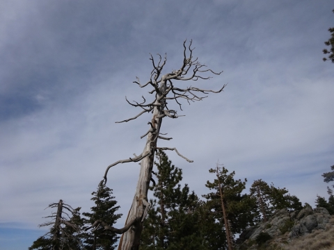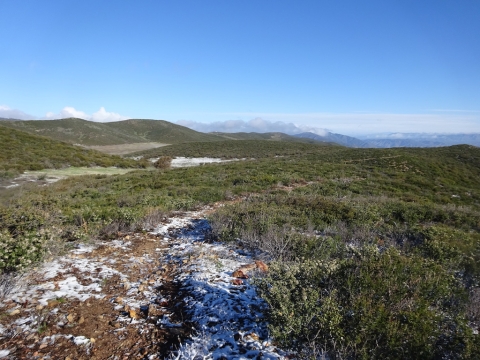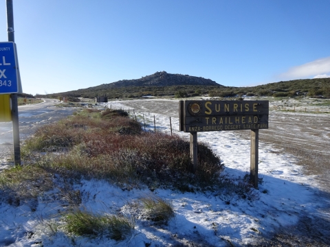 I went to the Mt. Laguna Visitor Center to get water. I also stopped in at the store for some hot coffee and a few more meals. I didn't pack a full load of food. I bought stuff like spam, cheese and mashed potatoes and one candy bar. The man at the store told me that they were expecting severe weather. High winds with gusts up to 90mph. I didn't believe him since he also runs a hotel. I put my pack cover on in case it would rain and I put my rain skirt and rain jacket on because it was really