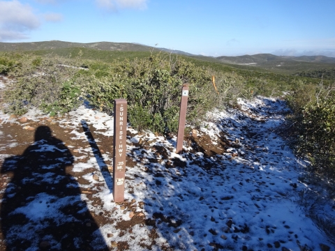 Very near to the turnoff to the outhouse the trail passed right under Sunrise Highway. I decided to climb up to the road and walk the road to the outhouse. That way I would have more opportunity to seek a