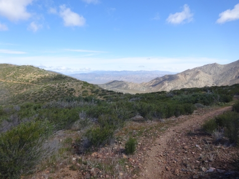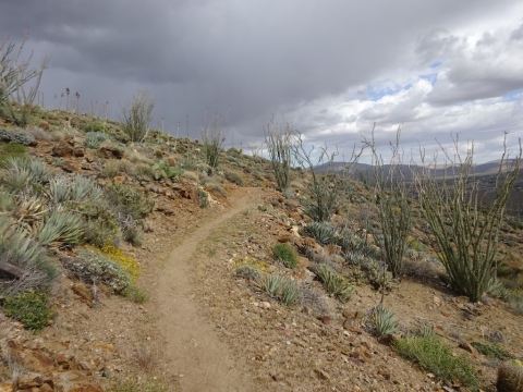March 26, 2016 I decided to hike the first couple sections of the PCT mostly because I couldn't remember much of it. I had a choice between this or a chunk of the Condor Trail but I chose the PCT because I didn't want to be so lonely and also because I wanted to see the ocotillo in bloom, something I've always wanted to see.