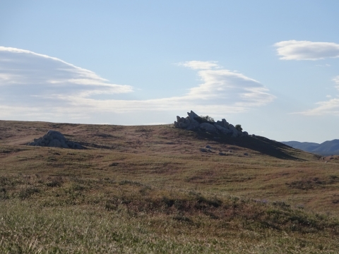 The winds were much calmer whenever I was on this side of the hills. I went over and over in my mind whether or not I felt I could sleep on this side, if it was safe. I worried that the wind could shift in the night and then my tent would blow down and I wouldn't have any shelter. It might rain or snow, and without shelter, what would I do? I walked on for miles arguing with myself whether to freak out or stay sane.