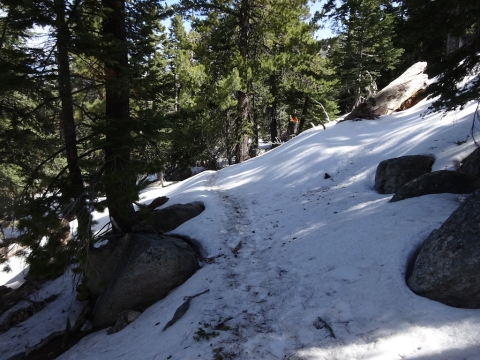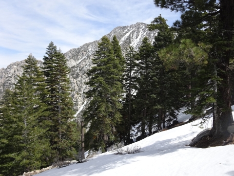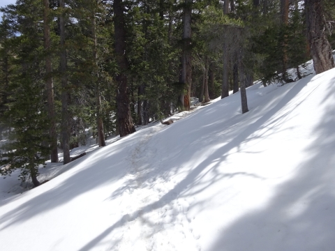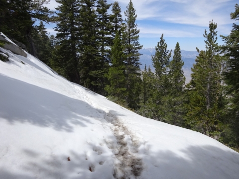 All afternoon the Fuller Ridge trail was solid snow on the north side. It made for fairly easy going, actually. There were no little hummocks to climb up and down, no searching for the trail tread. I could mostly just follow the footprints and thanks to my crampons, I didn't slip much or get too nervous on some of the steeper sections.