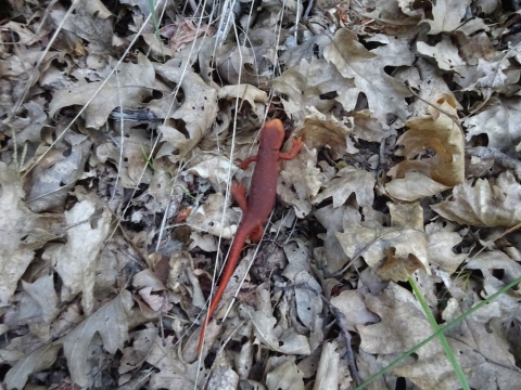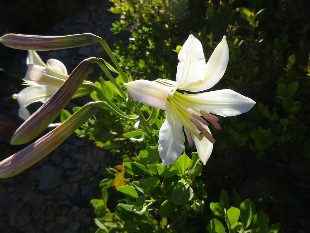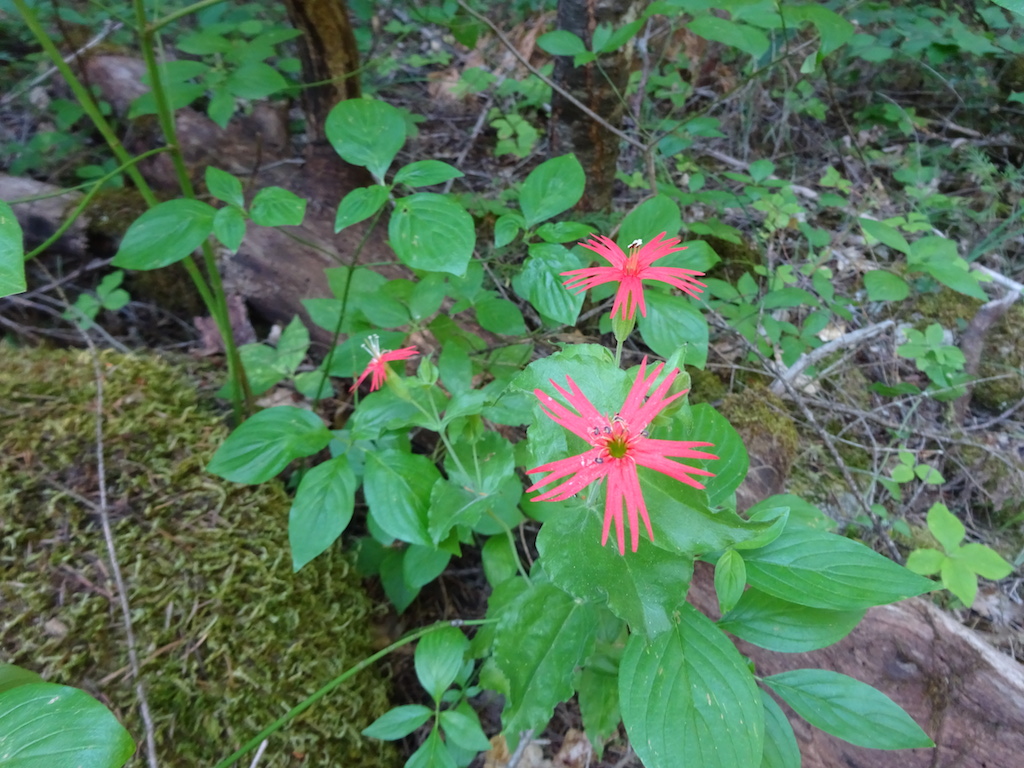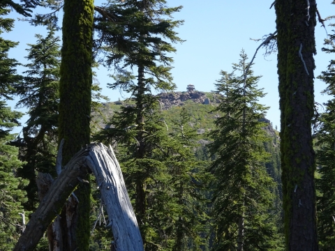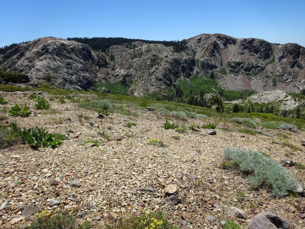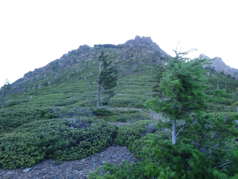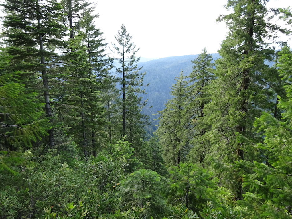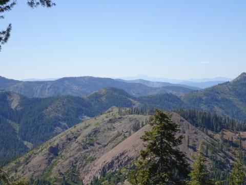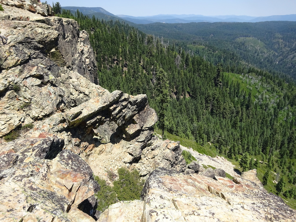 We climbed all evening and reached the top with just a little light left. We slept next to a dirt road. As we lay in our sleeping bags under the stars, a mountain biker came roaring down the road from the lookout tower at the top of the peak. He stopped at the trail crossing and waited for his buddy in a giant 4wd van with about 8 headlamps blazing to come gingerly down the same road. They then sped off. The mountain biker might have taken the trail. It was hard to tell in the dark. We had actually discussed the possiblity of just sleeping on the trail if we hadn't found a campsite, but I knew there would be a campsite. There always is. I don't think I'll ever consider sleeping on the trail now that I know illegal mountain bikers might come careening down the trail in the dark.