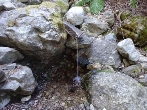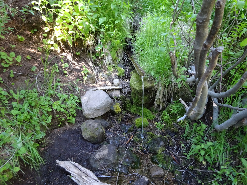 Here's another sign leading to a spring. This spring had the sweetest water. I really think the PCTA. or whoever it was, did well putting up these signs. If they did this more in Southern California, there would be fewer water caches. Just giving the spring a name makes you want to go there, makes you feel like maybe there really is a spring there. Telling you the distance makes it seem less daunting to take a look. We visited all the springs in this section and traded any warm stale water for new fresh cold water.