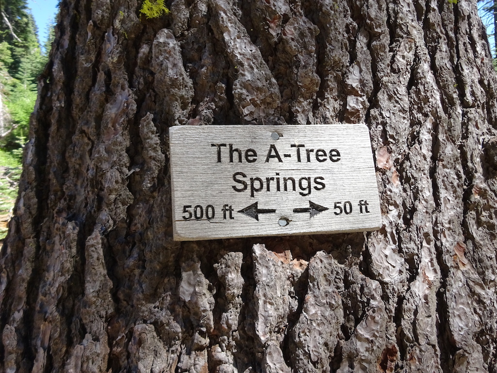 This is another example of the signs they have put up telling you where all the springs are. These were pretty helpful. They weren't there in 2008. This portion of the PCT has very little water on the trail. The A Tree spring was always easy to find, but in 2008 the thru-hiker experience was to tank up here because there was no on-trail water for a considerably long distance. The A Tree was a Big Deal for the thru-hikers back then, and a considerable source of anxiety. Would there be water? Would we have enough to get to the Middle Fork of the Feather River?