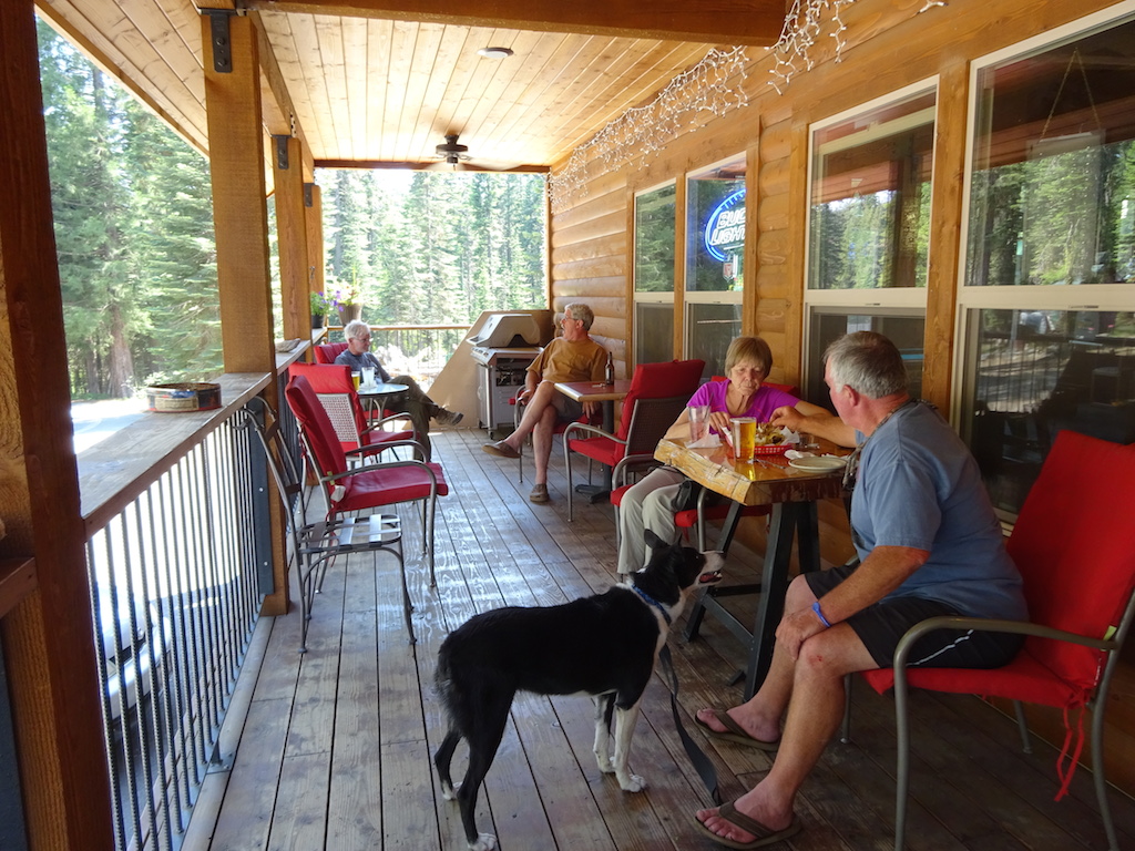 We were all set to go to the trail angel's house but then were offered a ride and a free beer to come to Bucks Lake Lodge. So we did that and sat on the porch of the lodge eating fish tacos and drinking beer with all these nice people. The man with the dog was an avid backpacker and former pro Rugby player from northern England. He sounded Irish. He had a lot of funny stories from his adventures backpacking.