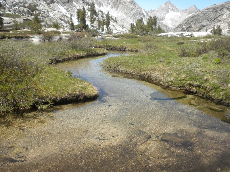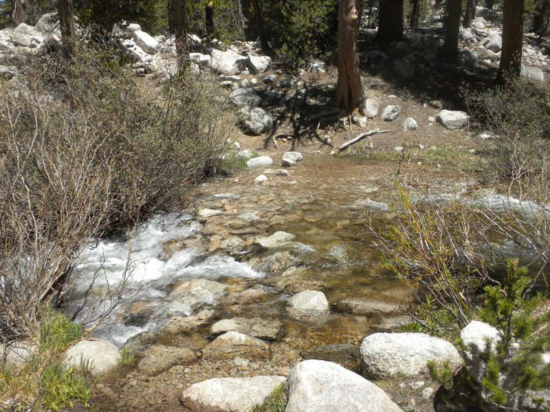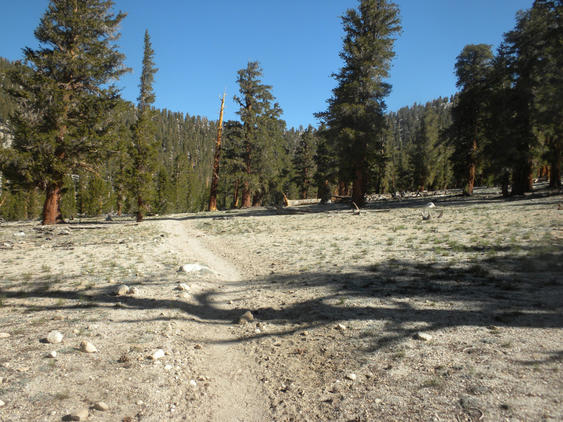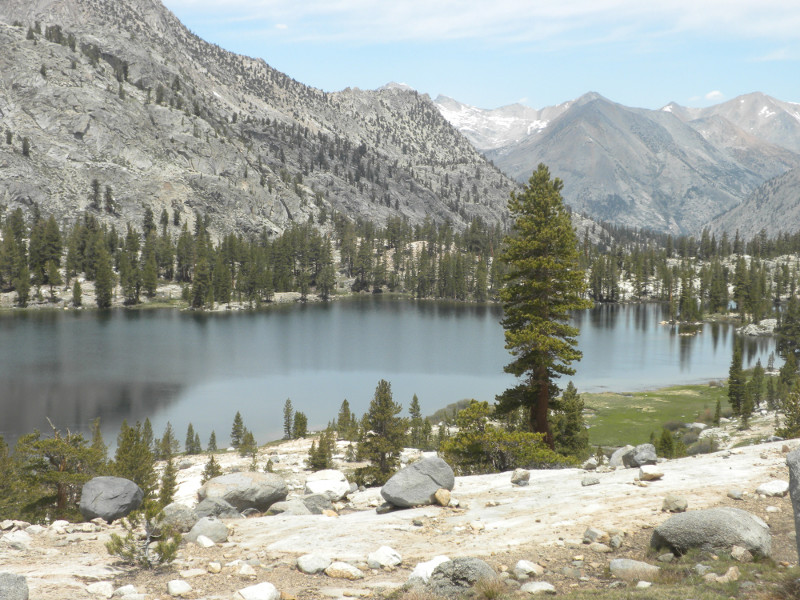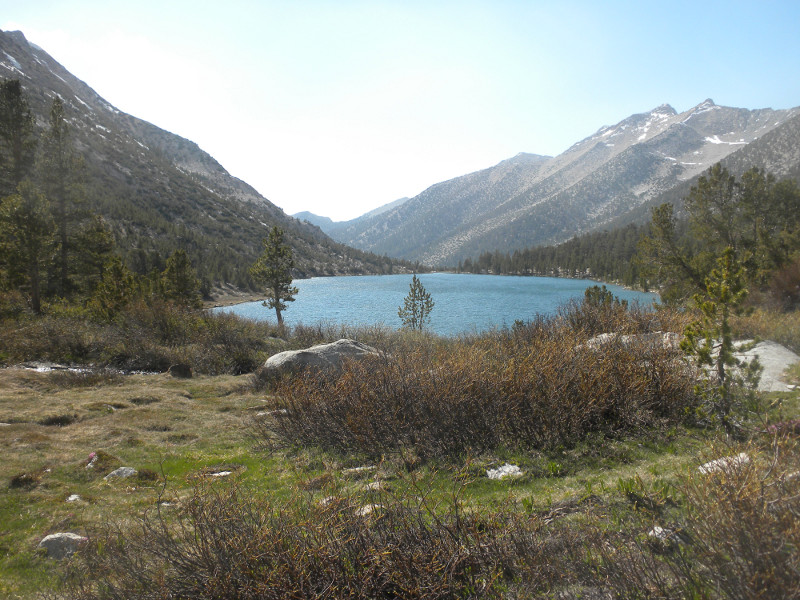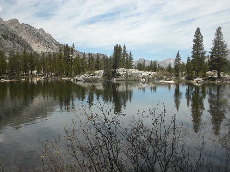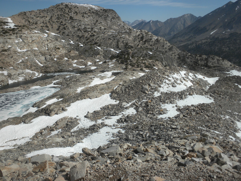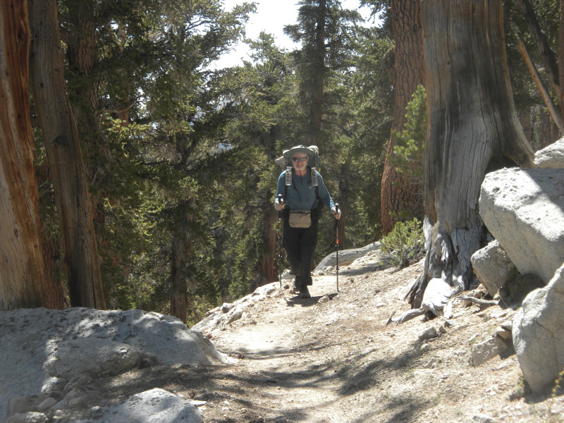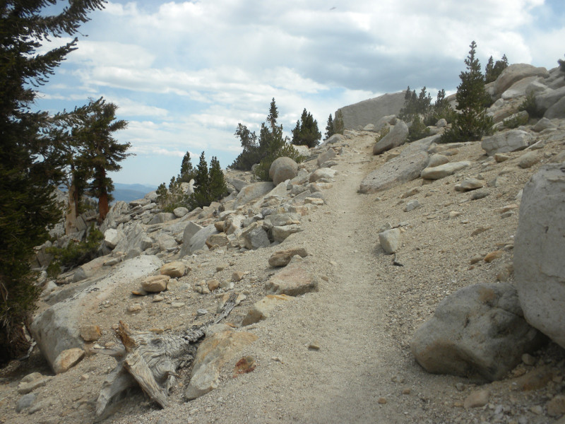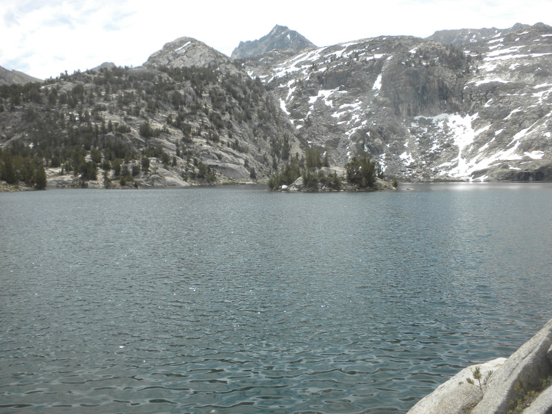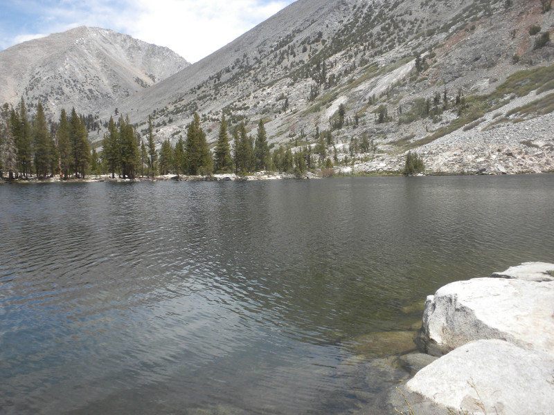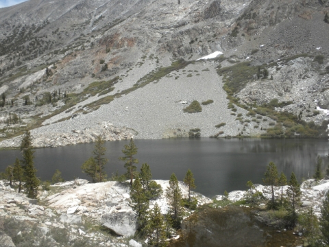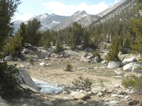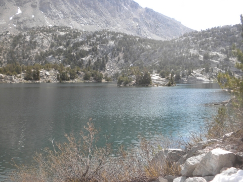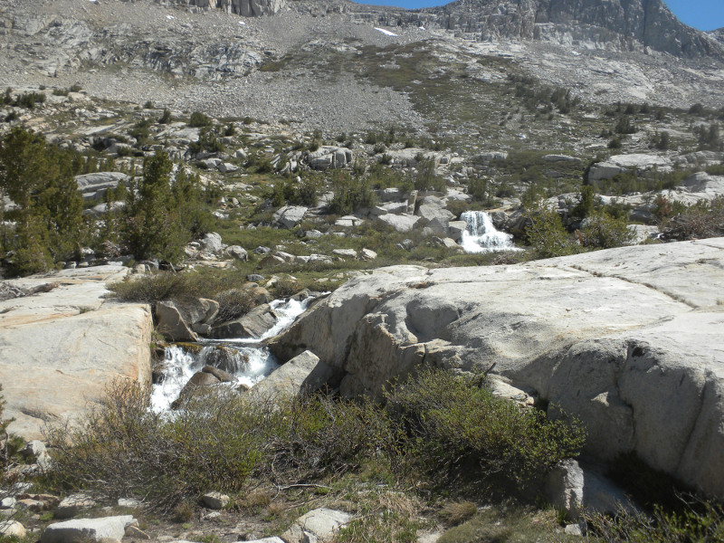As I continued along the trail I met up with a thru-hiker who had used Bishop Pass for a resupply. He complained that it was so cold. He was hiking in flip-flops and bare feet! Later on going up the pass, which is all sandy toward the very top, I