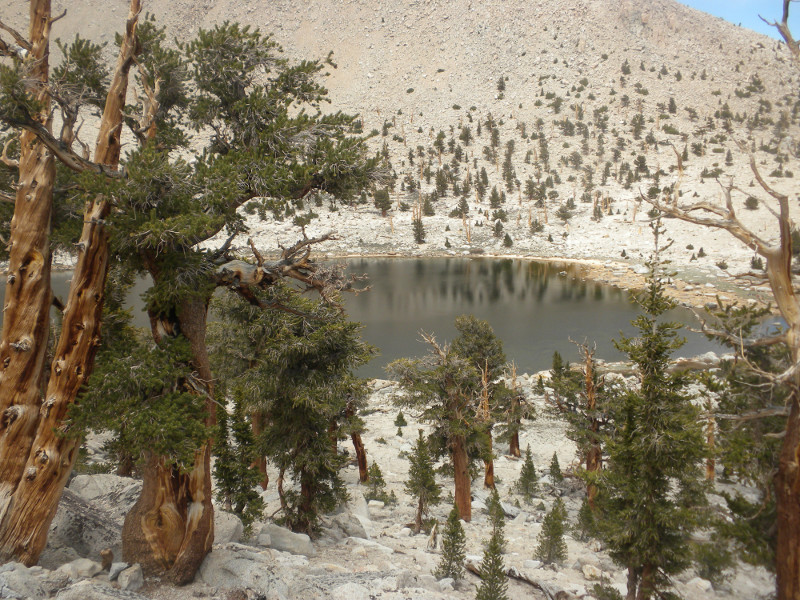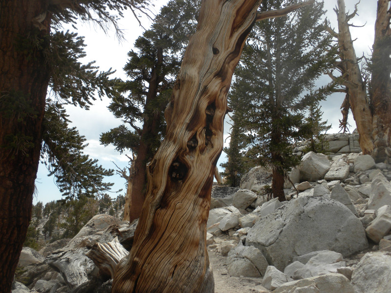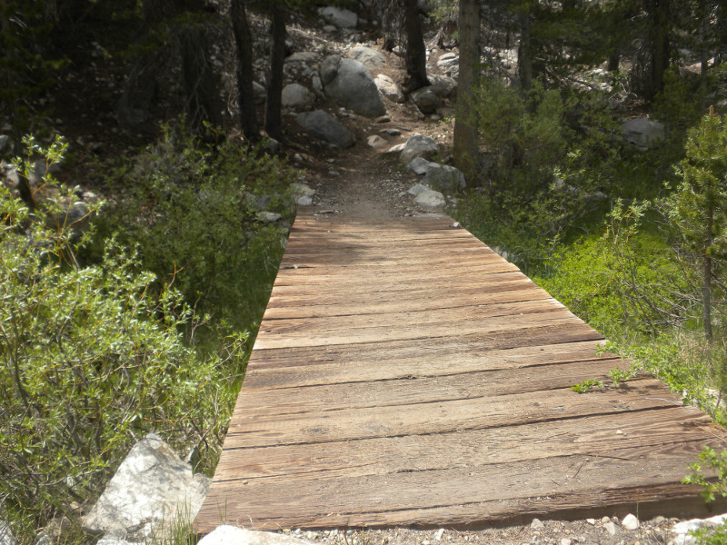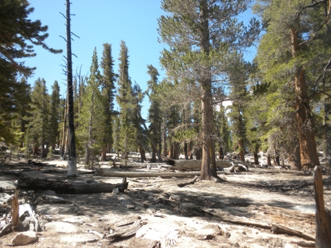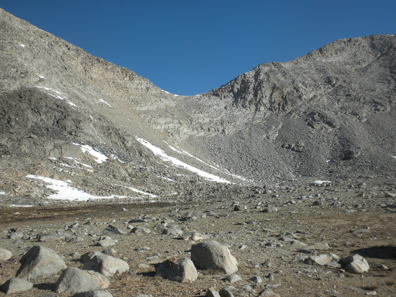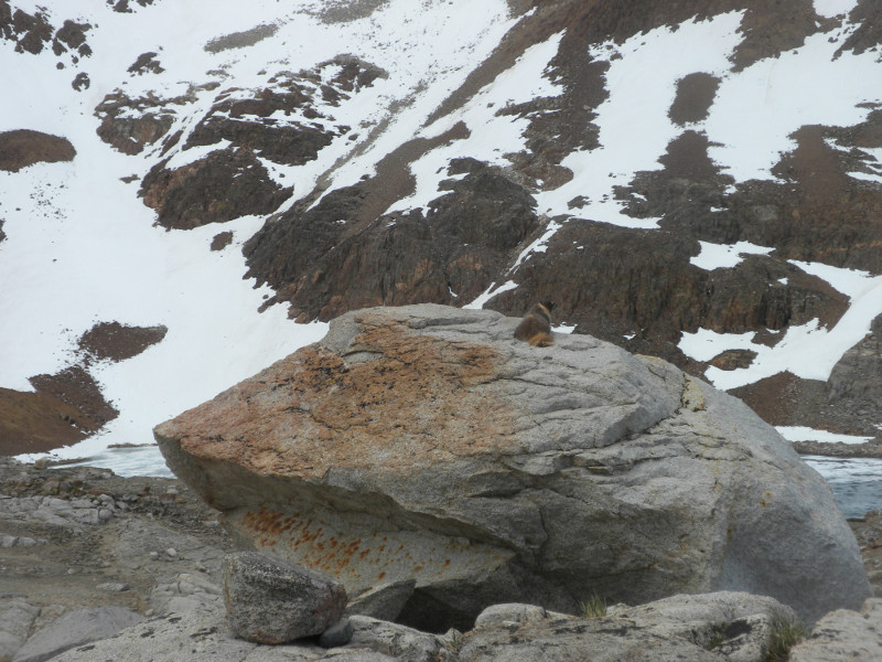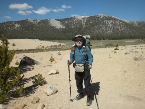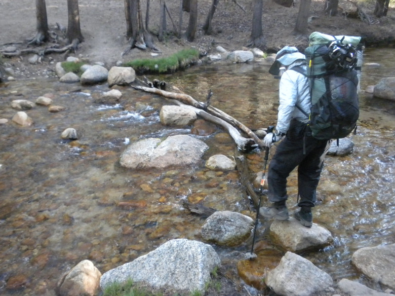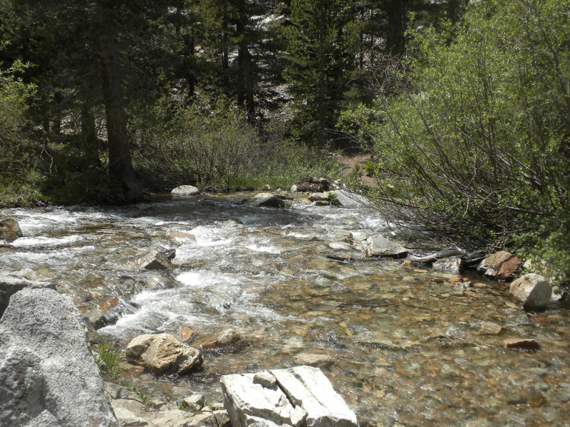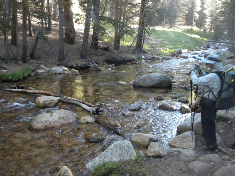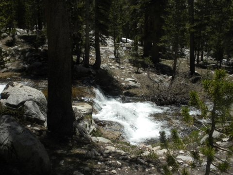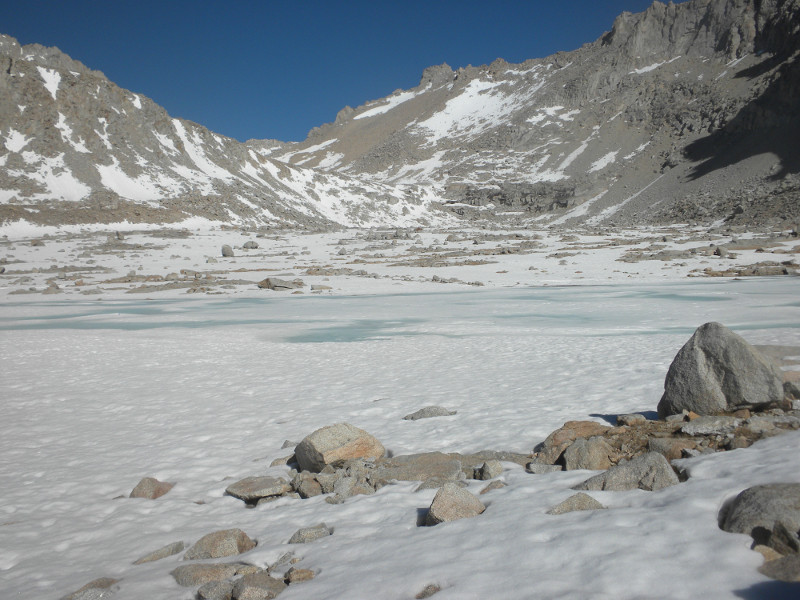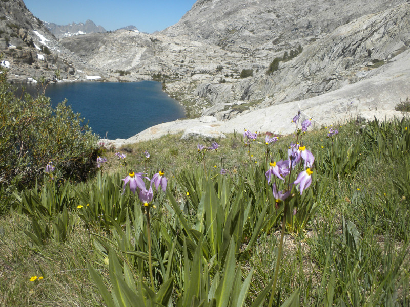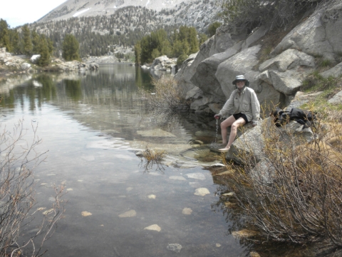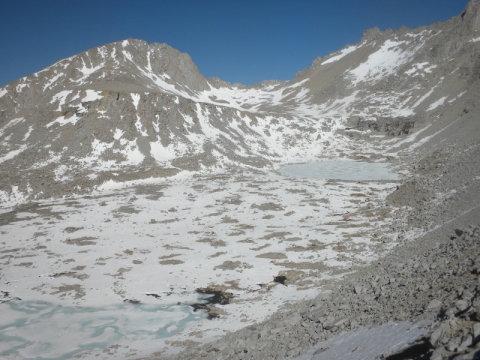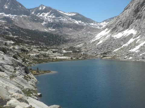 As I continued along the trail I met up with a thru-hiker who had used Bishop Pass for a resupply. He complained that it was so cold. He was hiking in flip-flops and bare feet! Later on going up the pass, which is all sandy toward the very top, I