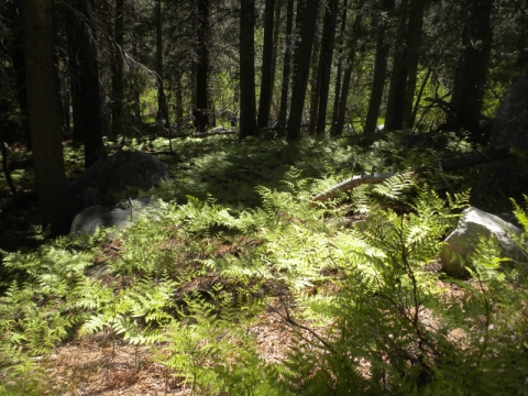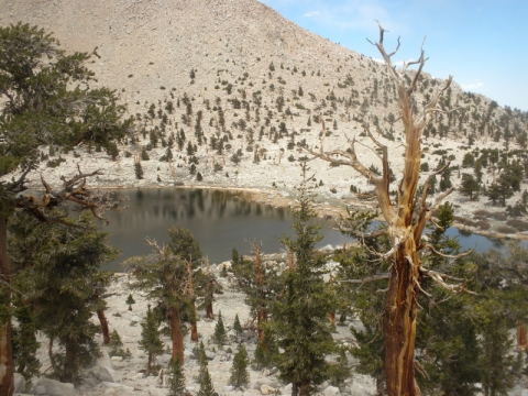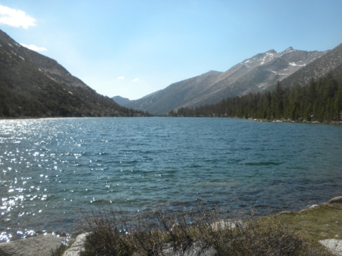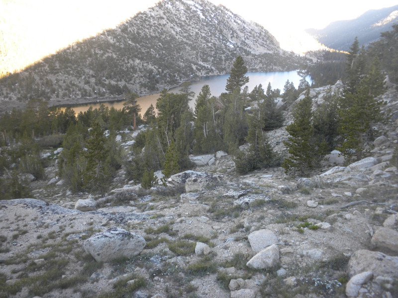 Charlotte Lake. It was beautiful here but we weren't finding any campsites as we walked along the lake. We met a couple of thru-hikers who had been so enticed by the lake they had climbed straight down from the PCT to get to it and take a dip. They were sunbathing on a rock.