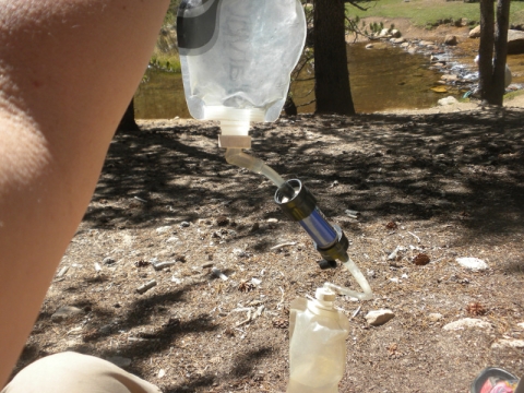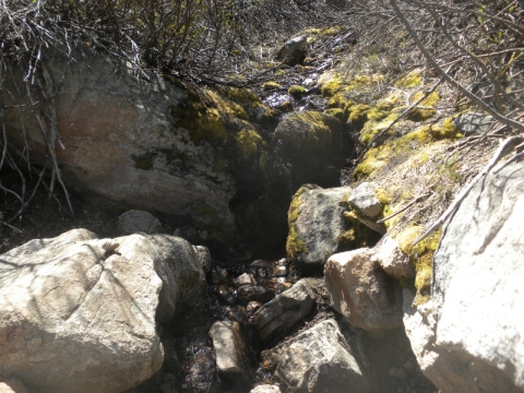 We decided to just fill up our water bottles and try to find a place to camp part way back up the hill.