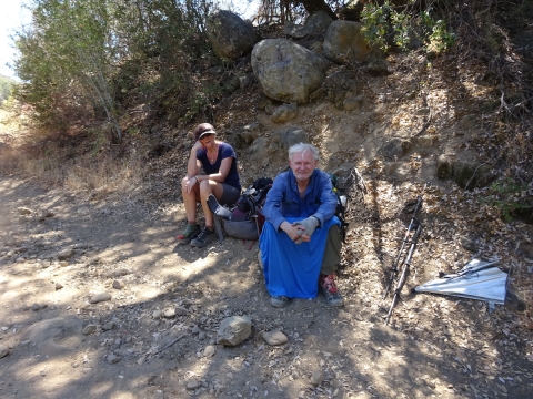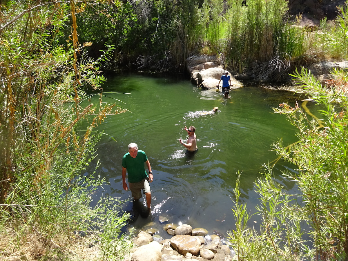 We weren't looking forward to leaving or to hiking in the hot sun again. But we'd have to get going soon. We filled up our water from the little waterfall, which was actually coming from the hot spring. The water has a soft water taste that sometimes tastes sweet and sometimes tastes like it might make you sick from the sodium.
