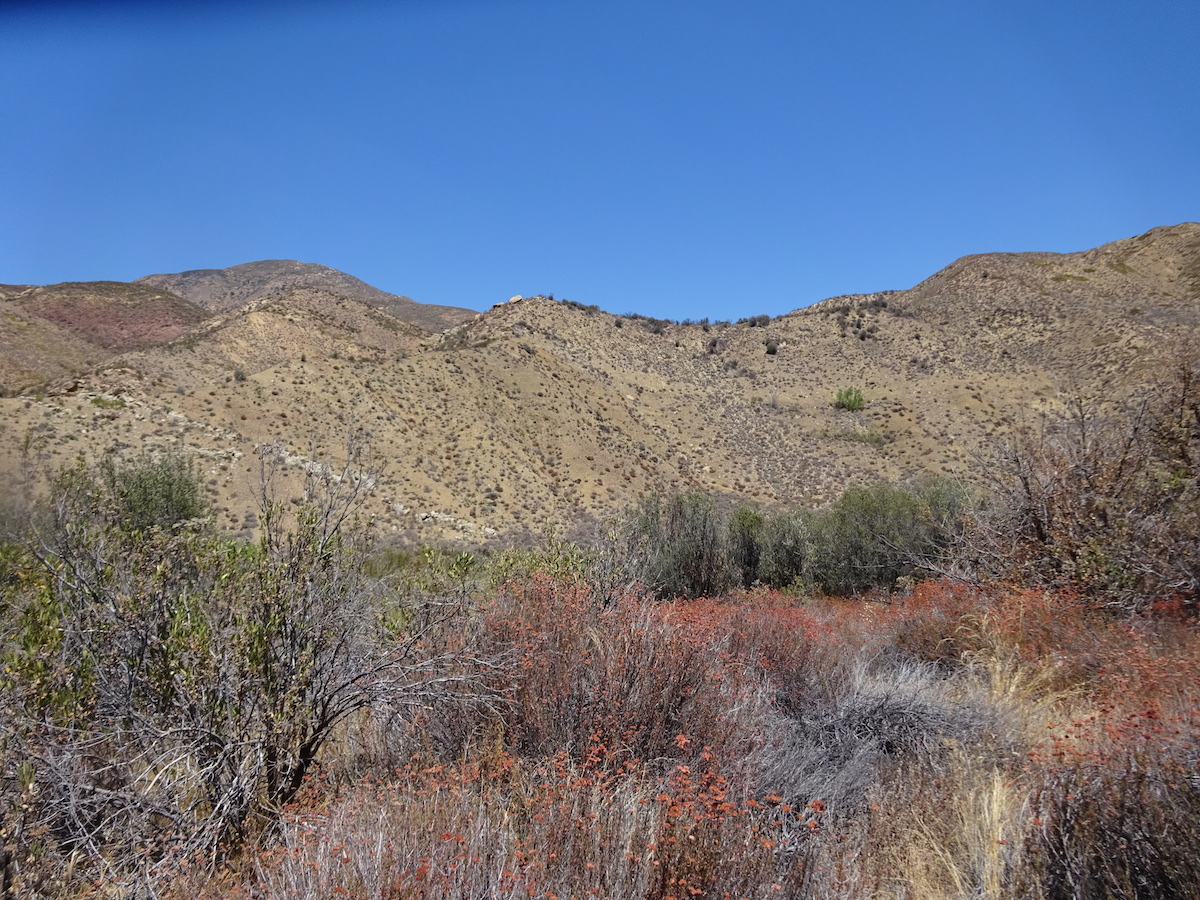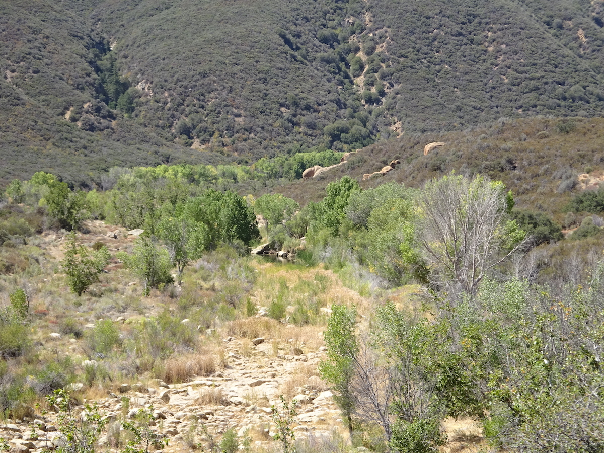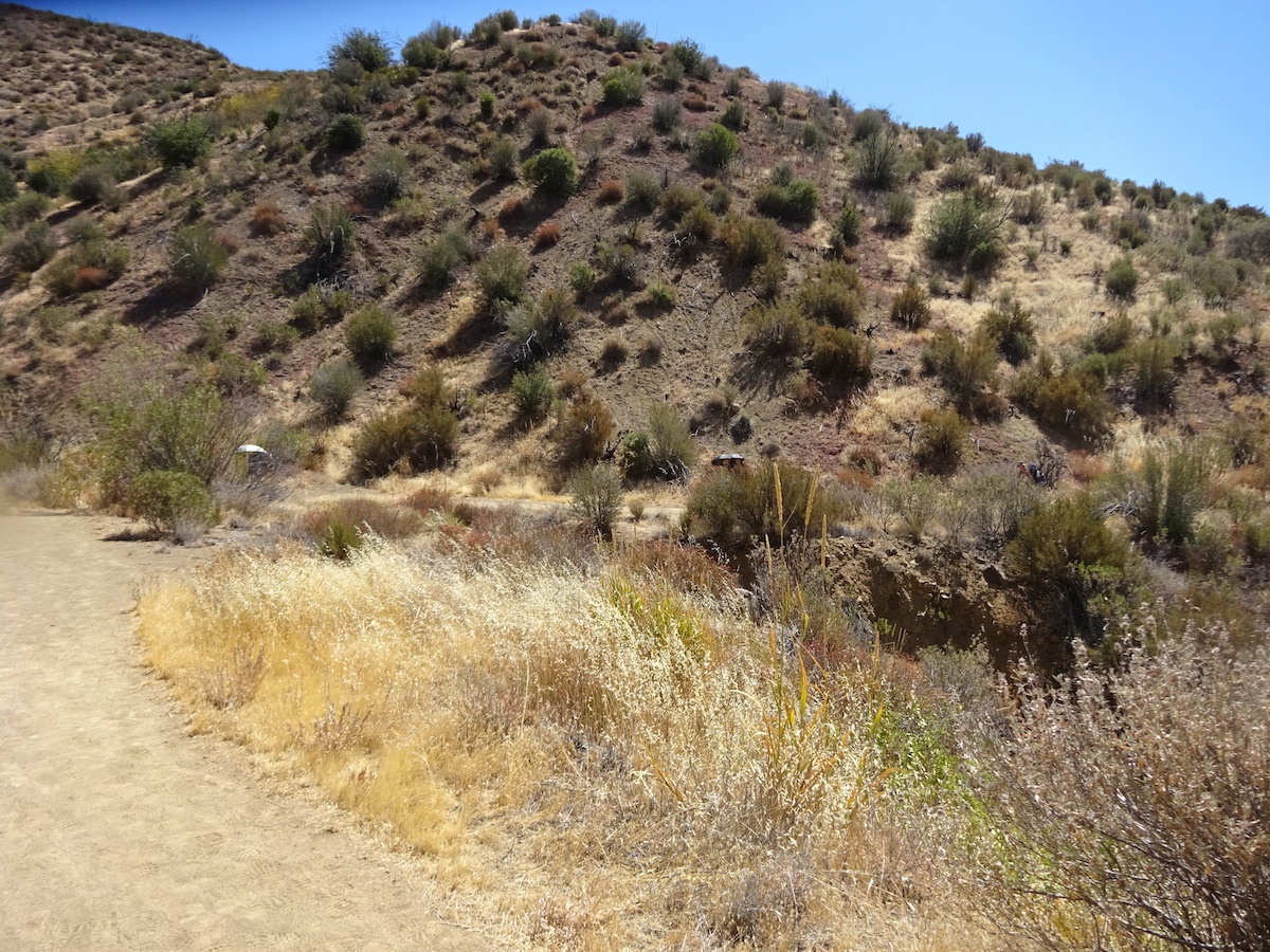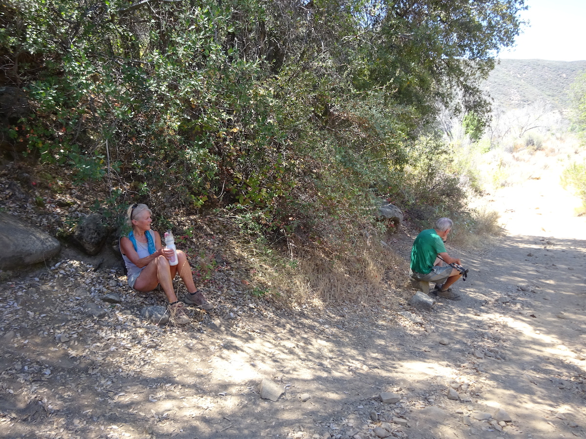 According to a nearby weather station at the gun club near Rose Valley, Saturday's high was only 92 and the low was 44. This was not how it felt at all. It felt much hotter in the day and much warmer at night. Sunday's high was 98 at 2pm, but our car thermometer said 99 in the shade and all the way down to Deer Lodge in Ojai. And to us it felt cooler than yesterday, and only because we left before 2pm.
