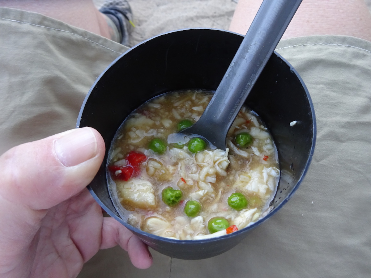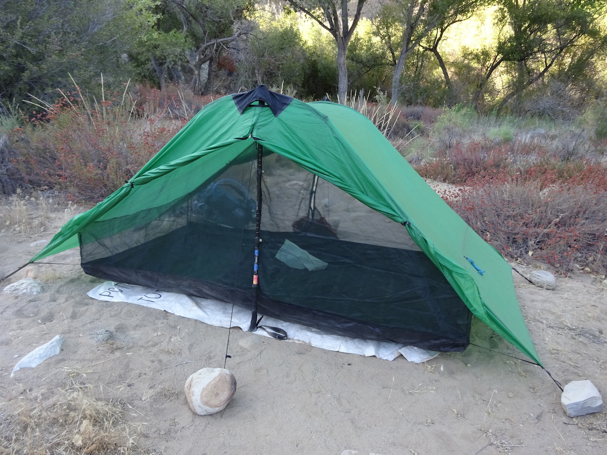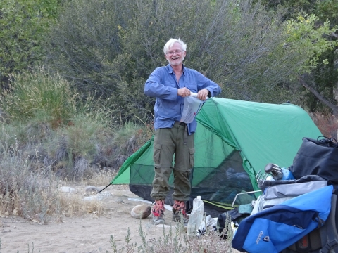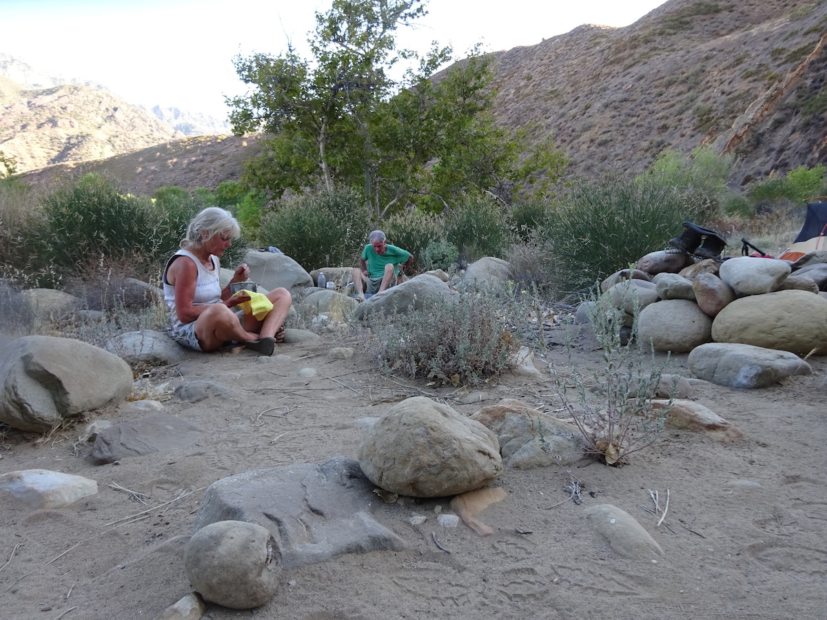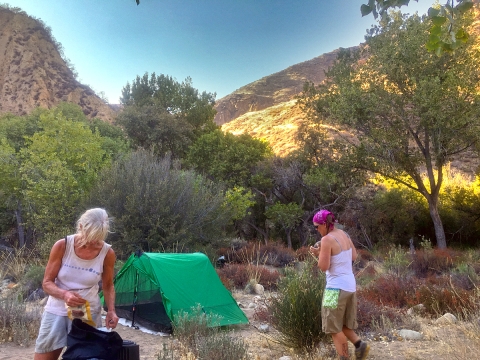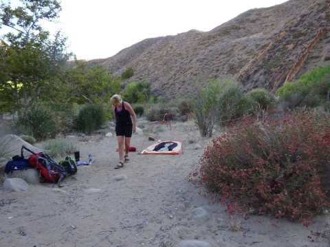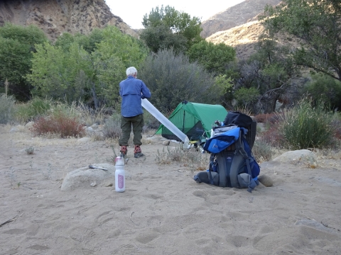The night was warm. I used my sarong/scarf as a blanket until it cooled down enough to put my sleeping bag over my legs. I should have brought my 45 degree bag, not my 20 degree bag. The weather report made it sound like it might get into the low 40s at night but I'm pretty sure it didn't even get out of the 60s, for sure not inside our tent. The morning dawned comfortable and beautiful with crystal clear skies.