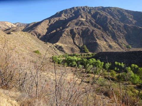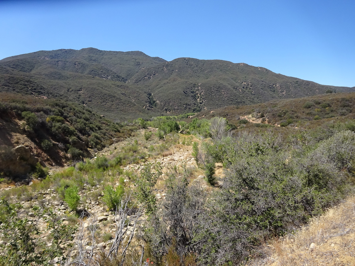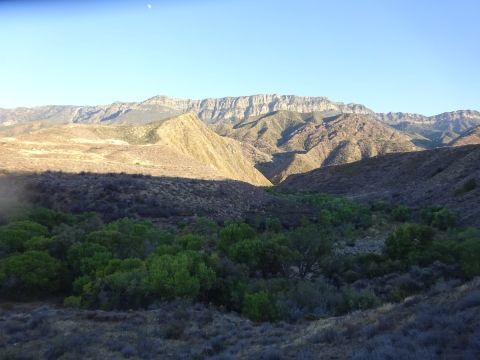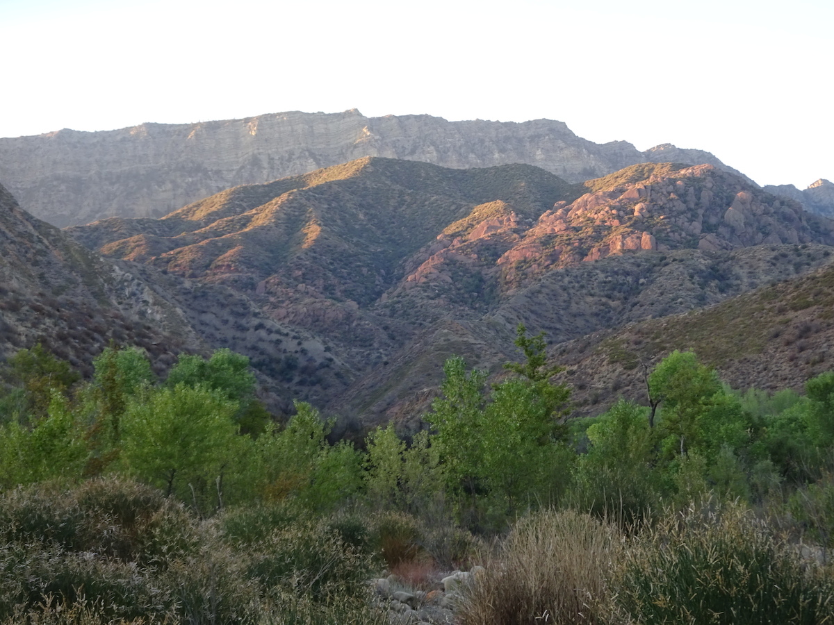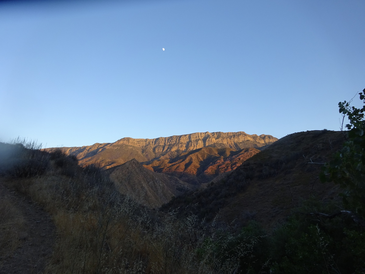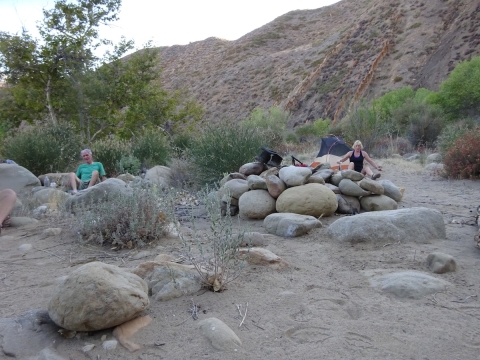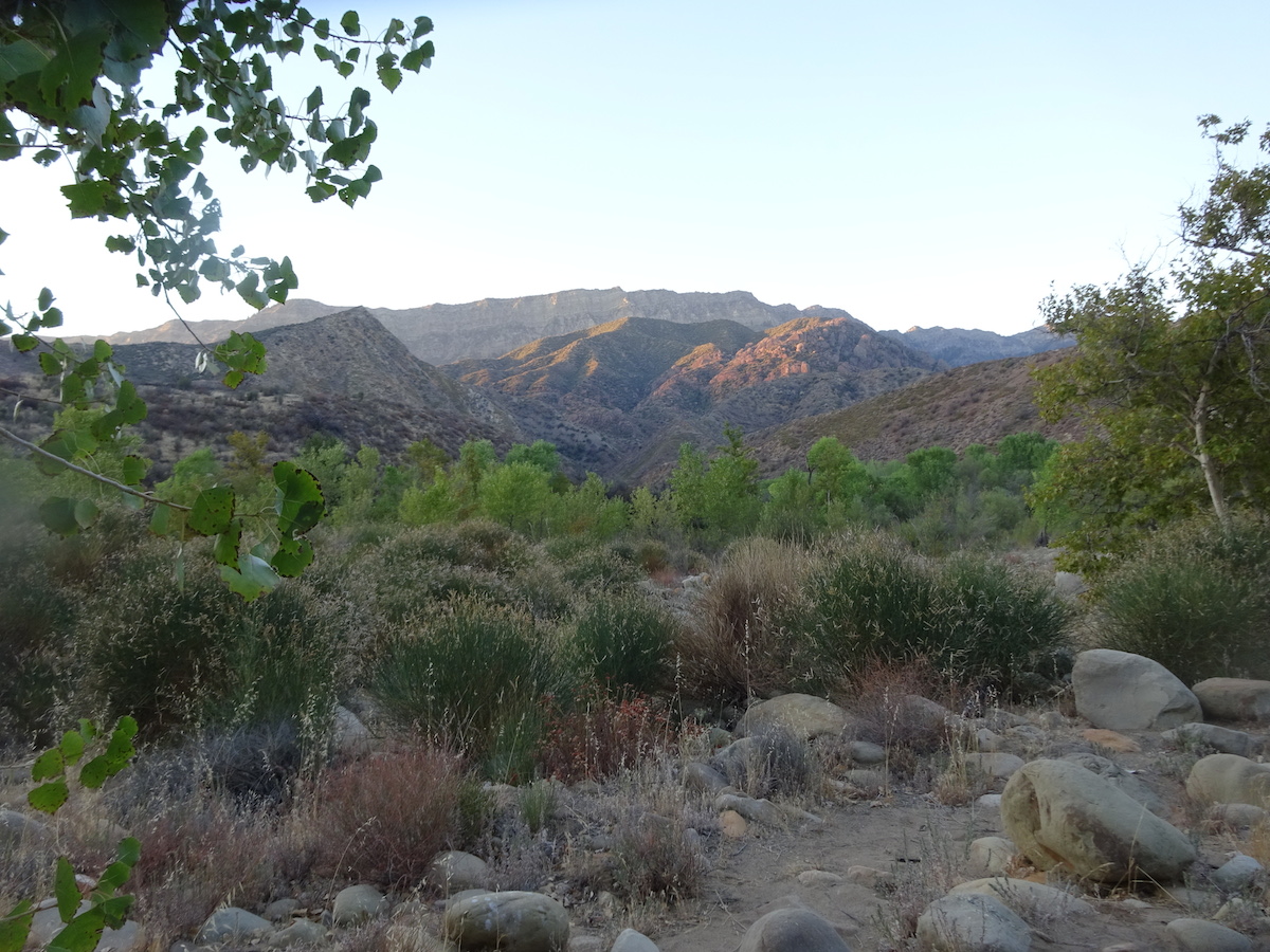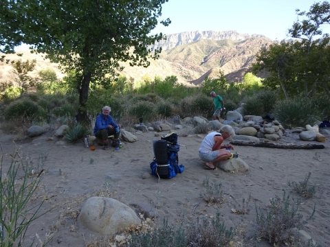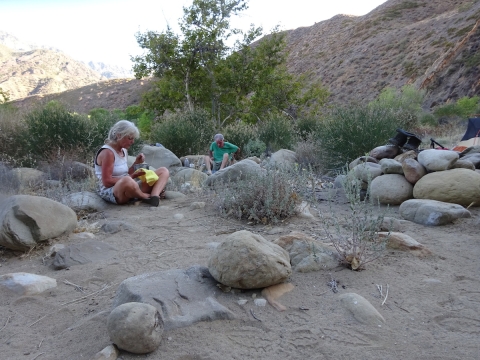 After a while, it was getting dark so we headed back down to camp. The moon rose over the Topatopas. We looked forward to seeing the Perseid meteor showers. We laid down in the sand to watch them, but the moon drowned out most of the sky. I didn't see a single one. Tony saw one meteor. We saw a lot of sattelites. At 10:40pm I went to bed. There were many toads leaping about.