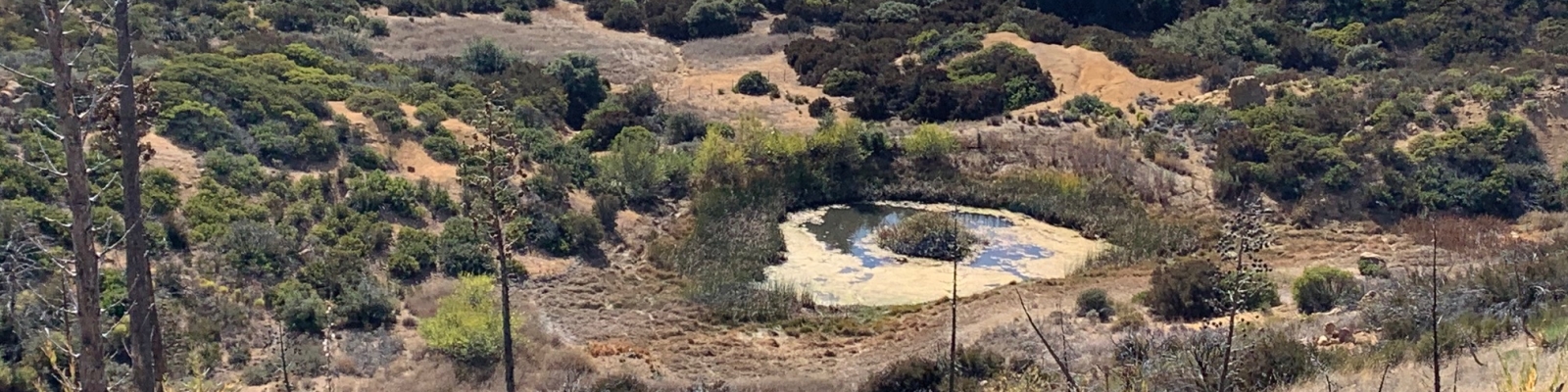 The dirt road was pleasant to walk on. I passed a pond with water about half a mile from the Franklin Trail summit. Maybe I should have left the cache at Monte Arrido instead!
