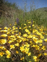 This usually grows on sort of barren hillsides in the sun. Can be mixed in with other flowers and can sometimes be in partial shade.