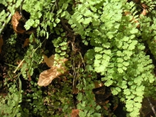 Madiantum jordanii These can be found in the shade in moist places like near creeks. They are pretty common. They also like waterfalls. green, shade |