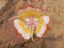 Calochortus fimbriatus These hairy kind like to grow in sunny places half-way up the mountains and bloom early summer. I've seen them on Inspiration Point, Mission Ridge and near the power lines on Arroyo Burro trail. pink, red, summer, sun, white |